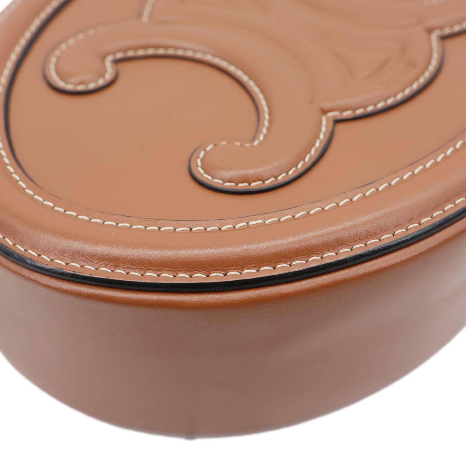 CELINE Triomphe Oval Calfskin Cuir Shoulder Bag Tan