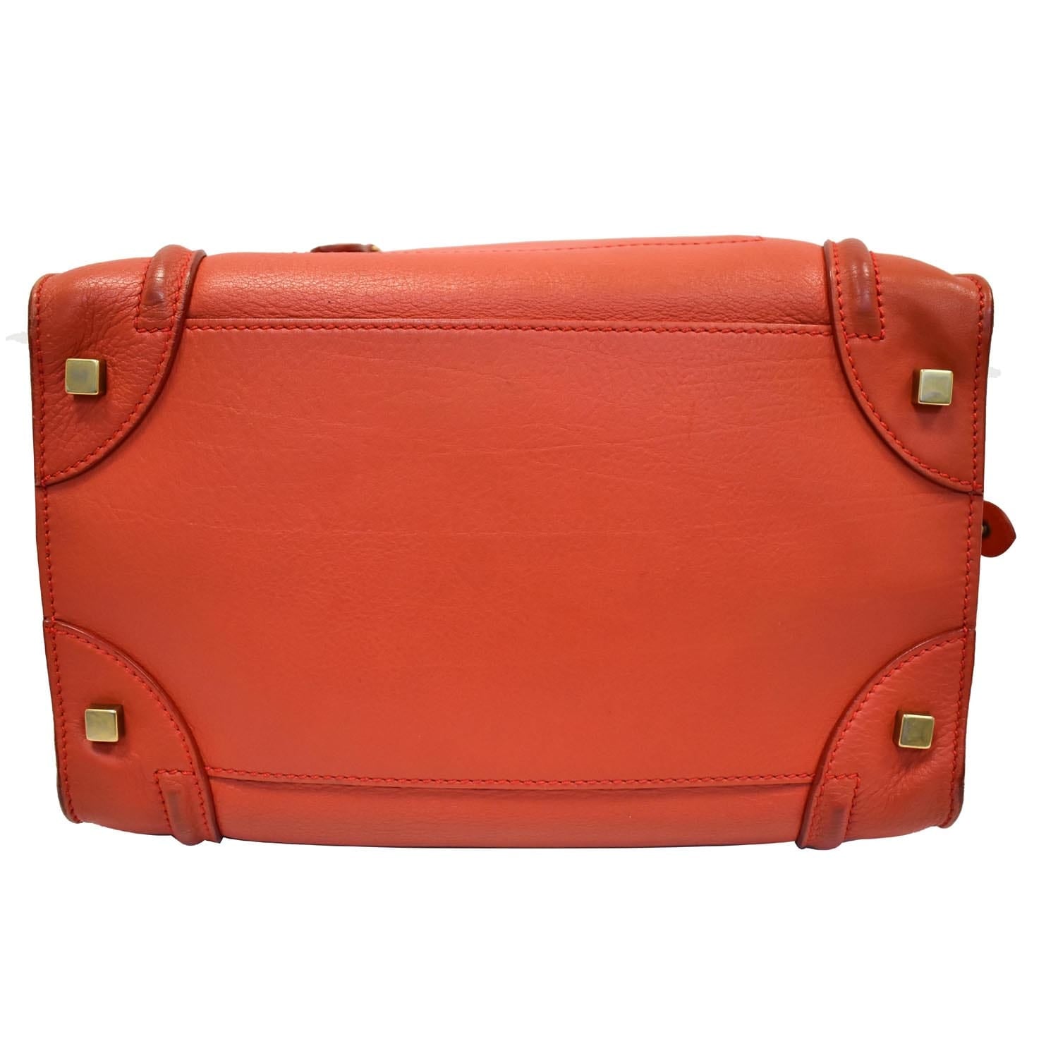 CELINE Drummed Mini Luggage Calfskin Leather Tote Bag Red