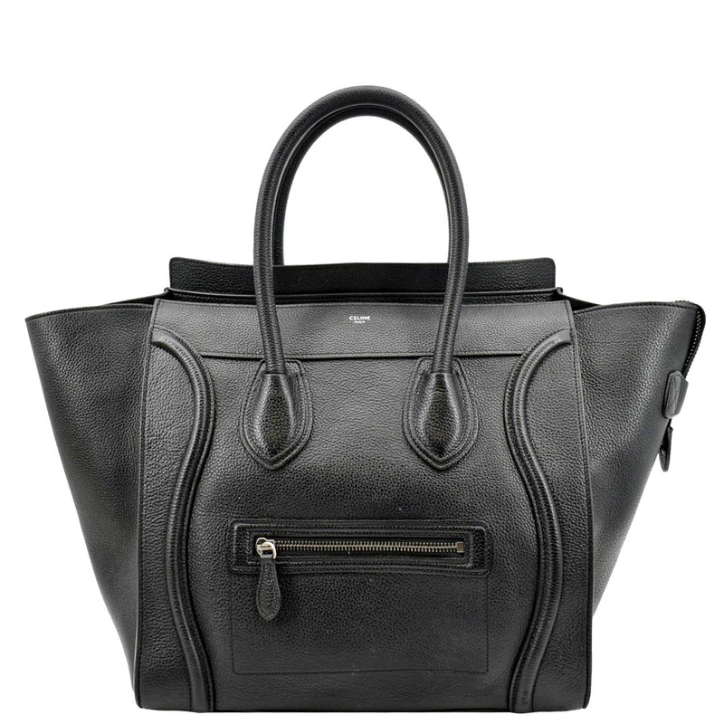 CELINE Drummed Mini Luggage Calfskin Leather Tote Bag Black