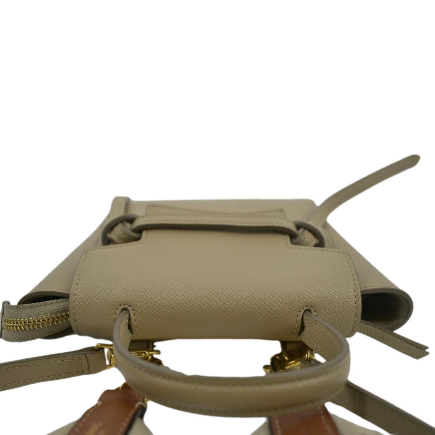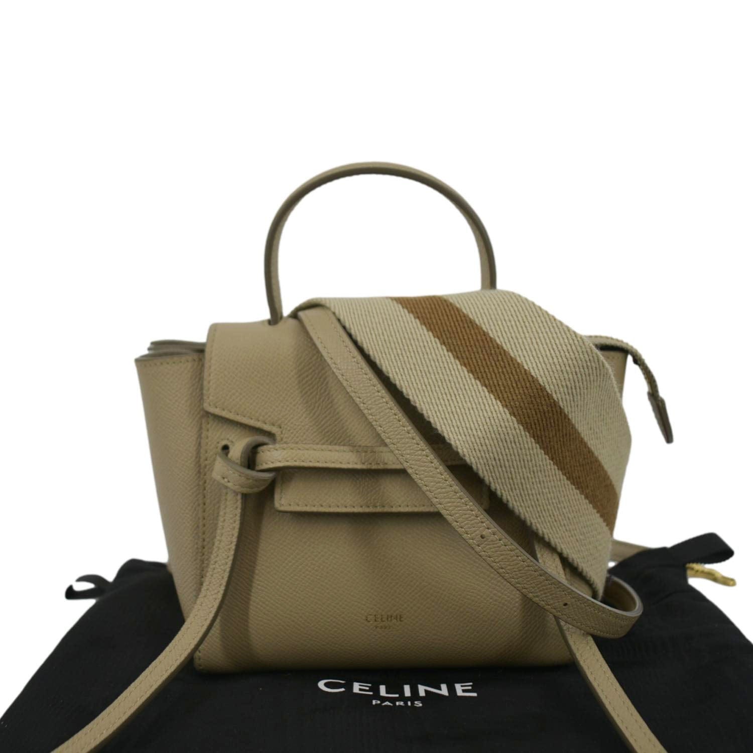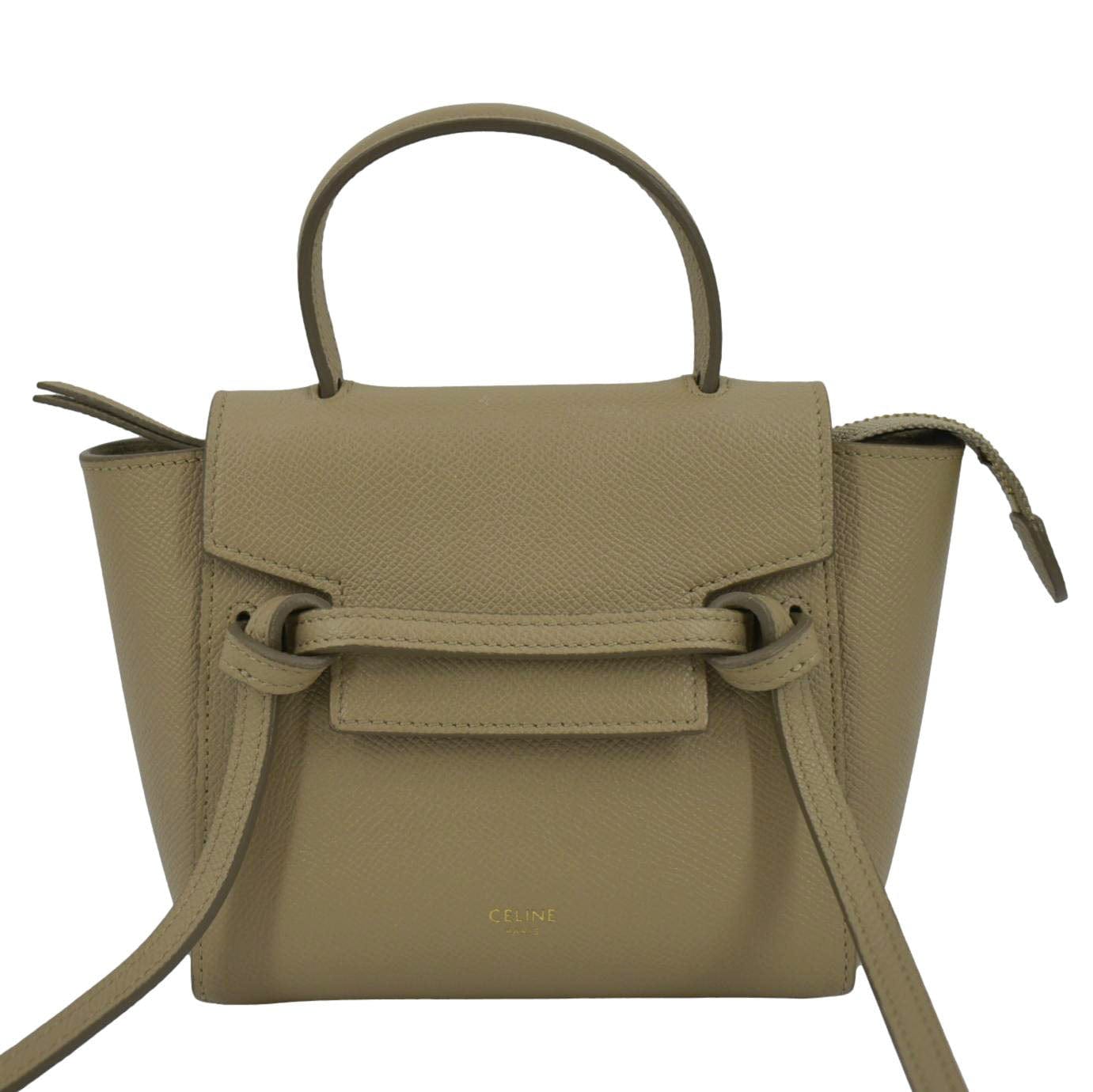 CELINE Nano Belt Grained Leather 2Way Shoulder Bag Taupe