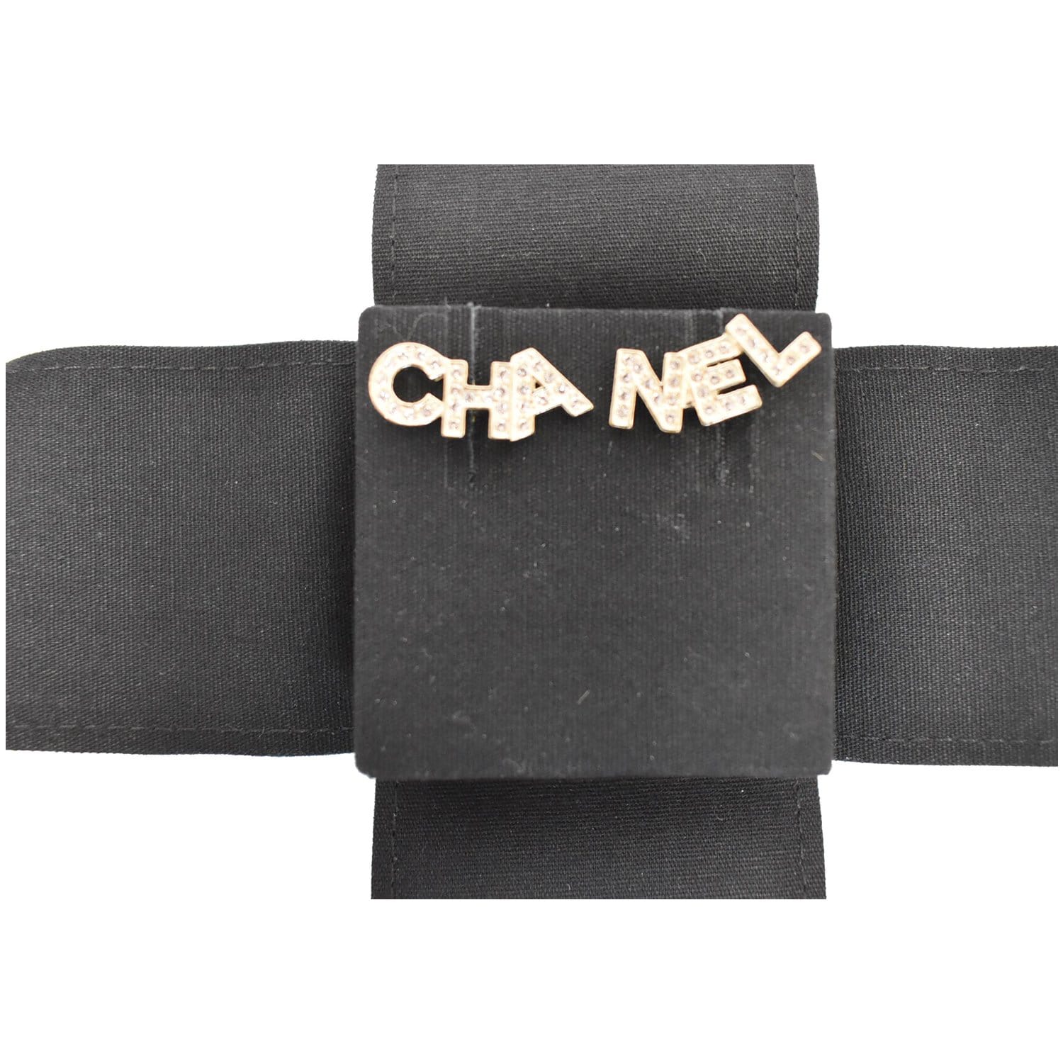 CHANEL 20B CHA NEL Stud Crystal Earrings Gold
