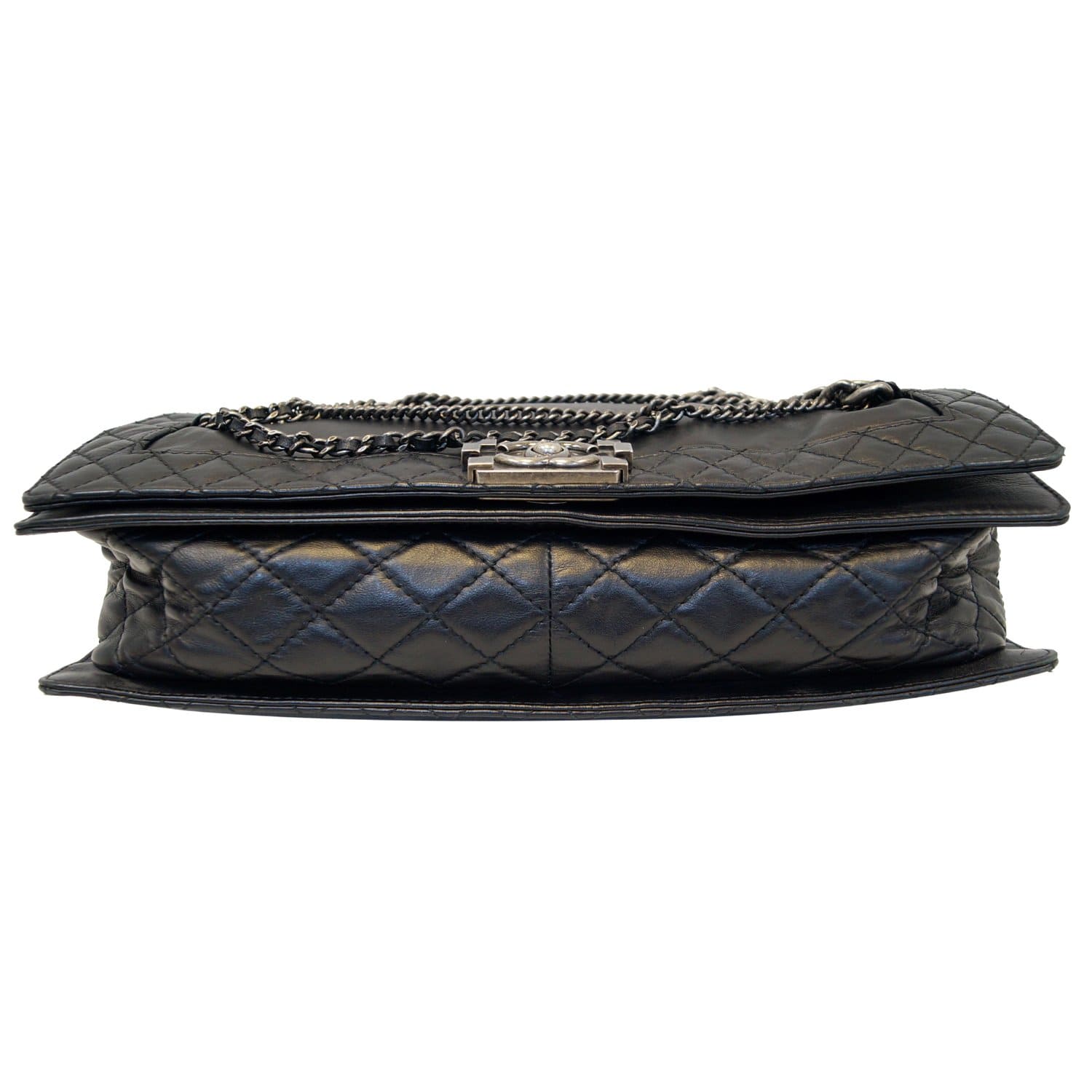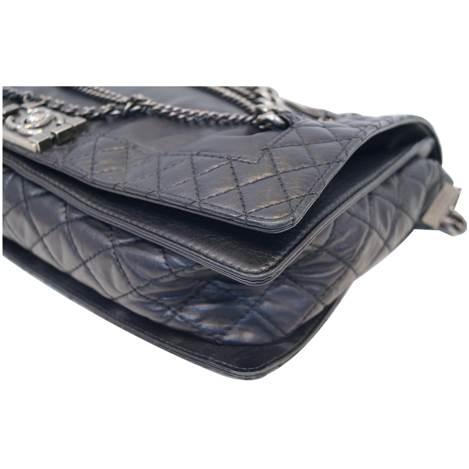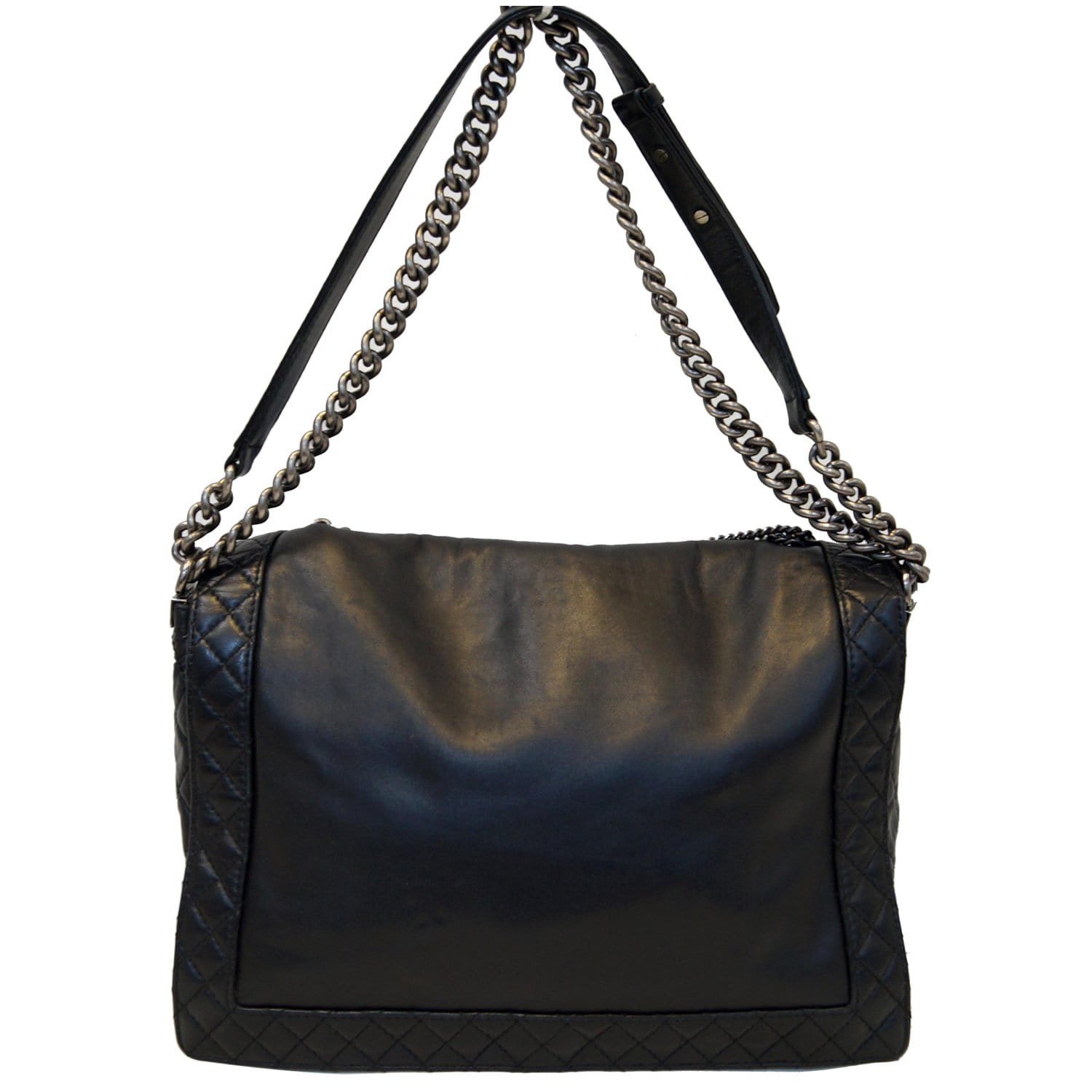 CHANEL Boy Enchained Large Calfskin Leather Flap Shoulder Bag Black