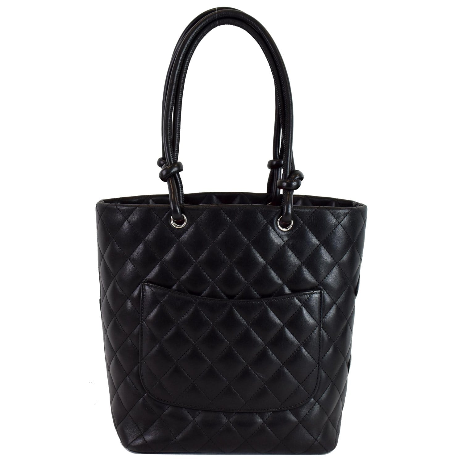 Cambon Ligne Quilted Calfskin Leather Tote Bag Black