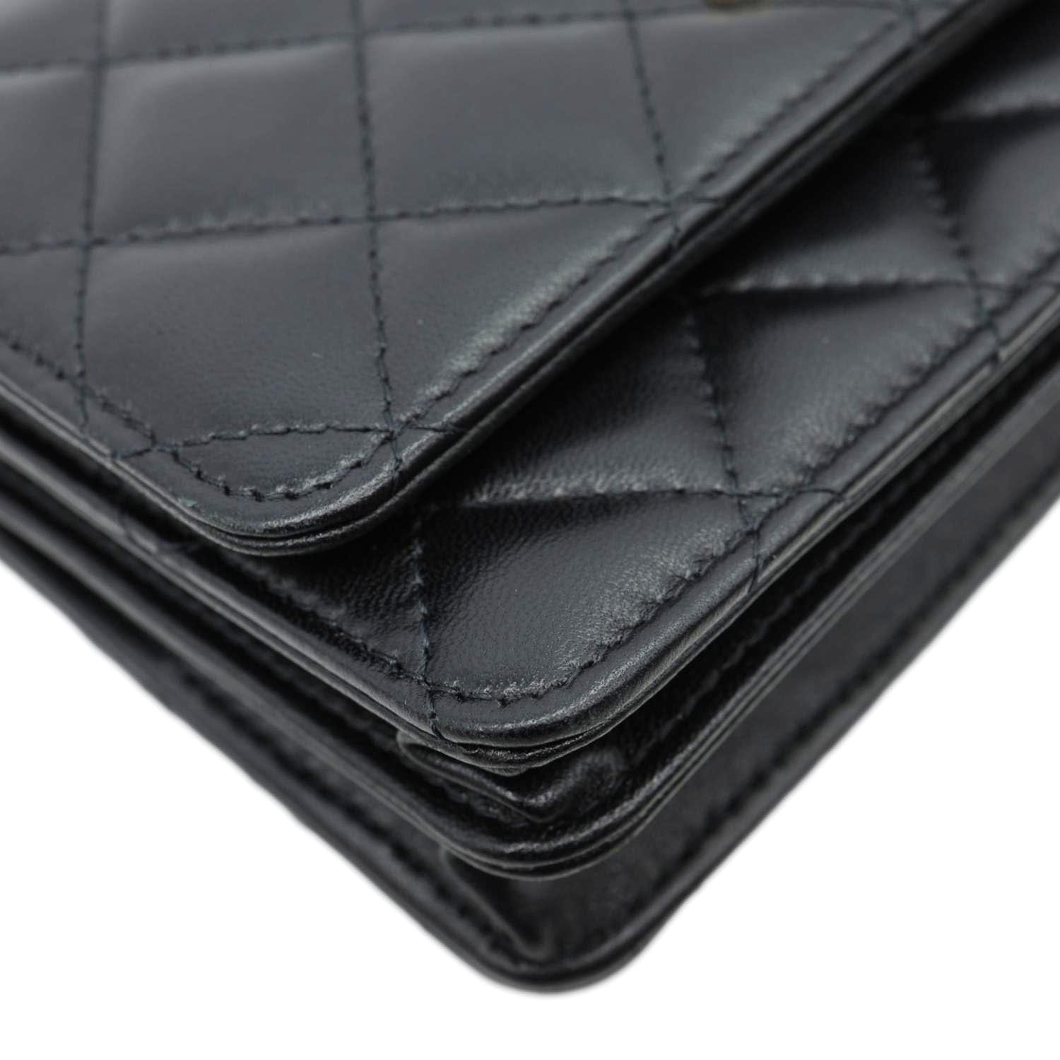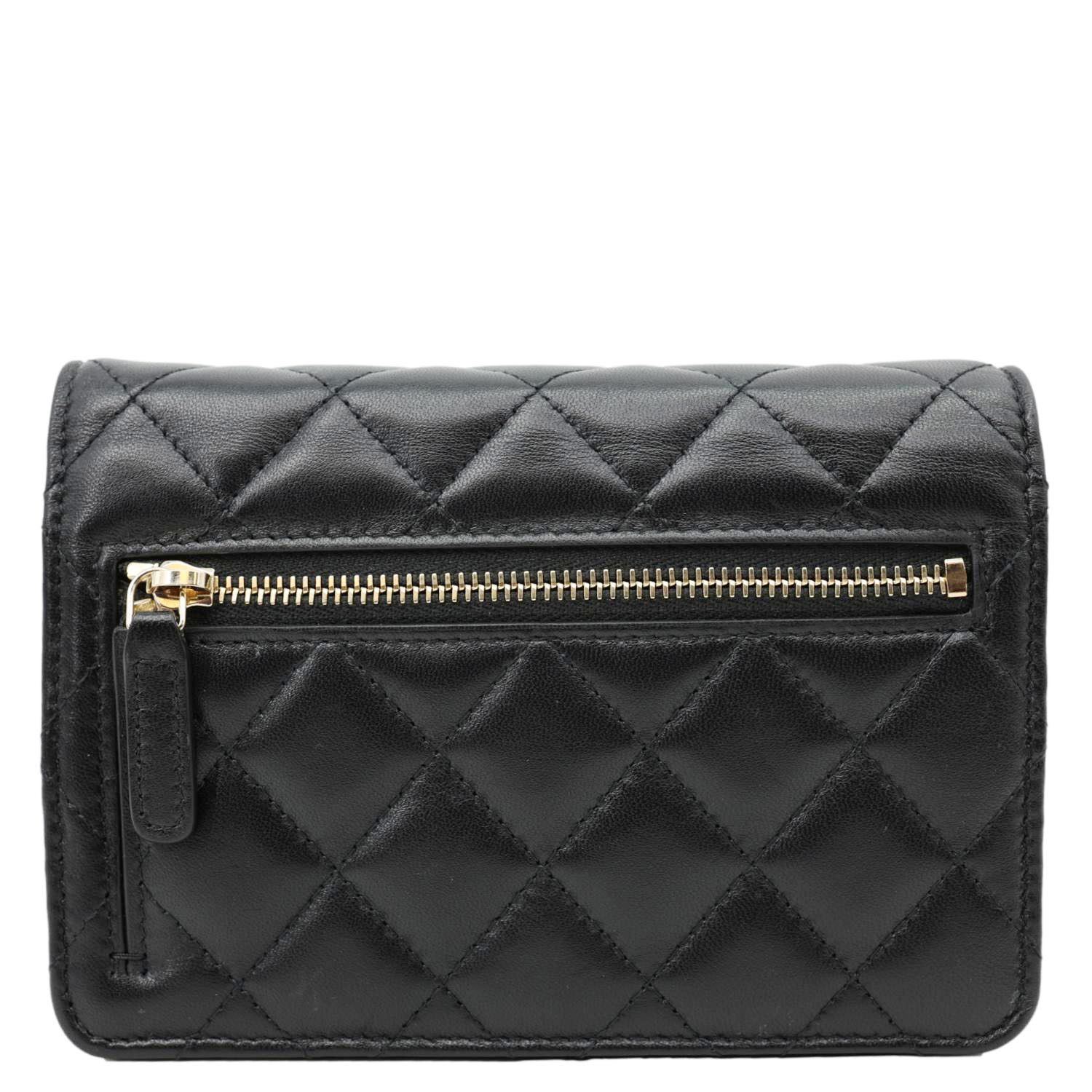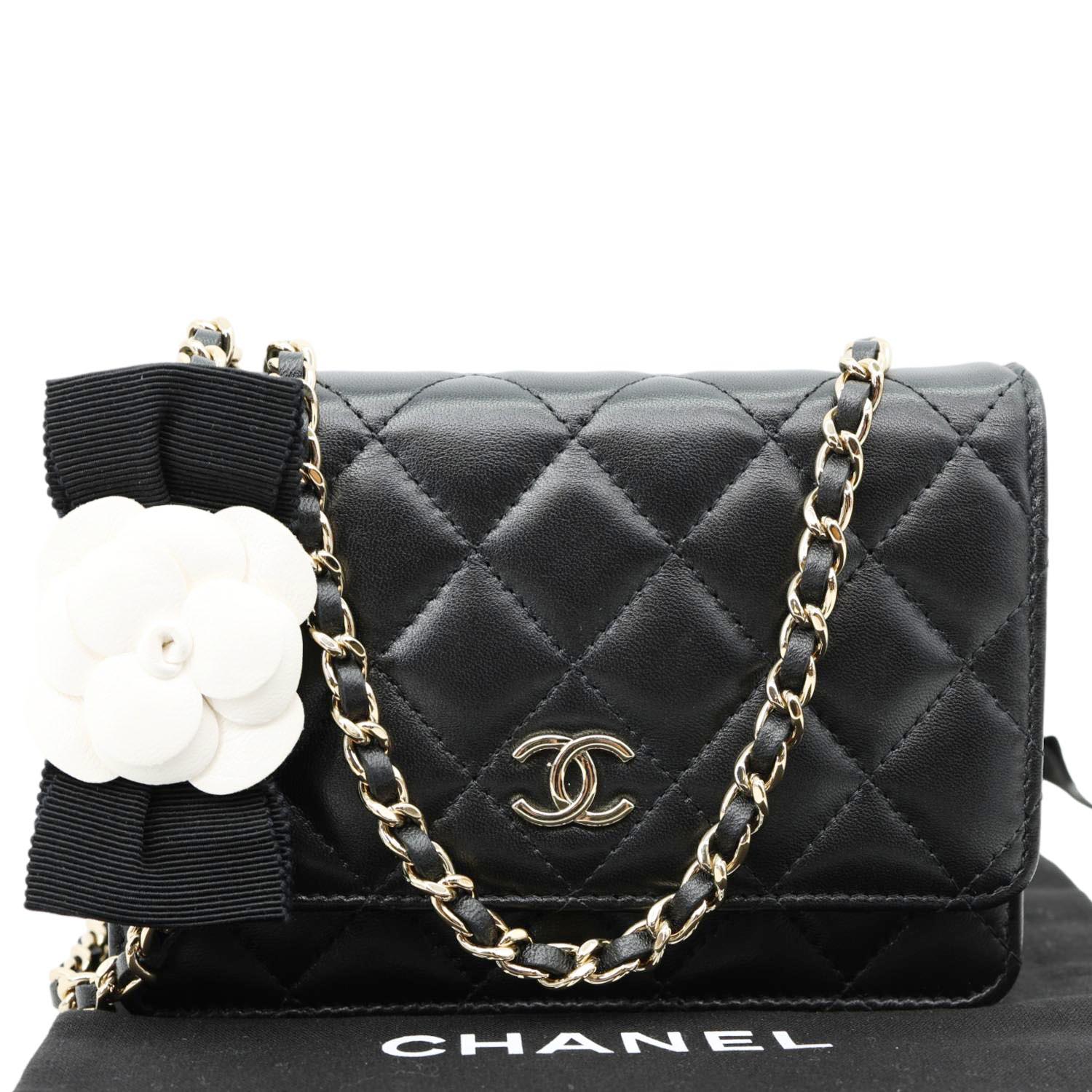 CHANEL Camellia Bow Mini Quilted Leather WOC Crossbody Bag Black
