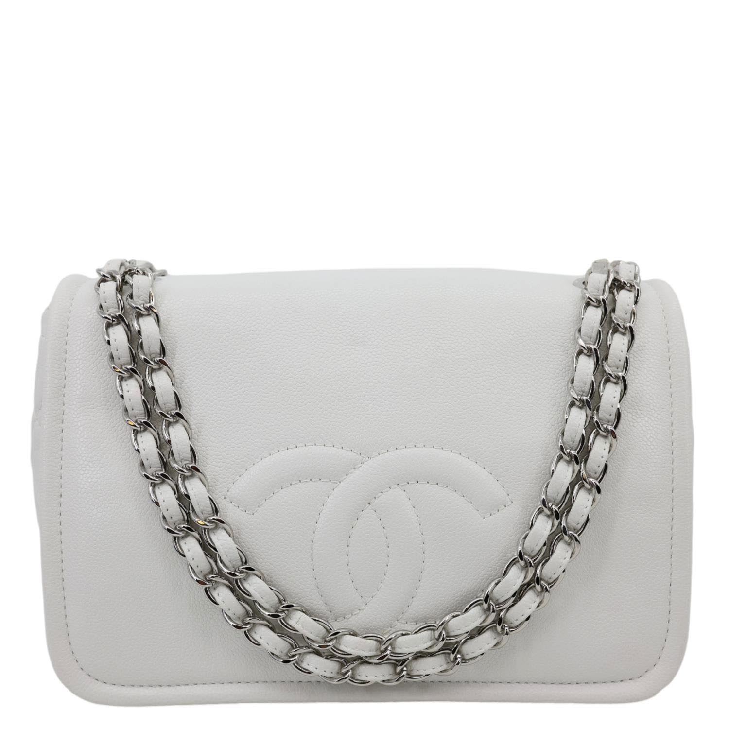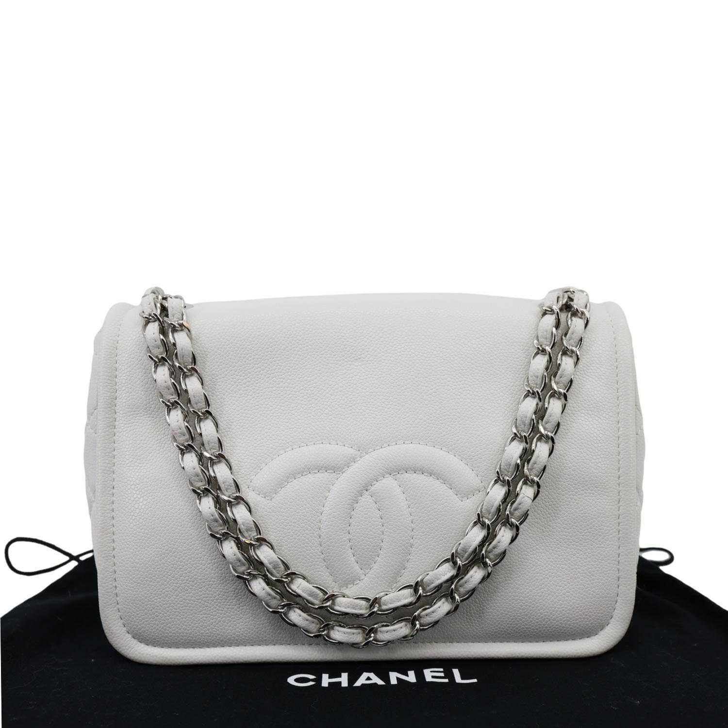 CHANEL Timeless Flap CC Caviar Leather Crossbody Bag White