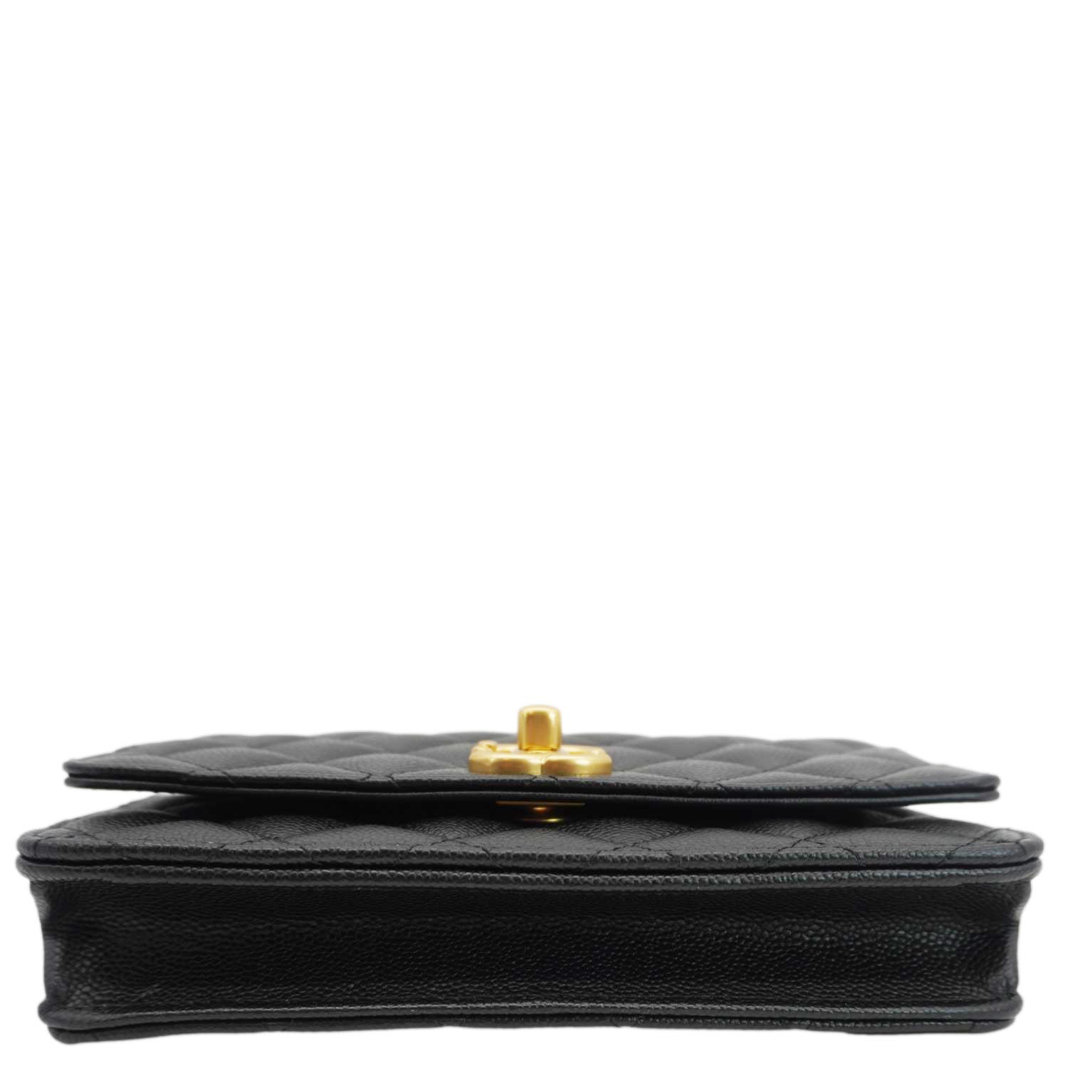 Wallet On Chain Quilted Caviar Leather Crossbody Bag Black