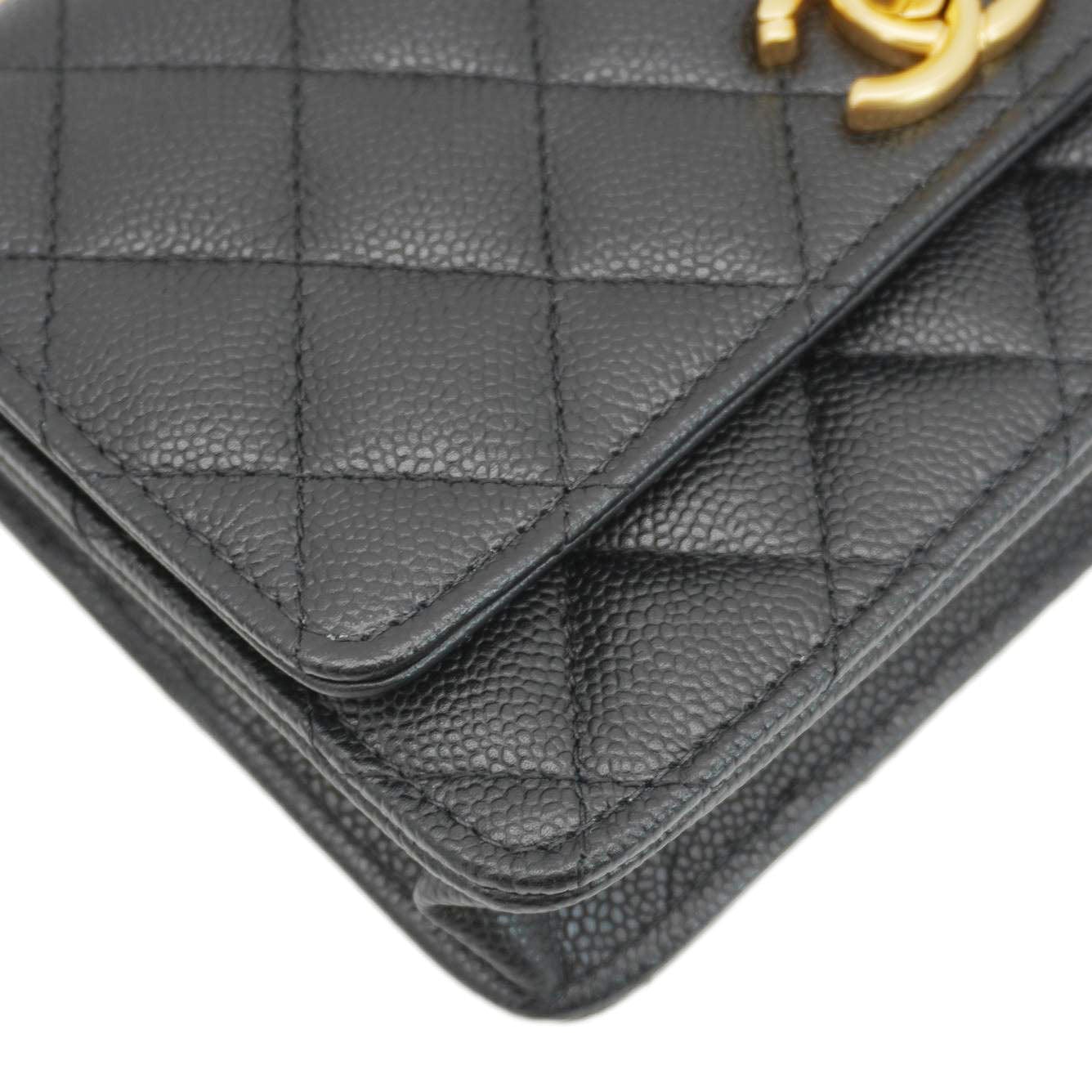 CHANEL Wallet On Chain Quilted Caviar Leather Crossbody Bag Black