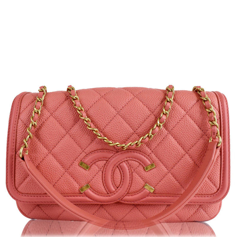 CHANEL CC Filigree Medium Quilted Caviar Leather Shoulder Bag Salmon