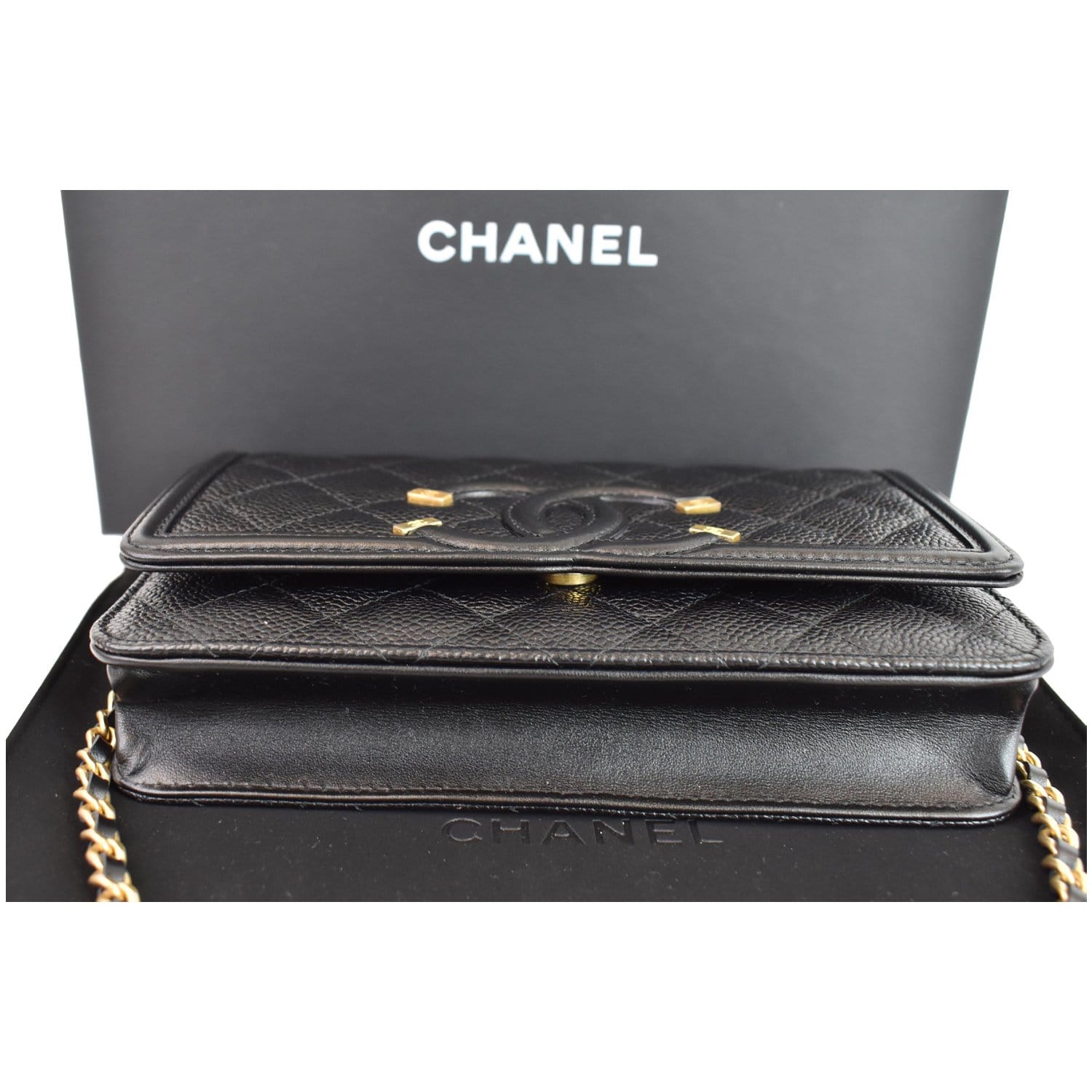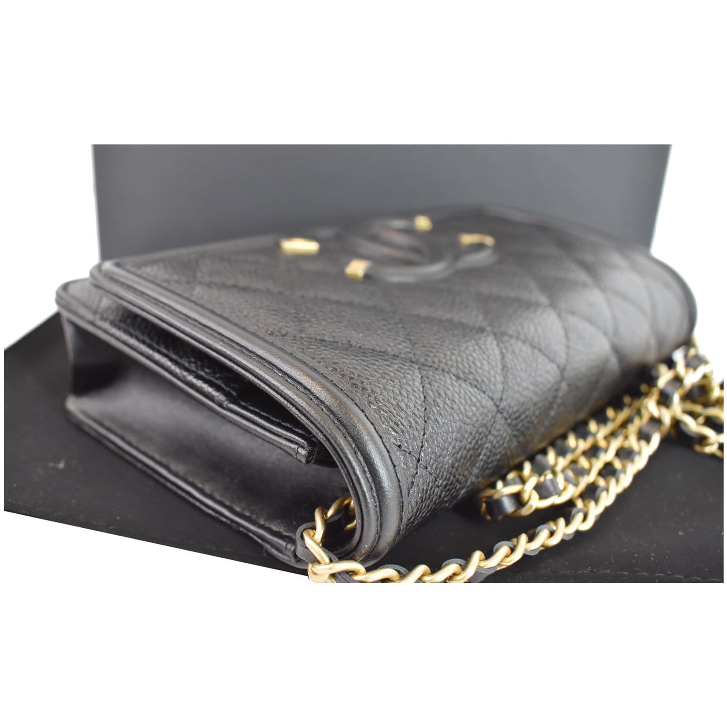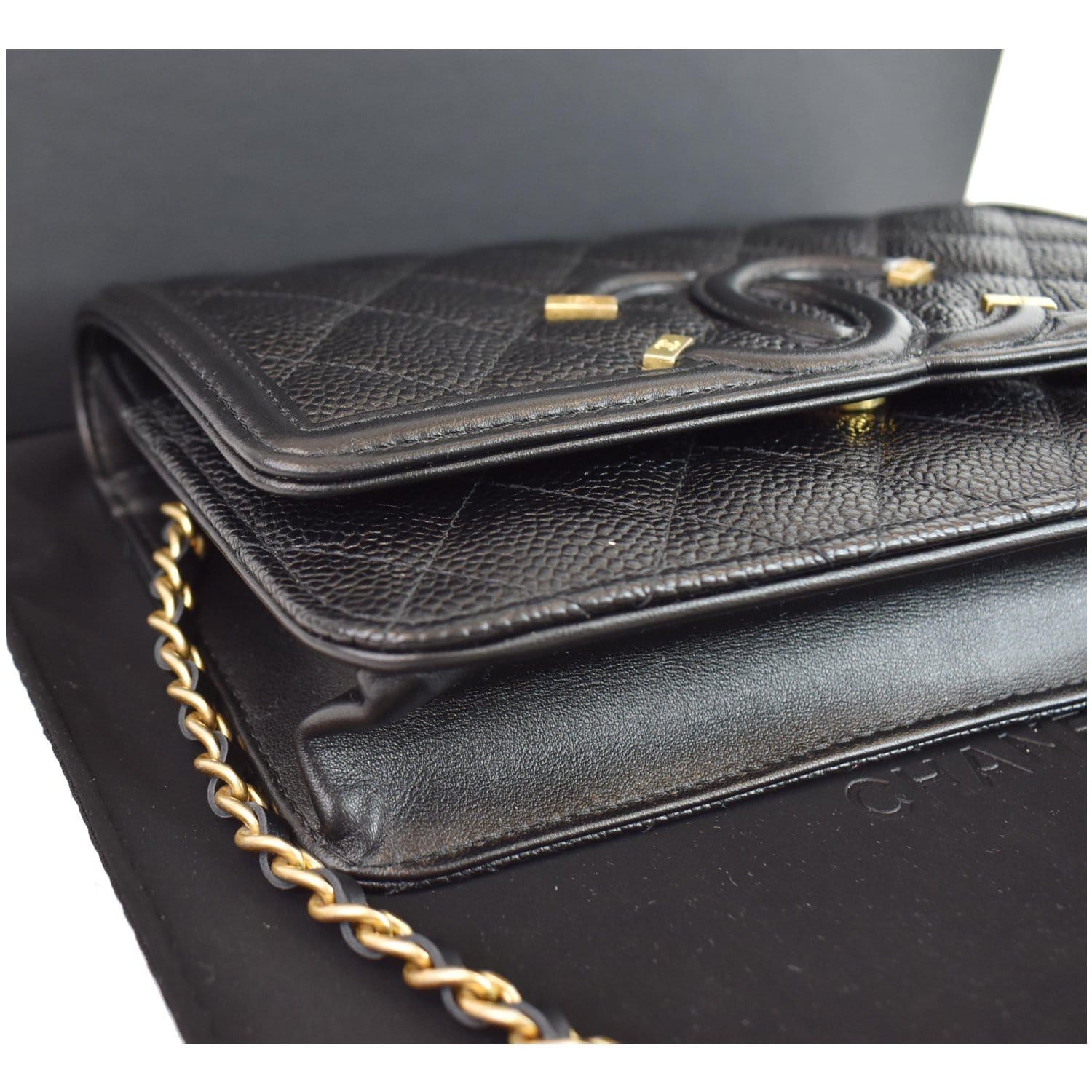 CHANEL CC Filigree Small Flap Caviar Leather Shoulder Bag Black