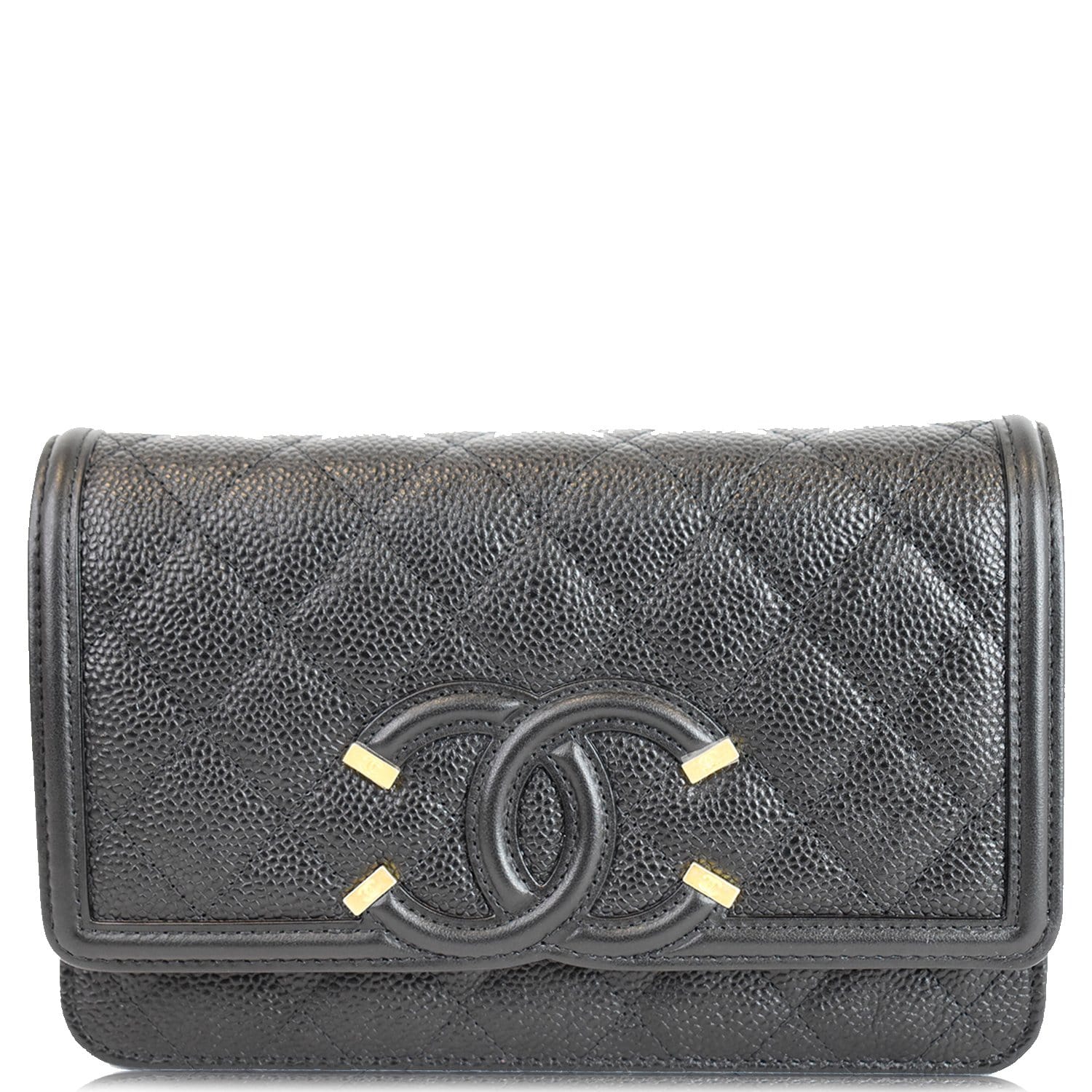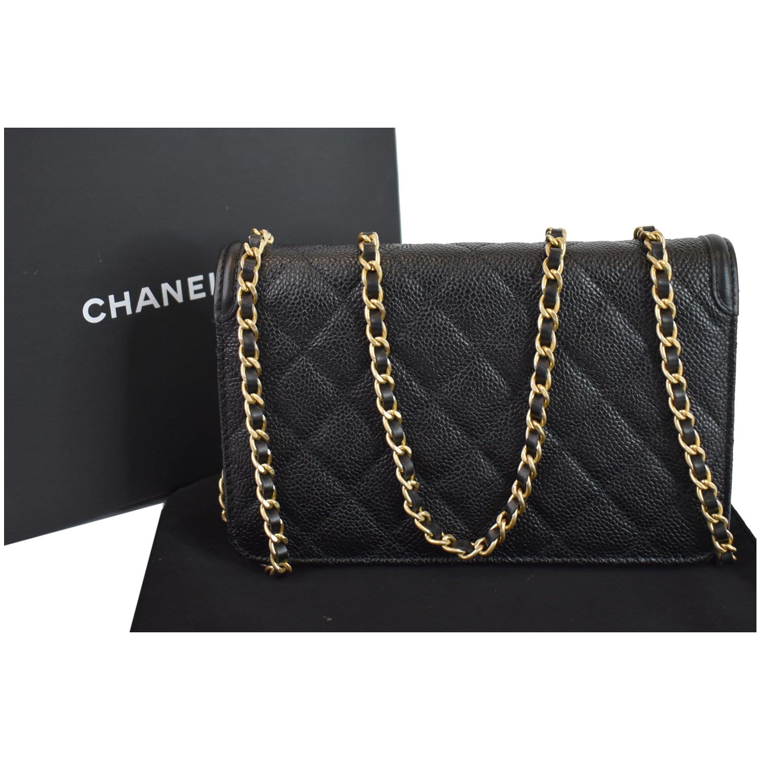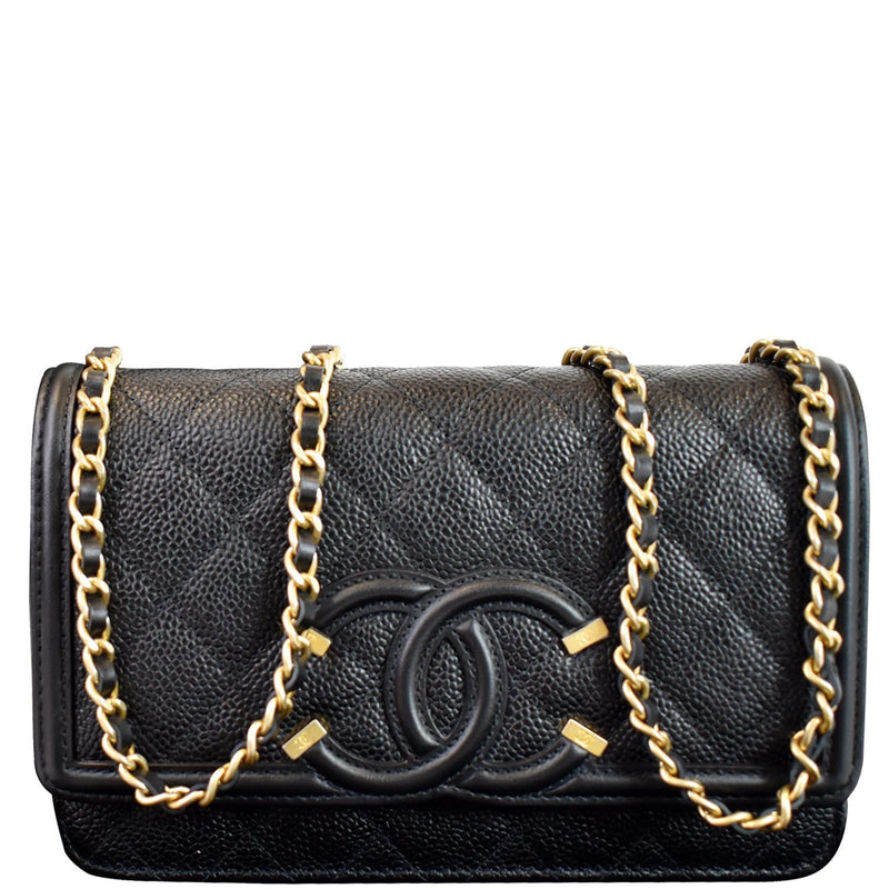 CHANEL CC Filigree Small Flap Caviar Leather Shoulder Bag Black
