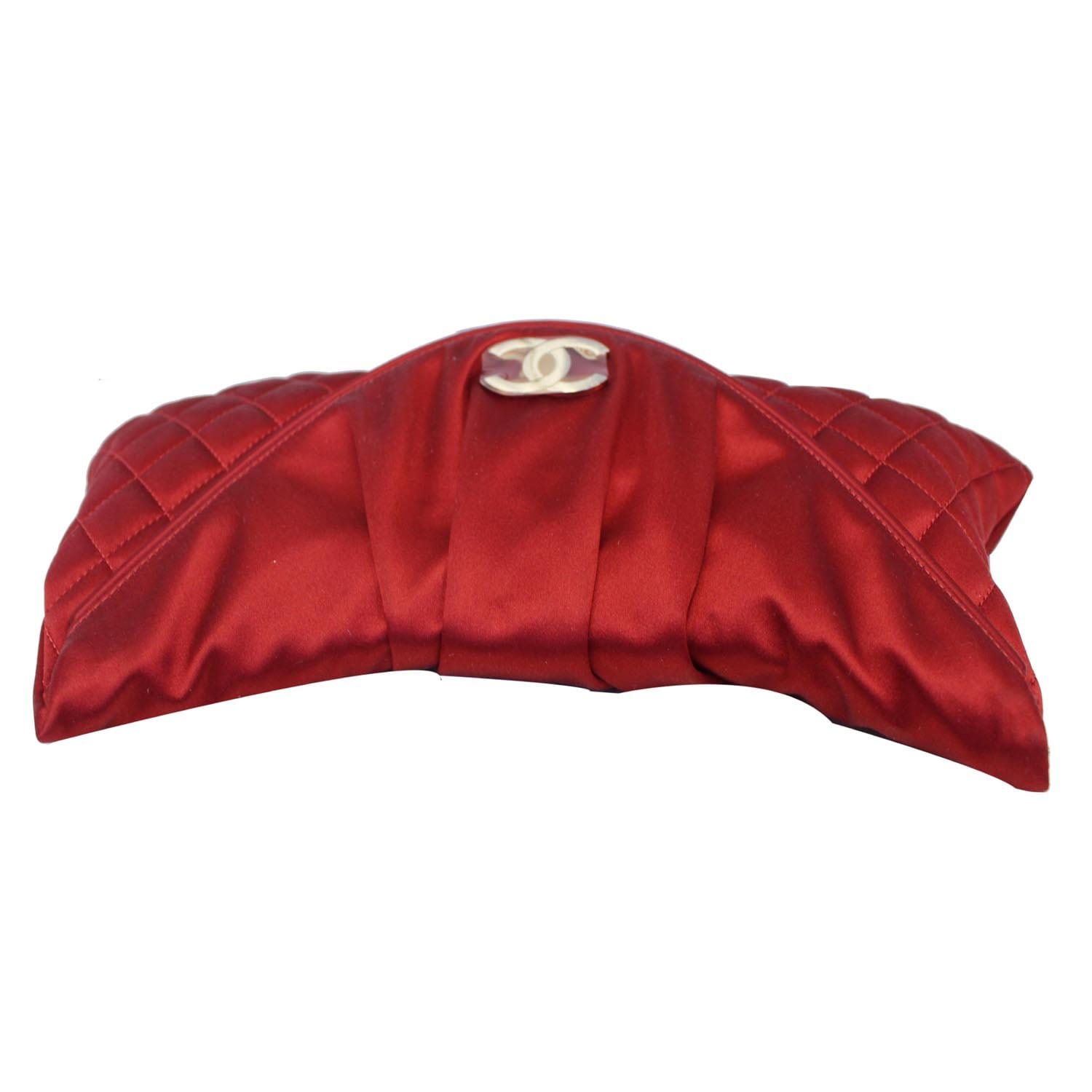 CHANEL CC Half Moon Quilted Satin Clutch Bag Red