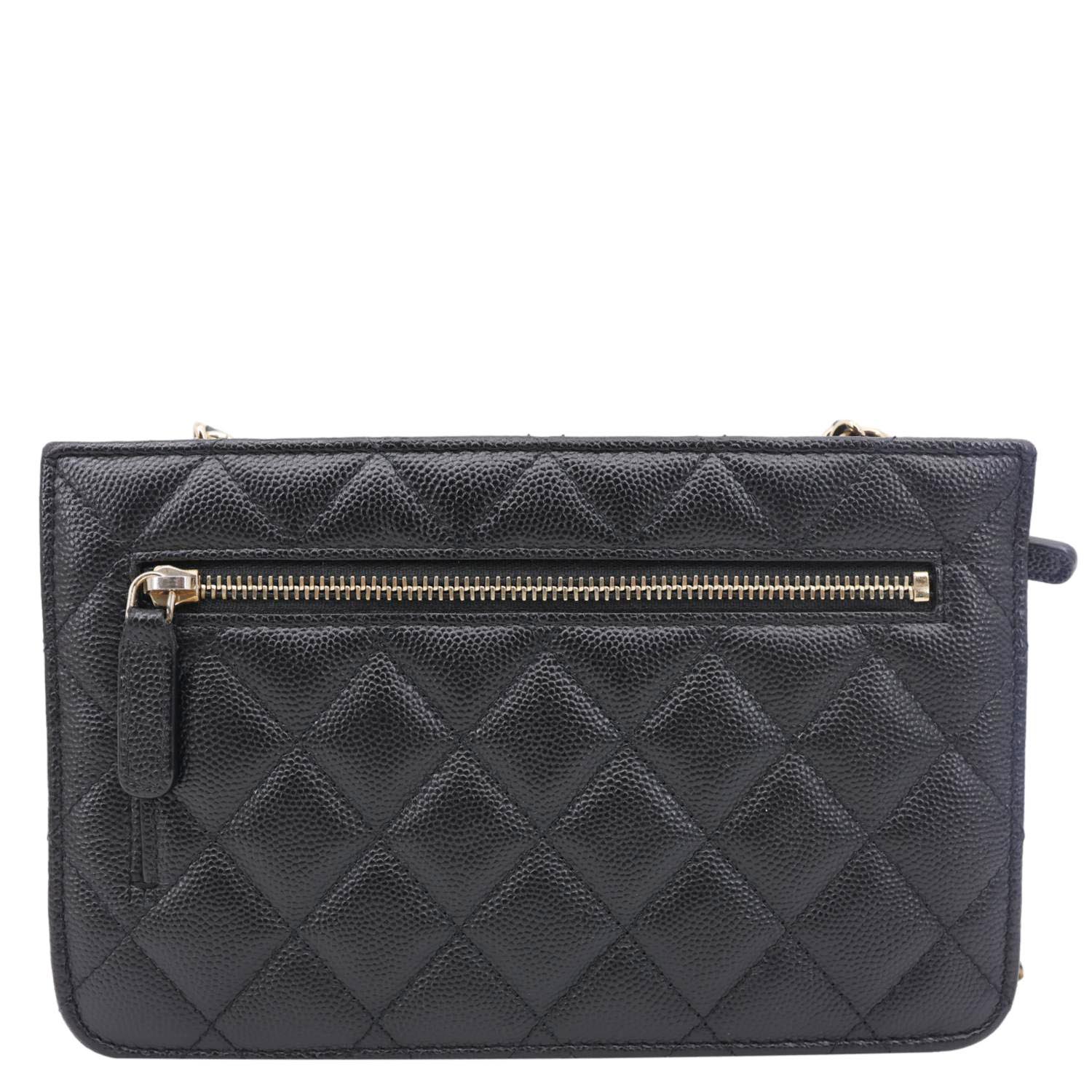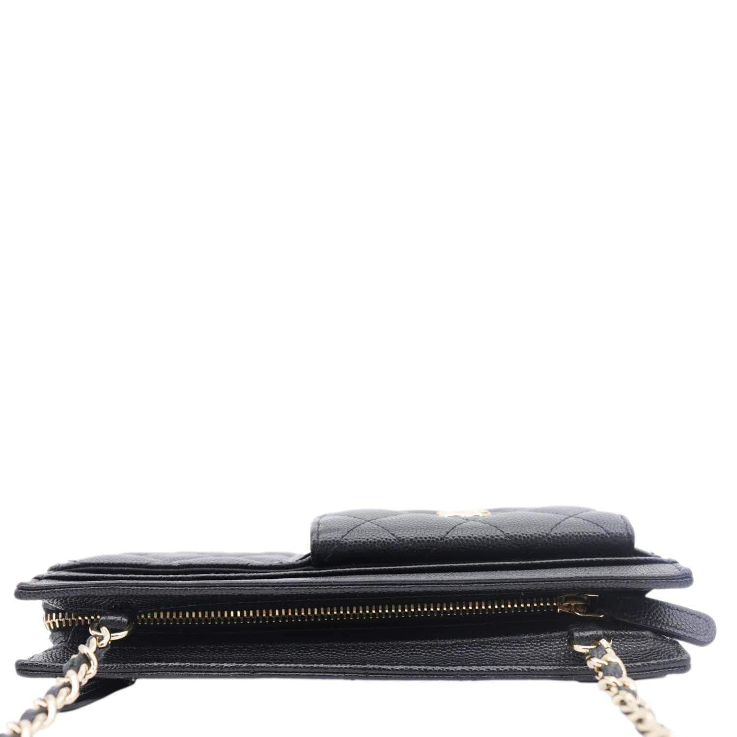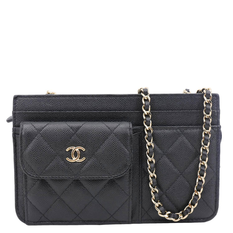 CC Multi-Pocket In & Out Quilted Caviar Leather Chain Wallet Black