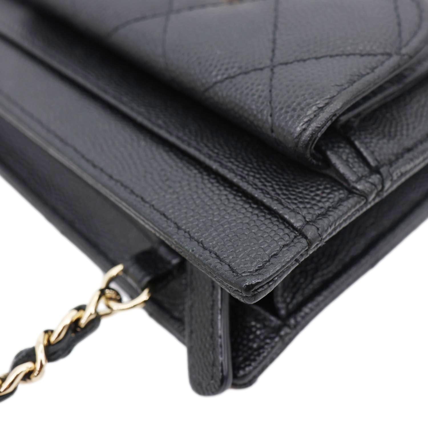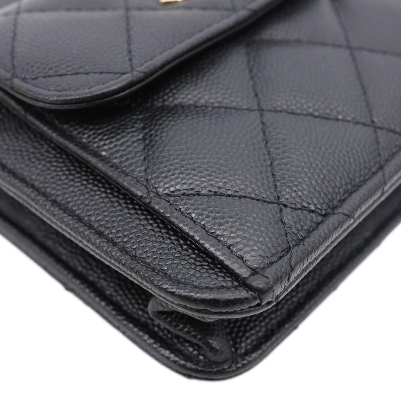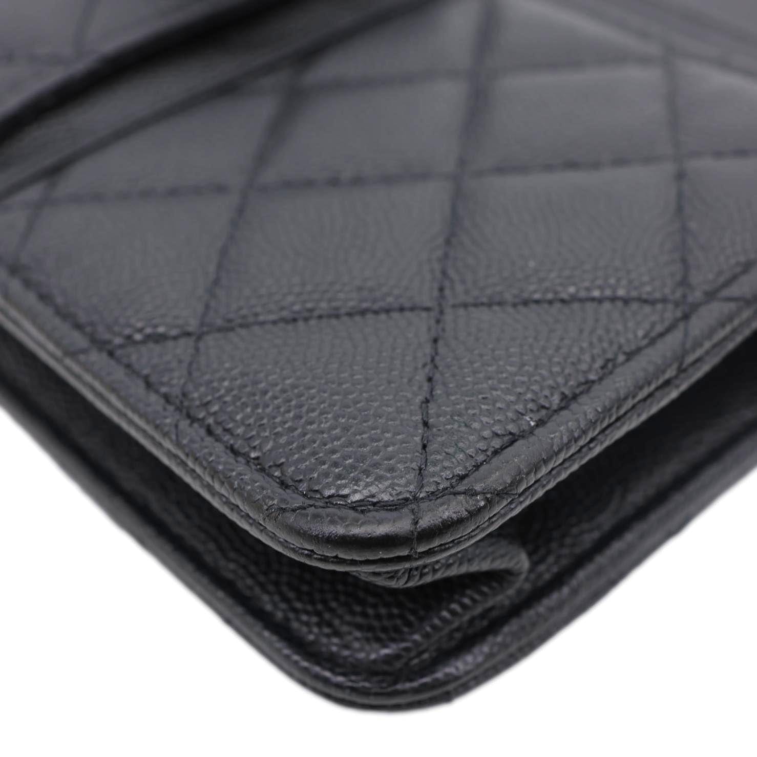 CC Multi-Pocket In & Out Quilted Caviar Leather Chain Wallet Black