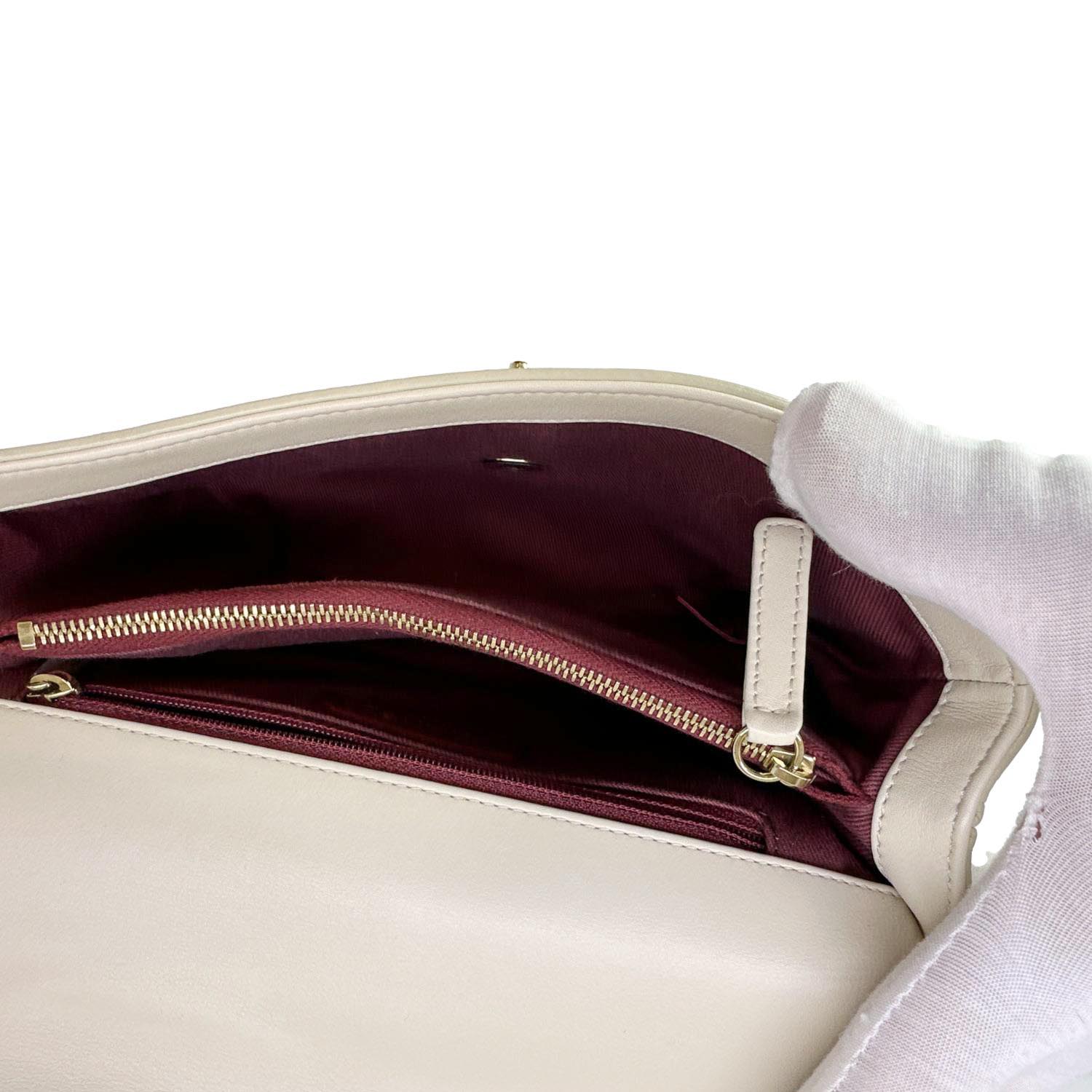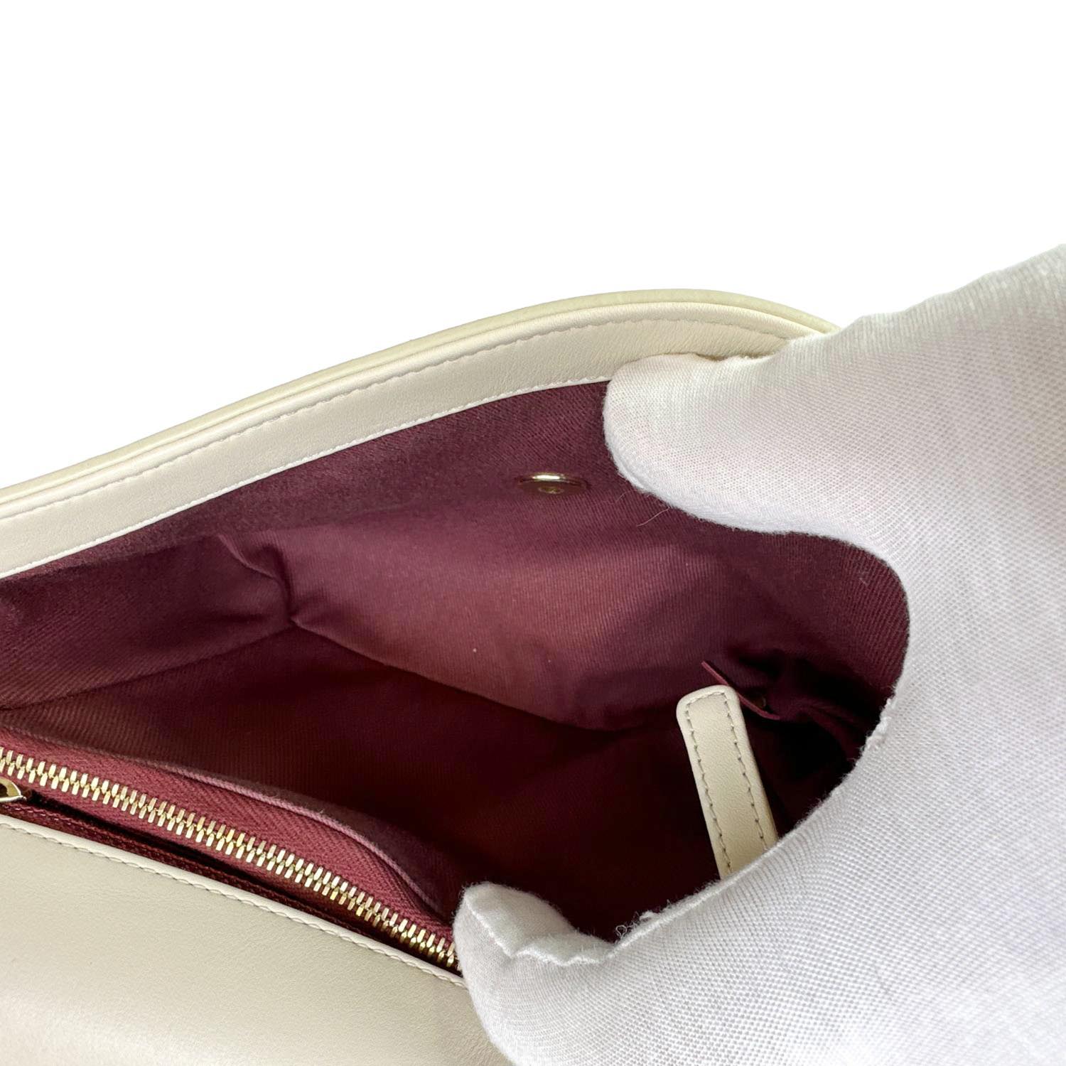 Coco Flap Chevron Stitched Leather Shoulder Bag Beige