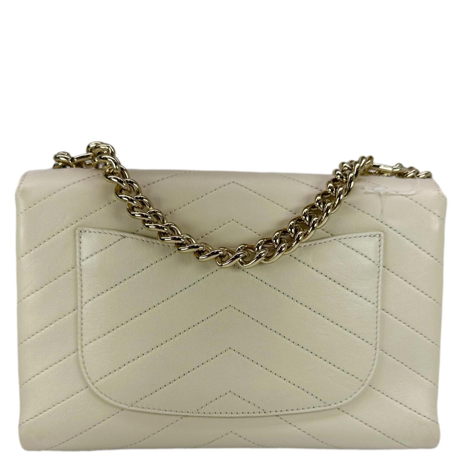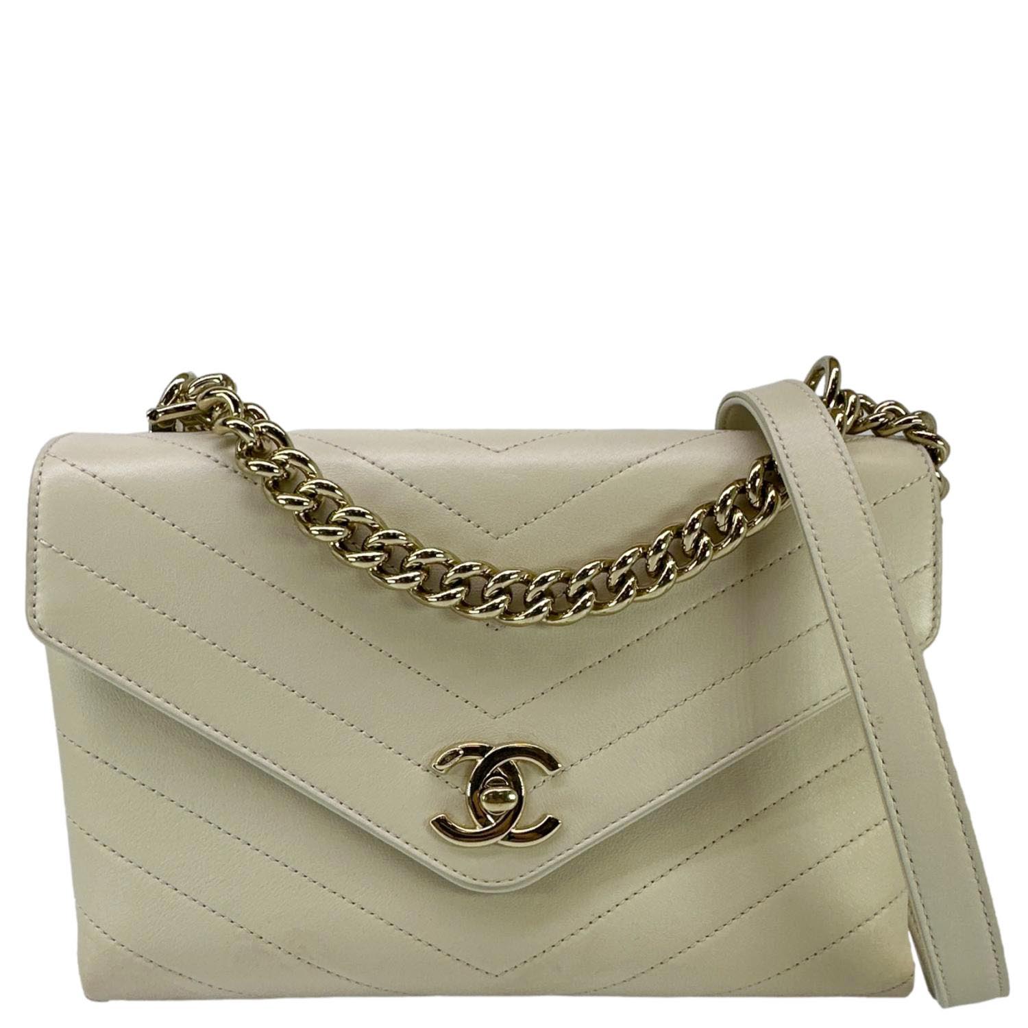 CHANEL Coco Flap Chevron Stitched Leather Shoulder Bag Beige