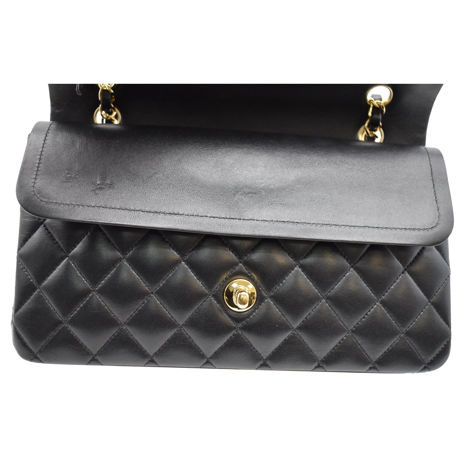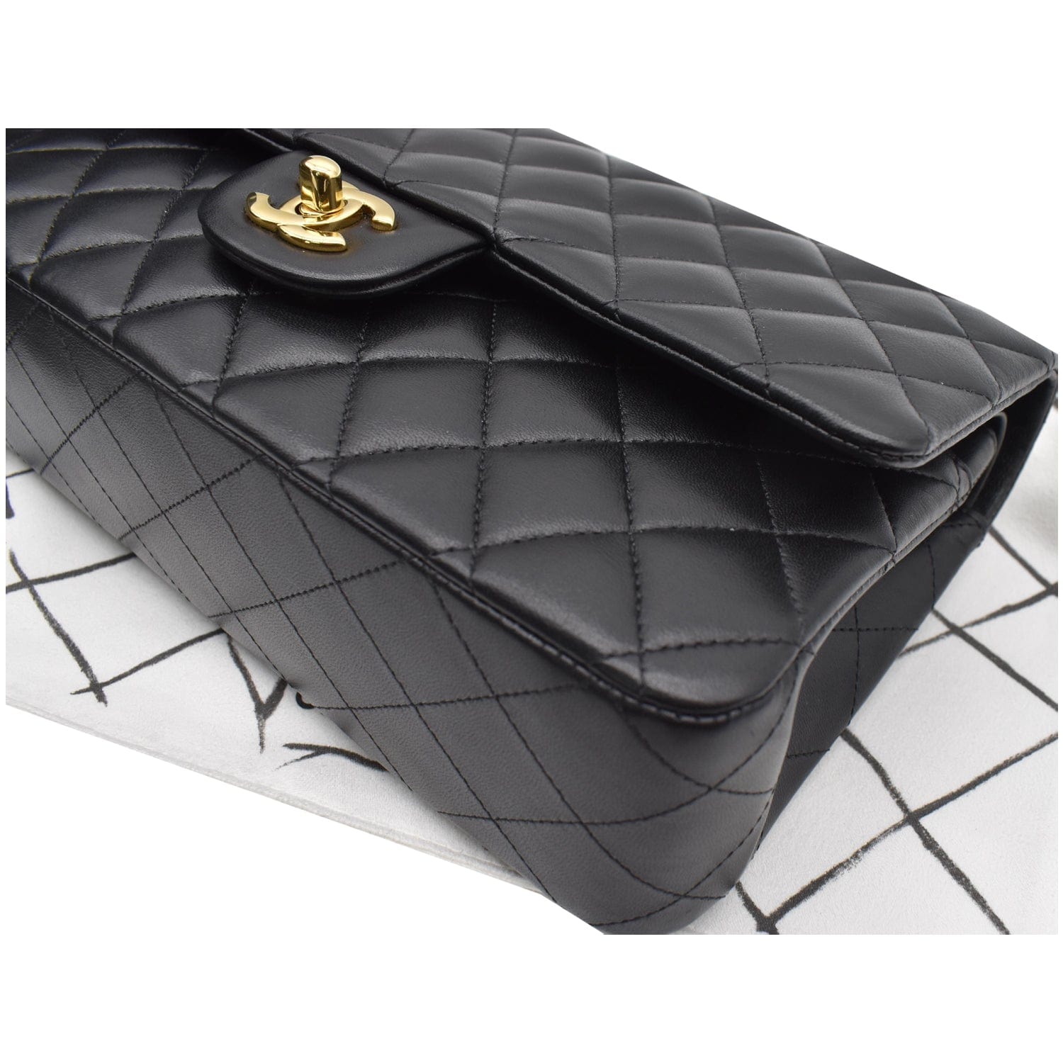 CHANEL Classic Double Flap Medium Leather Shoulder Bag Black