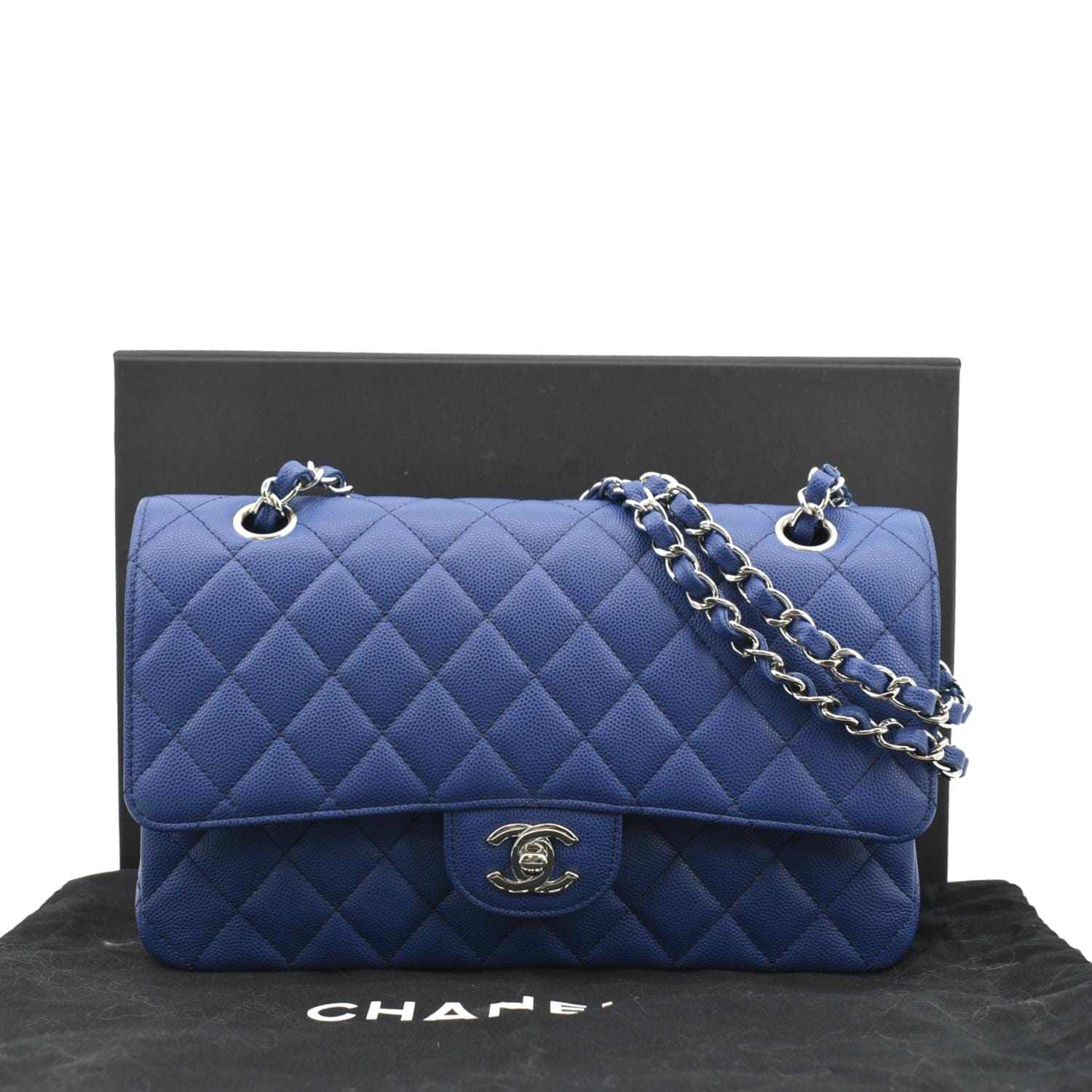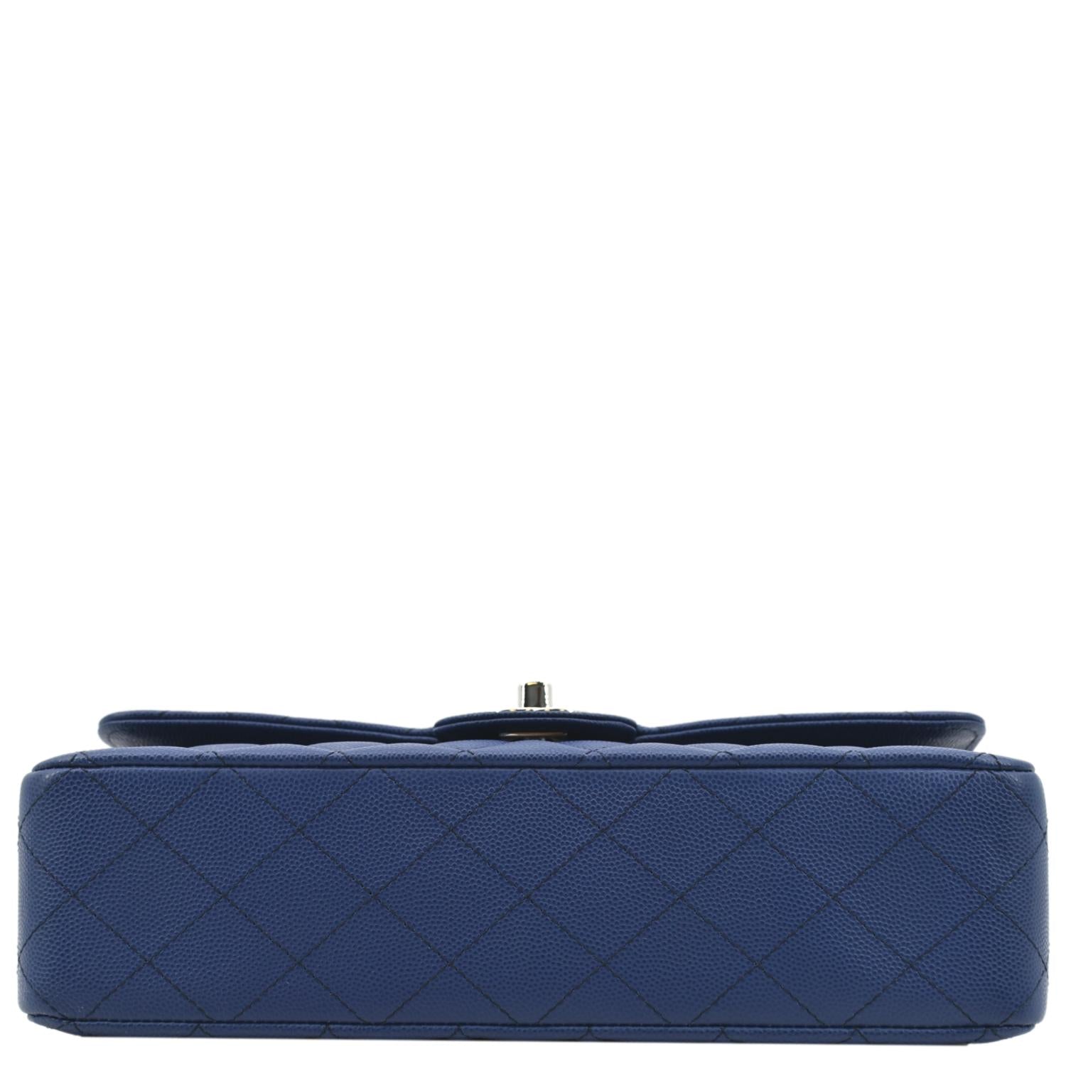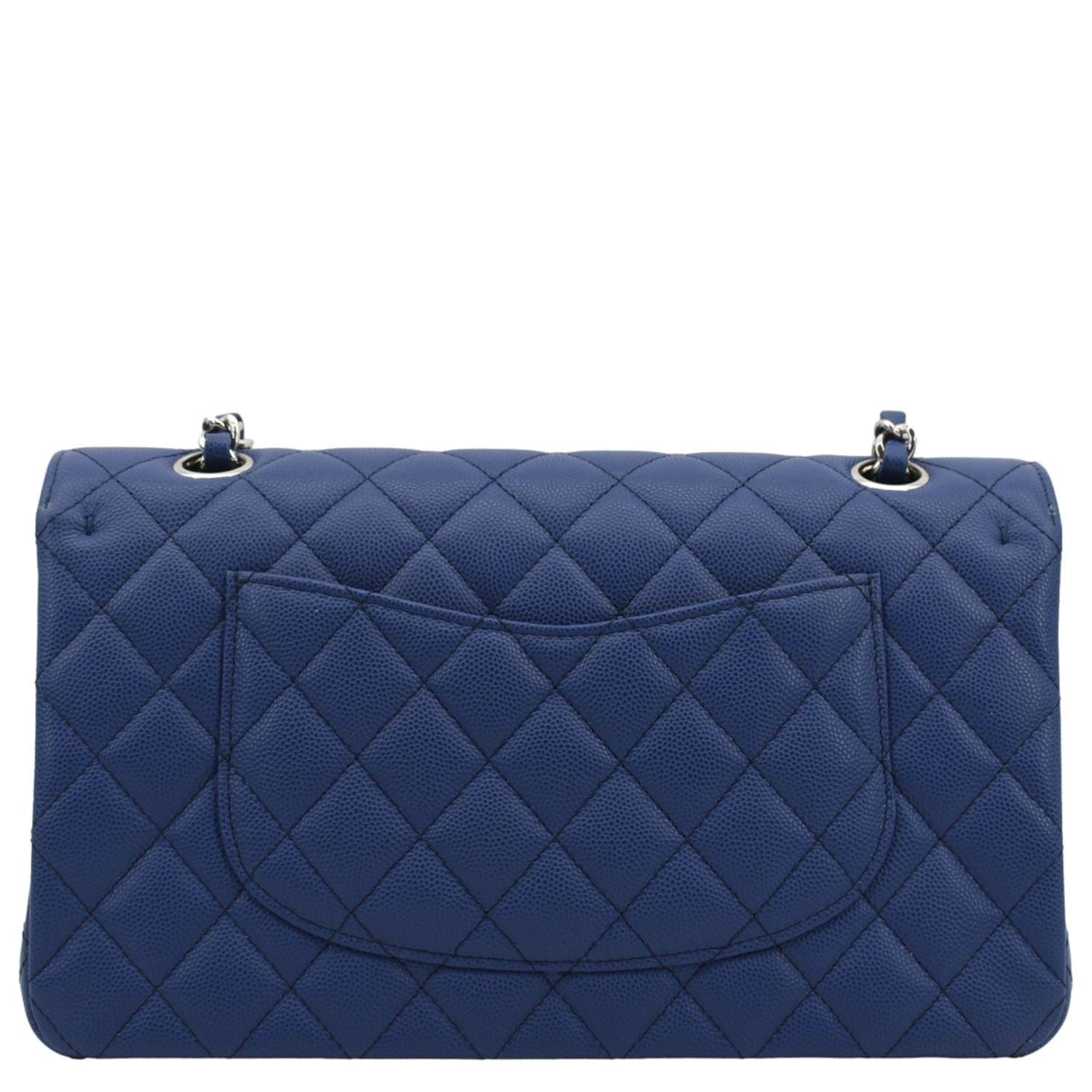 CHANEL Classic Medium Flap Quilted Caviar Leather Shoulder Bag Blue