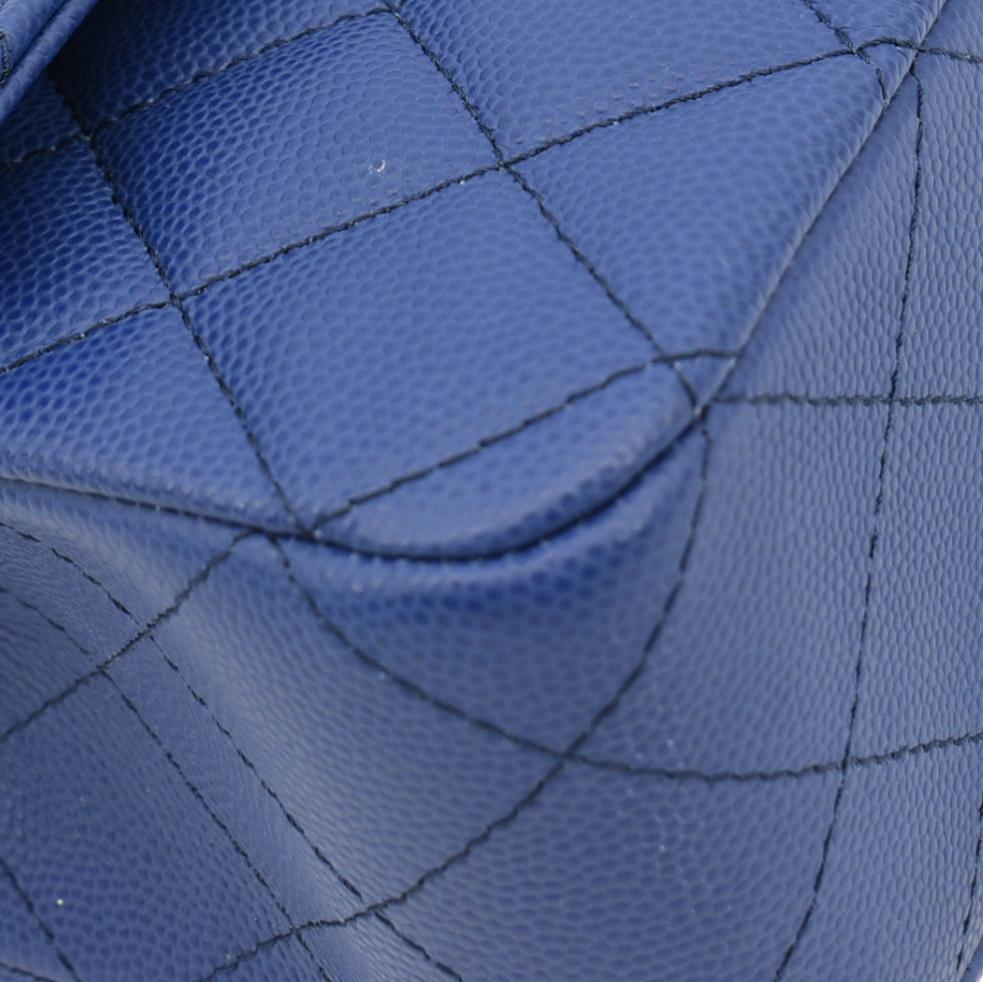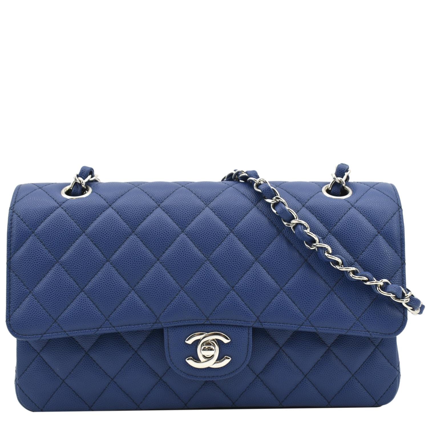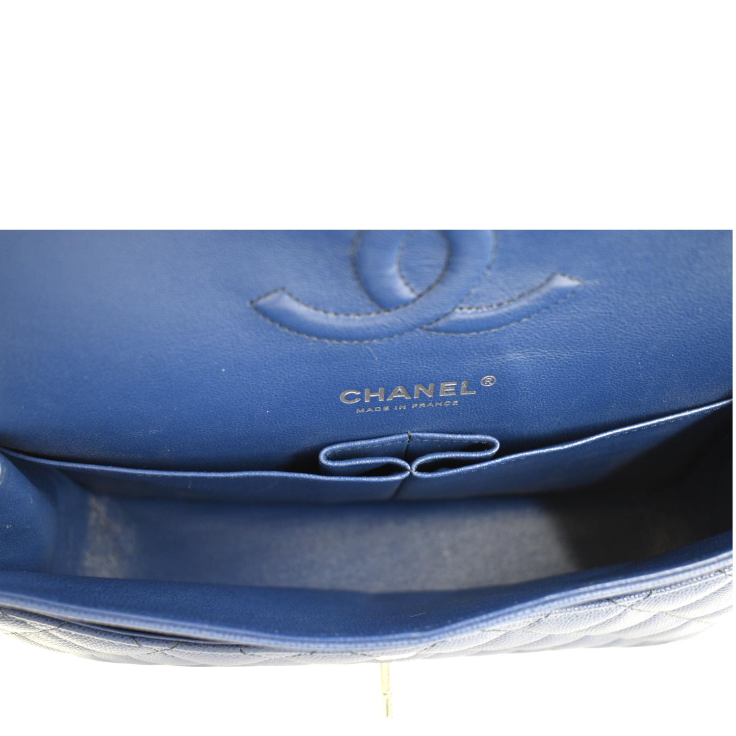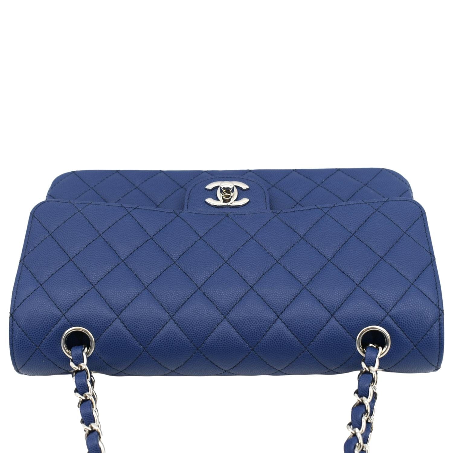 CHANEL Classic Medium Flap Quilted Caviar Leather Shoulder Bag Blue