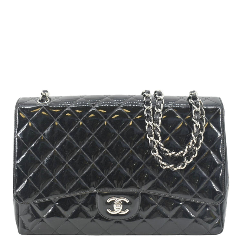 Classic Maxi Single Flap Patent Leather Shoulder Bag Black