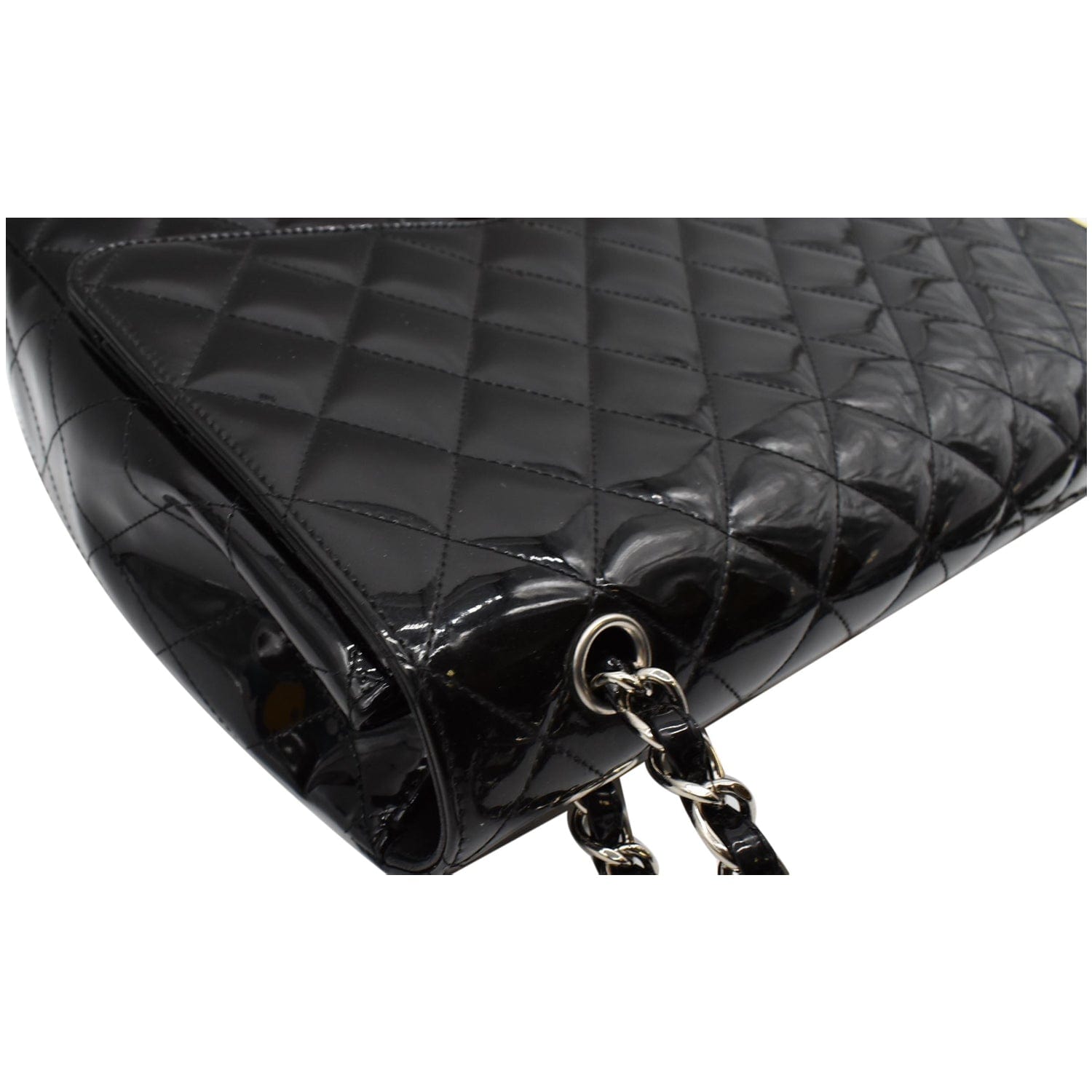 CHANEL Classic Maxi Single Flap Quilted Patent Leather Shoulder Bag Black