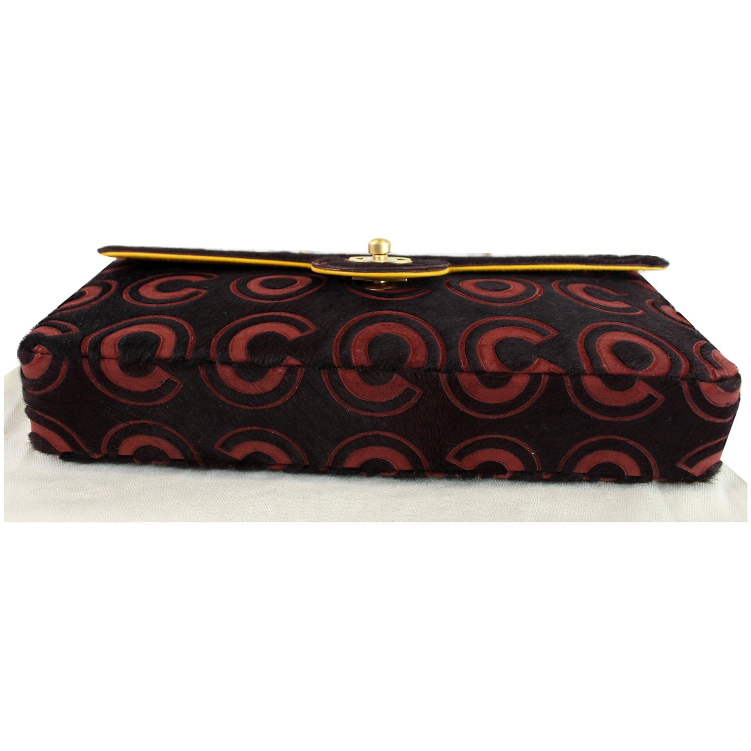 CHANEL Coco Pony Hair Leather Shoulder Bag Burgundy