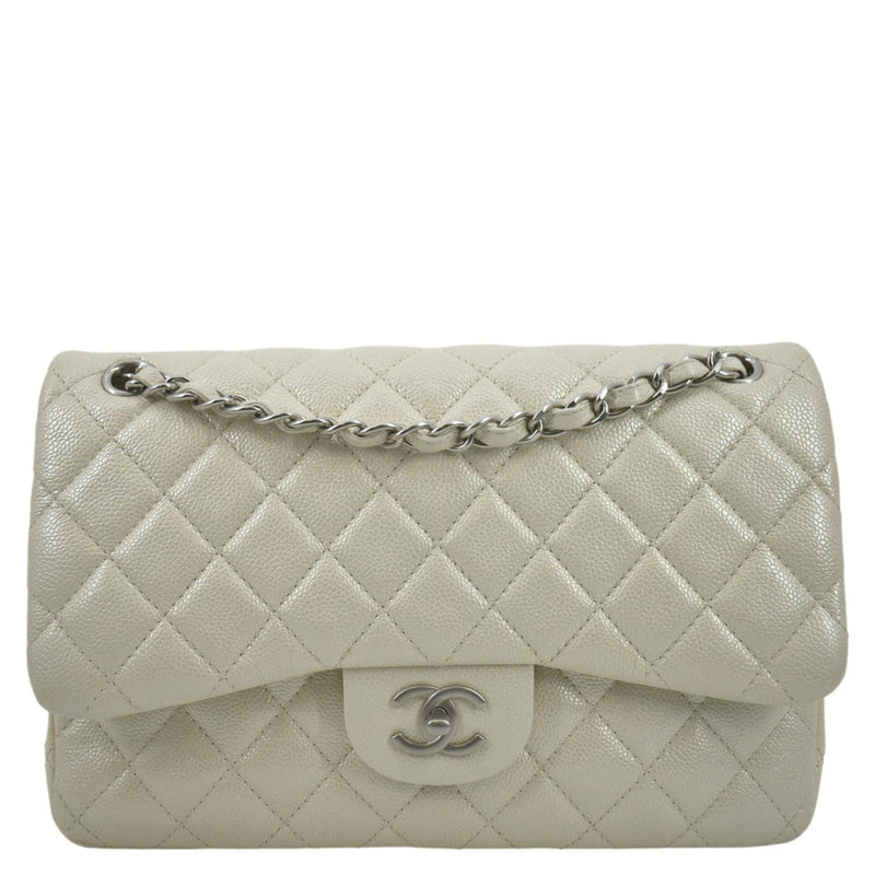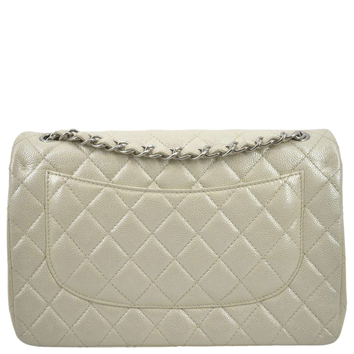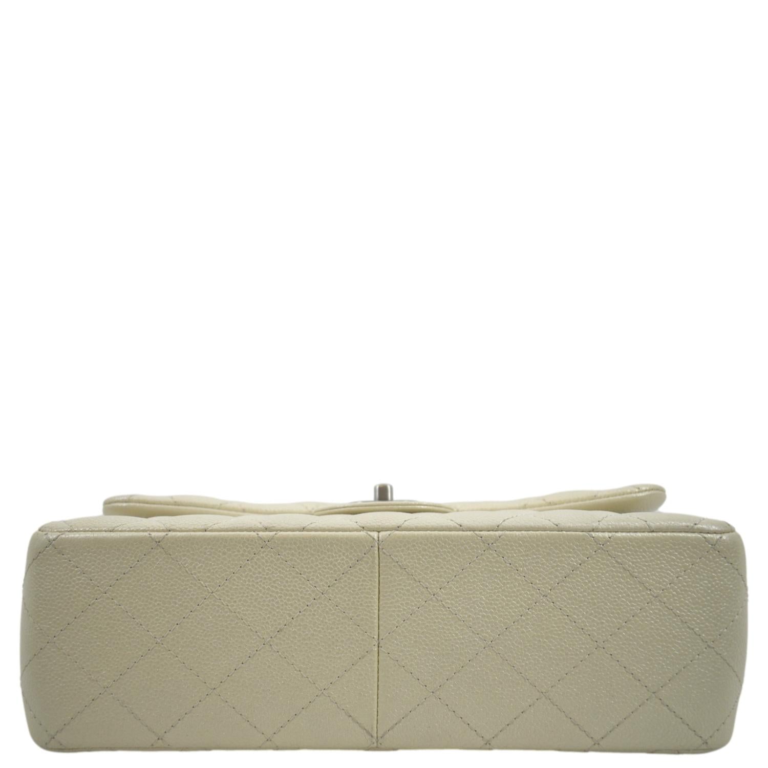 CHANEL Classic Double Flap Quilted Leather Shoulder Bag Ivory