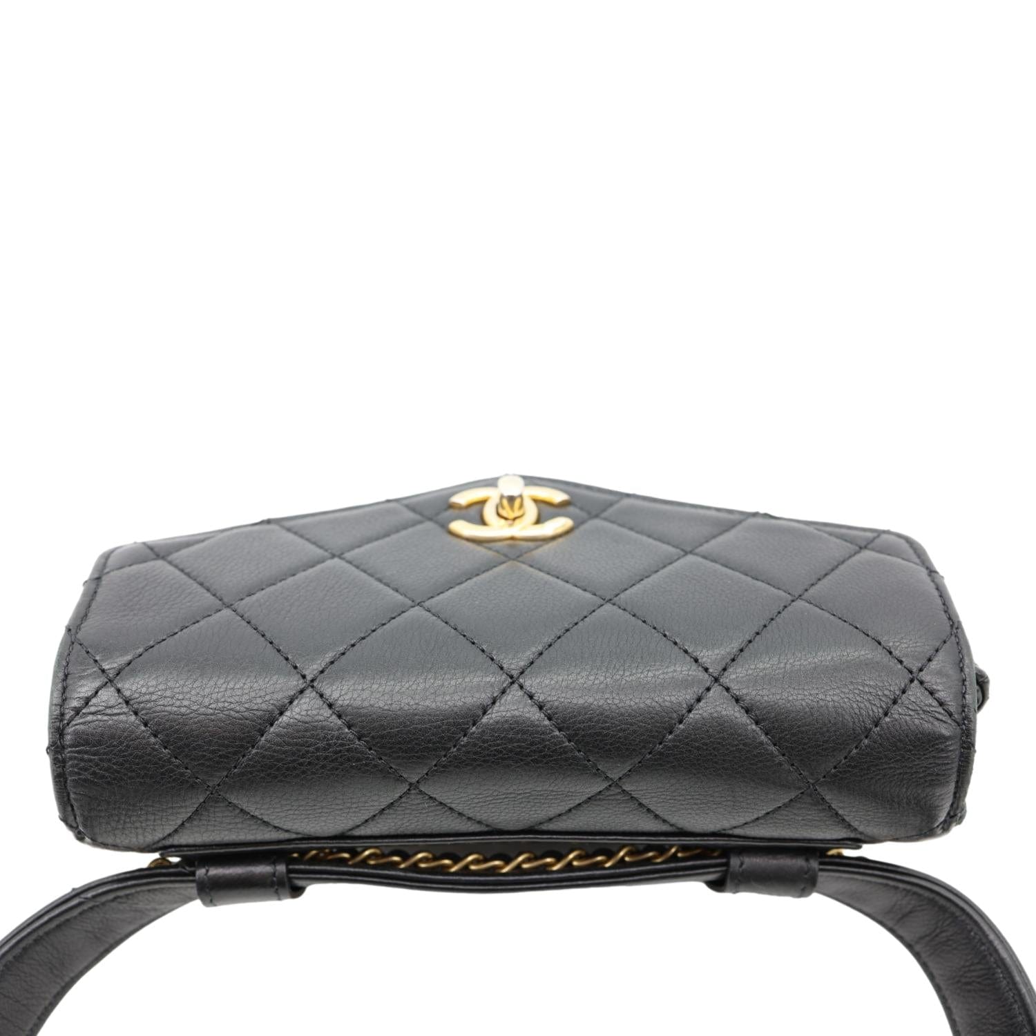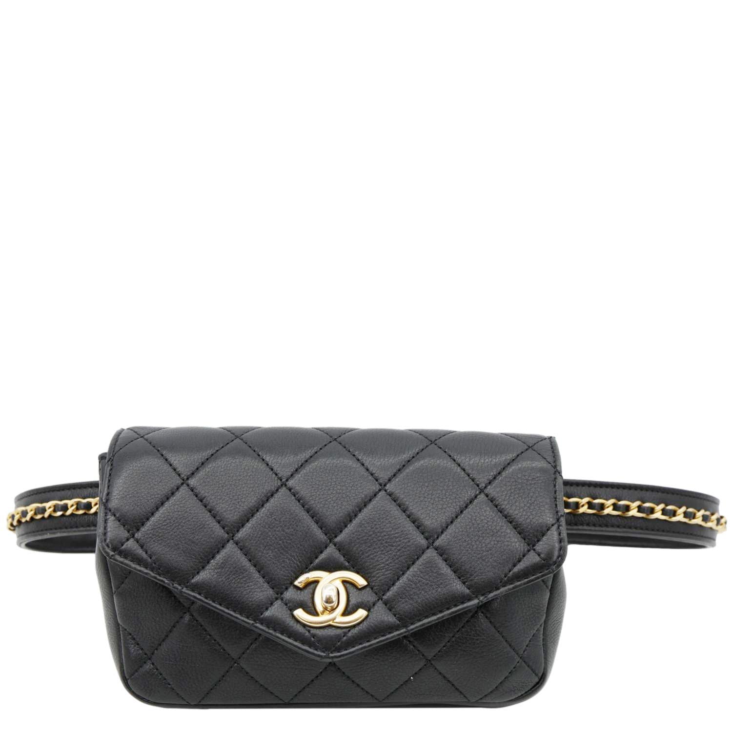 CHANEL Envelope Flap Quilted Leather Chain Belt Bag Black