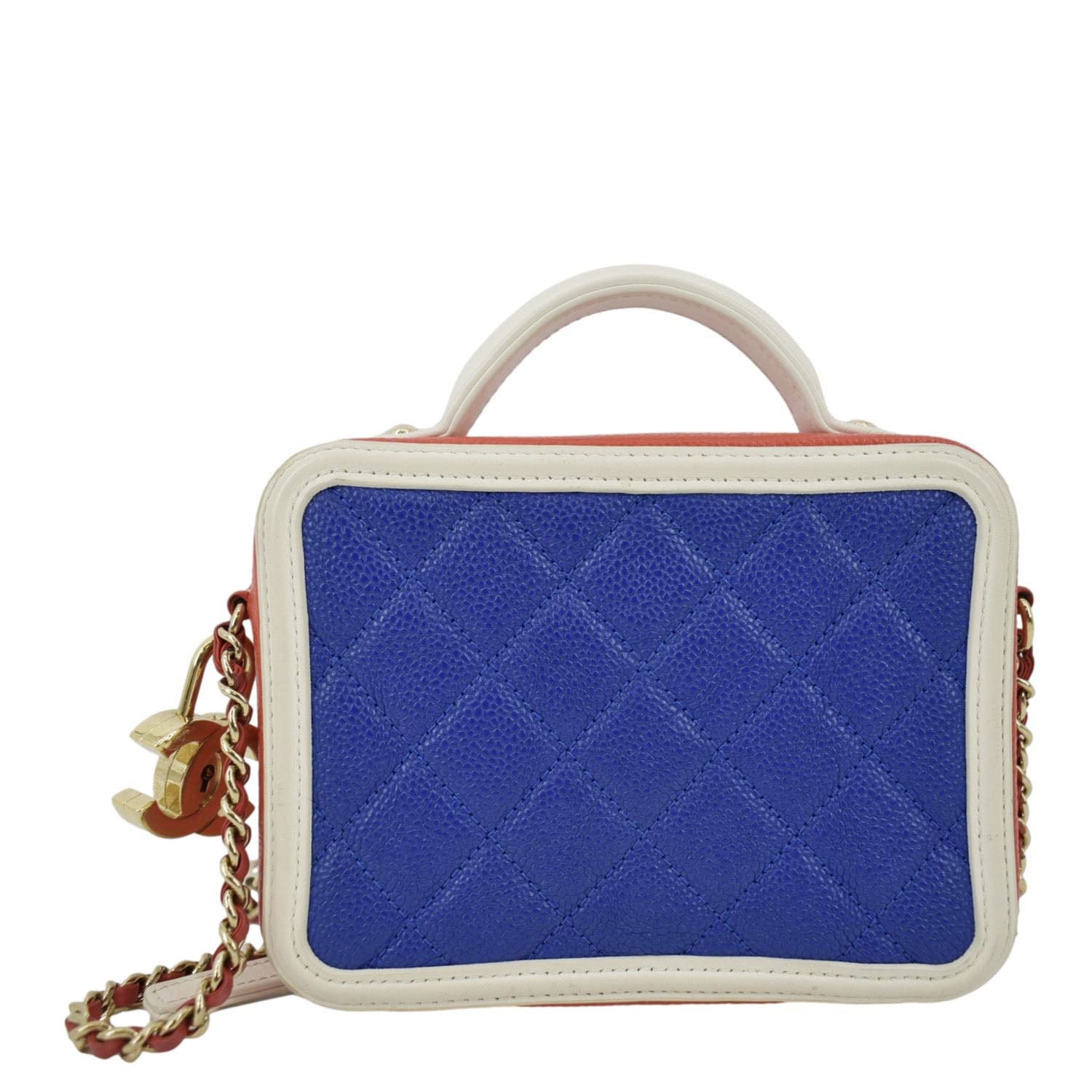 Filigree Quilted Caviar Leather Top Handle Vanity Case Blue