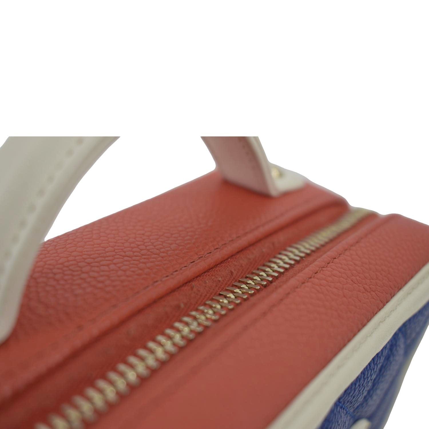Elevate your style with the CHANEL Vanity Case in a captivating Blue hue. This luxury handbag exudes timeless elegance, showcasing exquisite quilted caviar leather and the iconic CHANEL CC logo. With a convenient top handle and a detachable shoulder strap, it offers versatile carrying options.