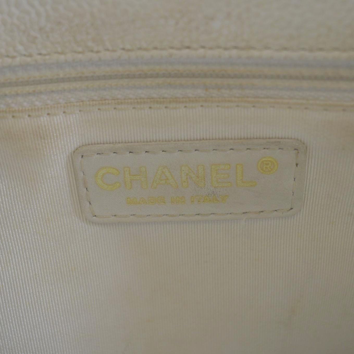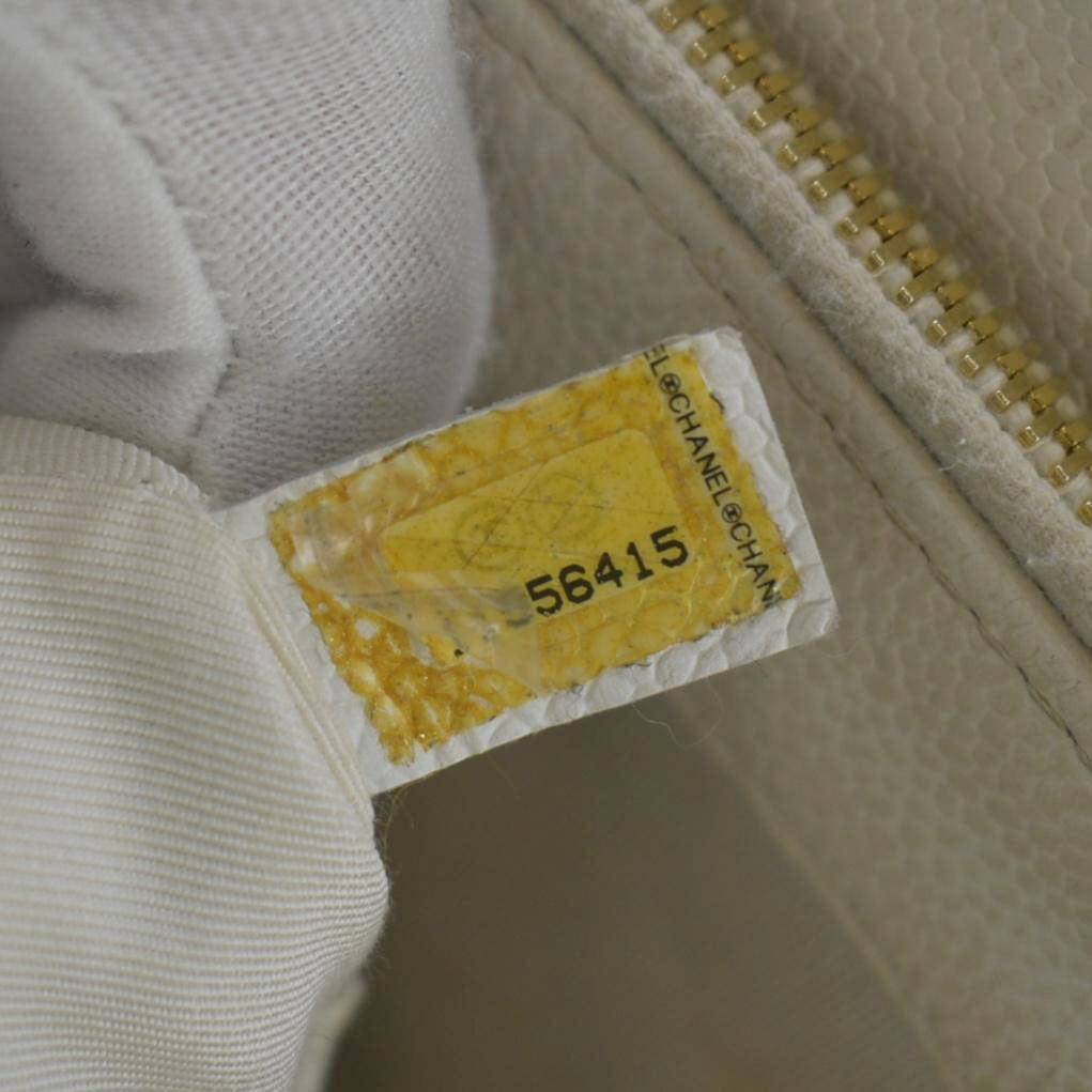 CHANEL Grand Shopping Caviar Leather Tote Bag White