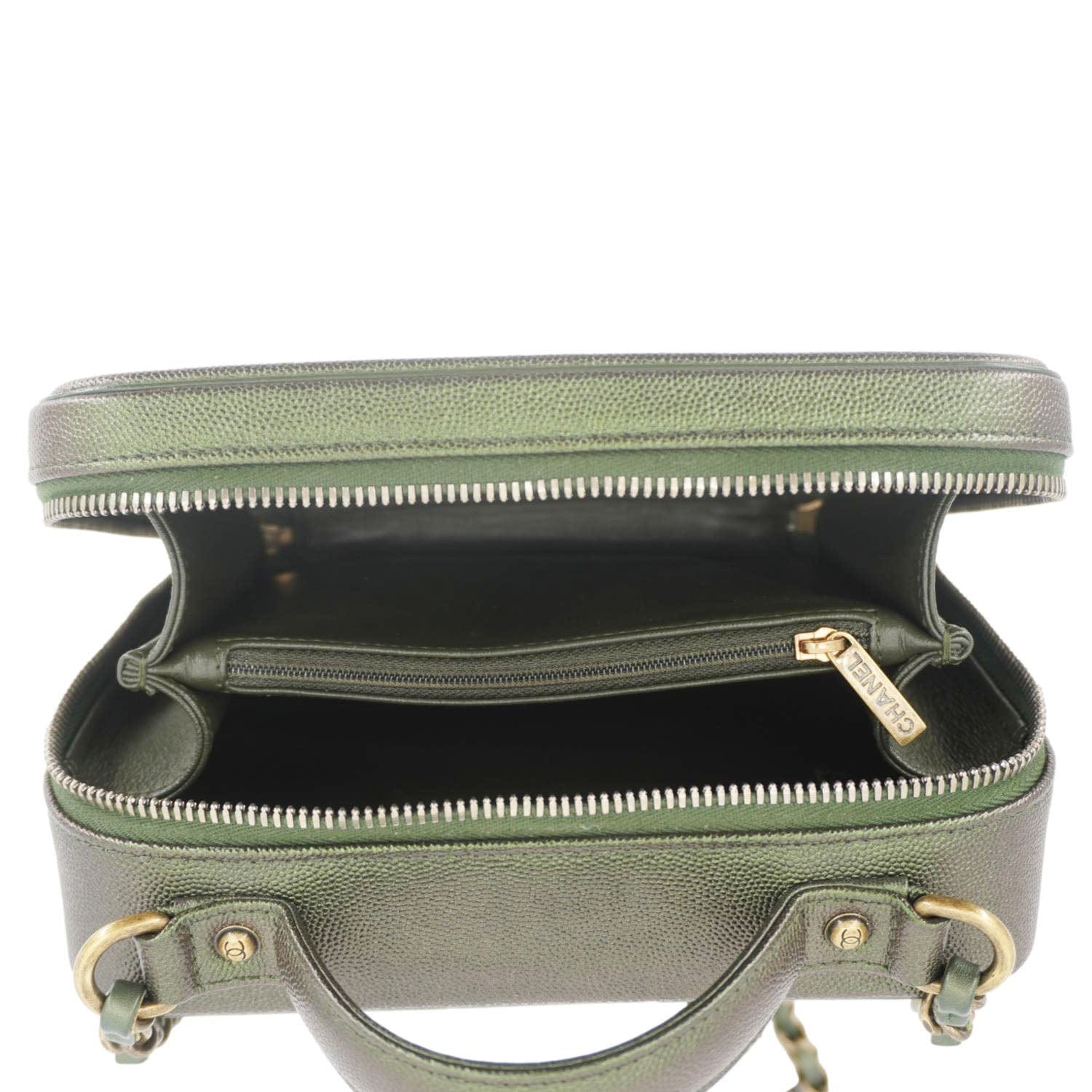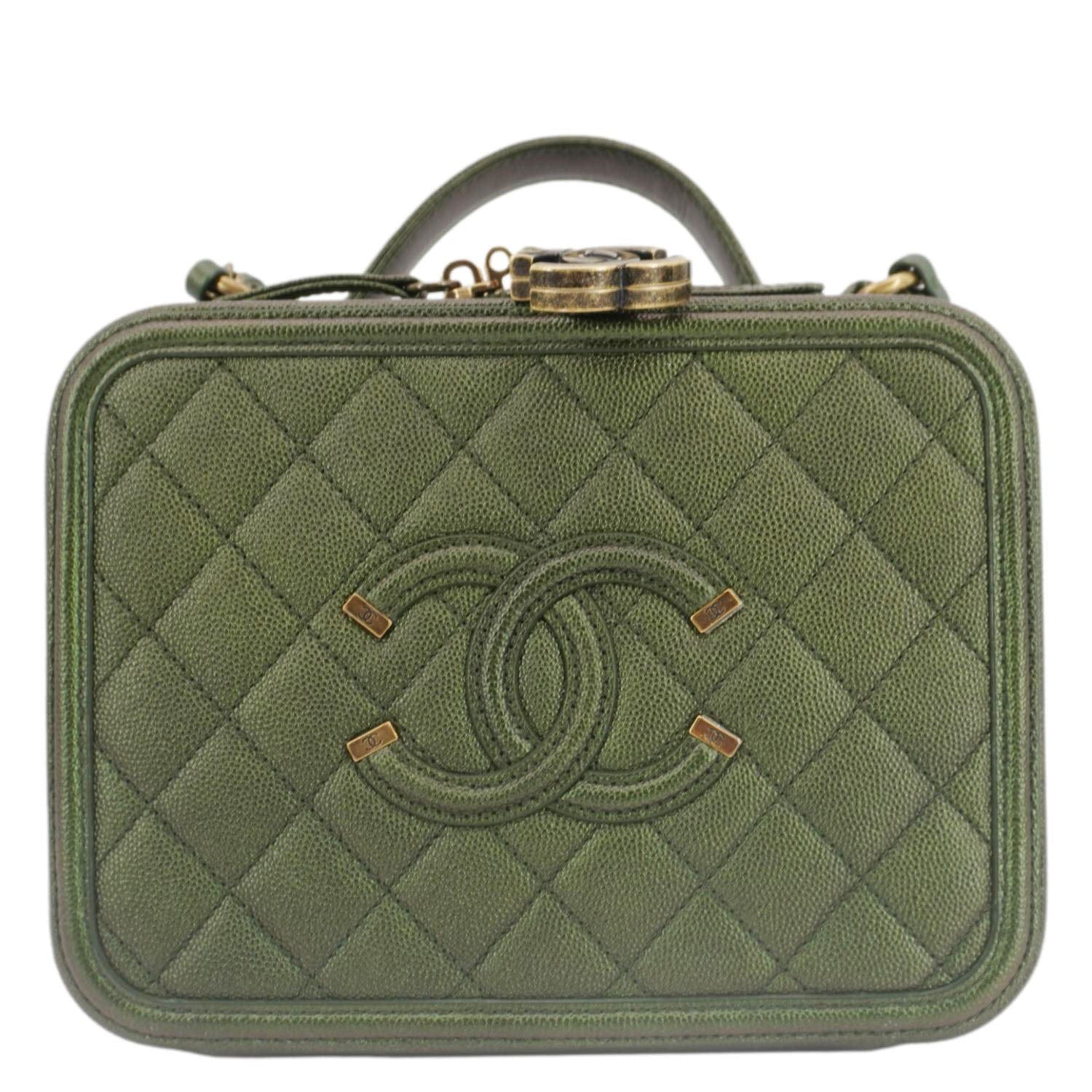 CHANEL Vanity Case Filigree CC Iridescent Quilted Caviar Leather Shoulder Bag Green