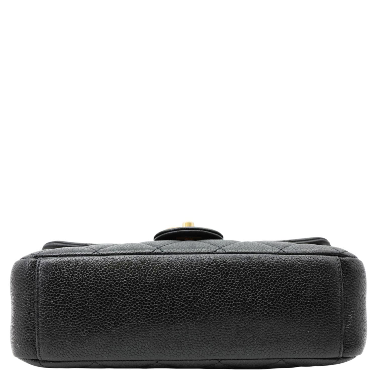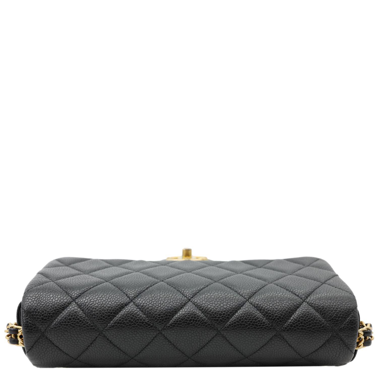 Chain Soul Flap Quilted Caviar Leather Crossbody Bag Black