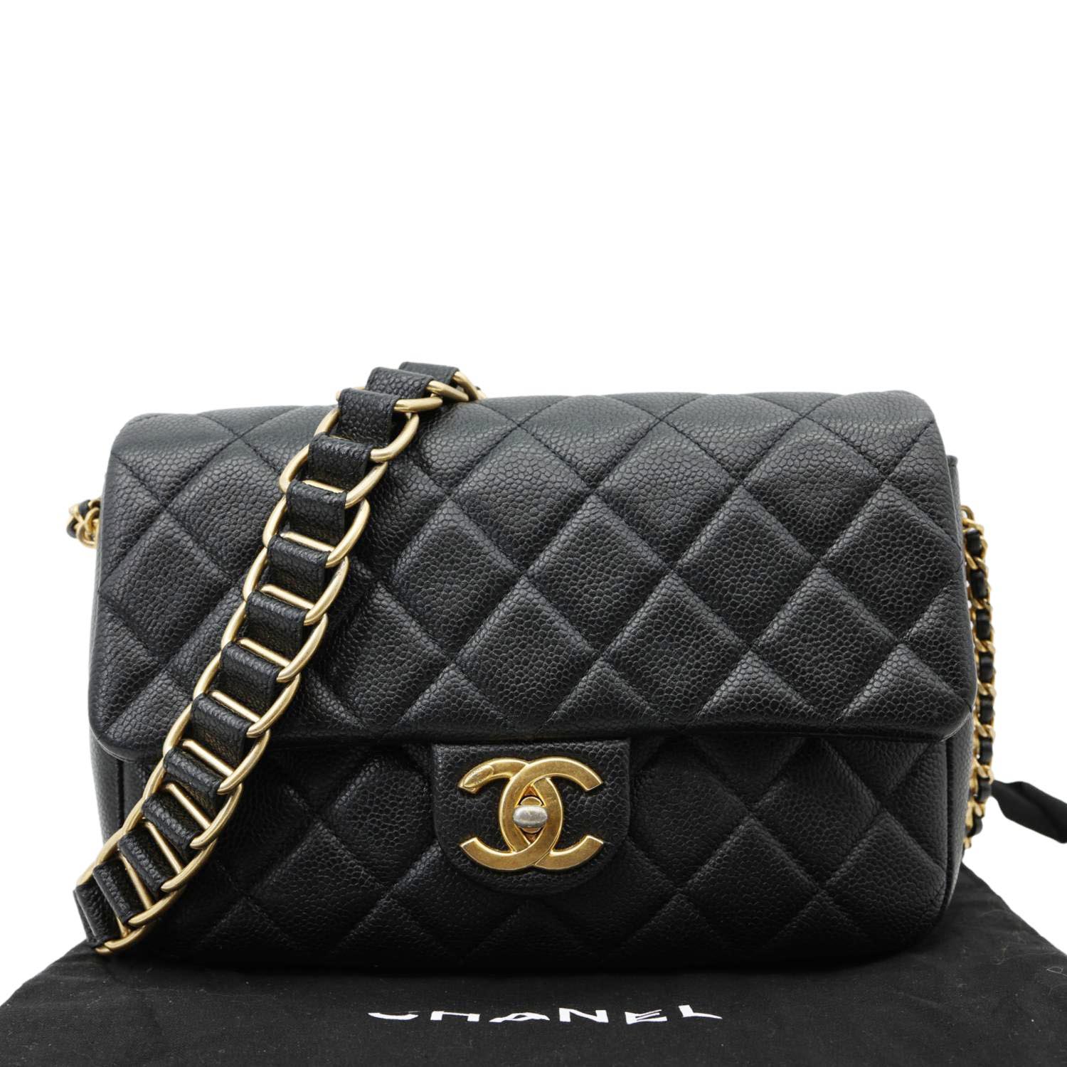 CHANEL Chain Soul Flap Quilted Caviar Leather Crossbody Bag Black