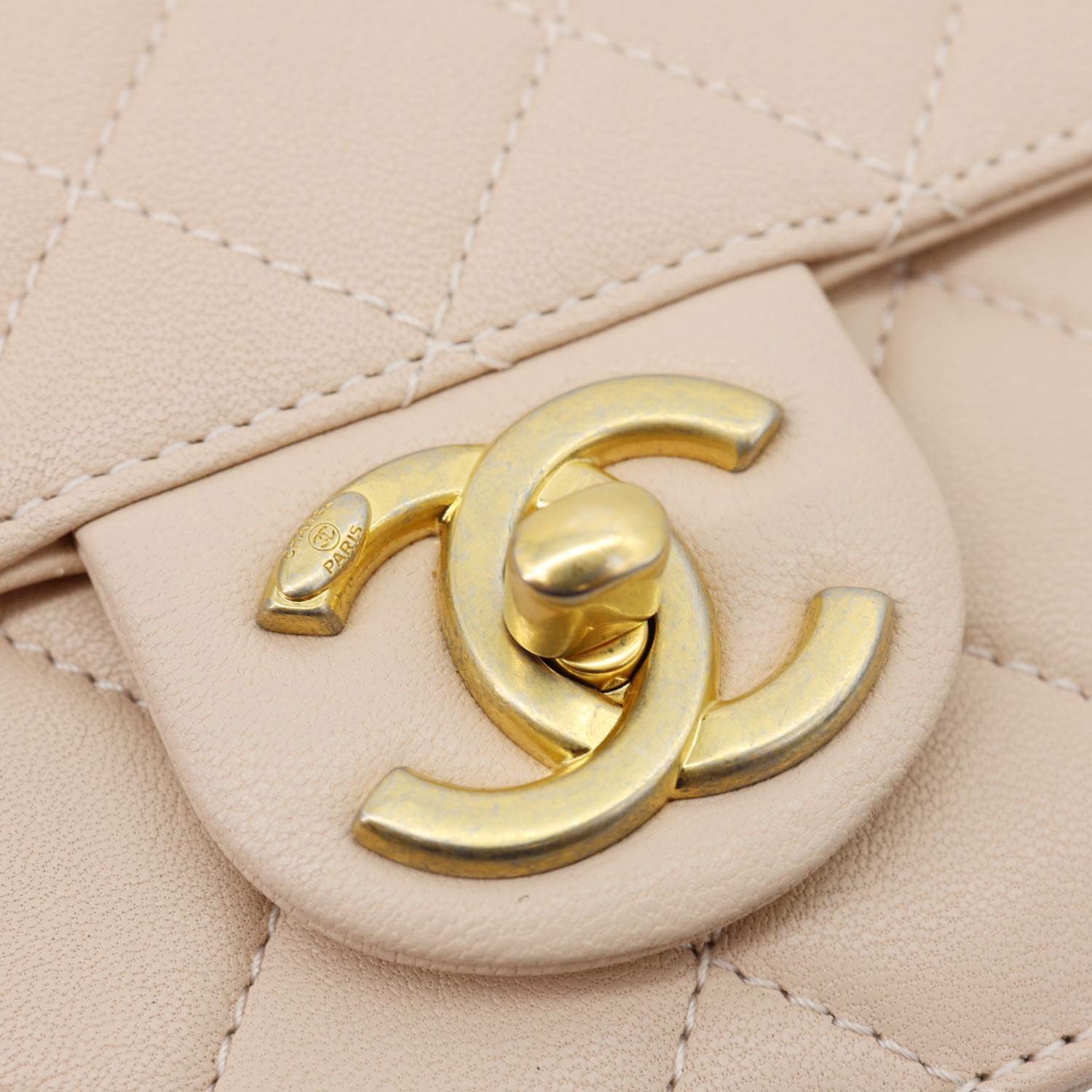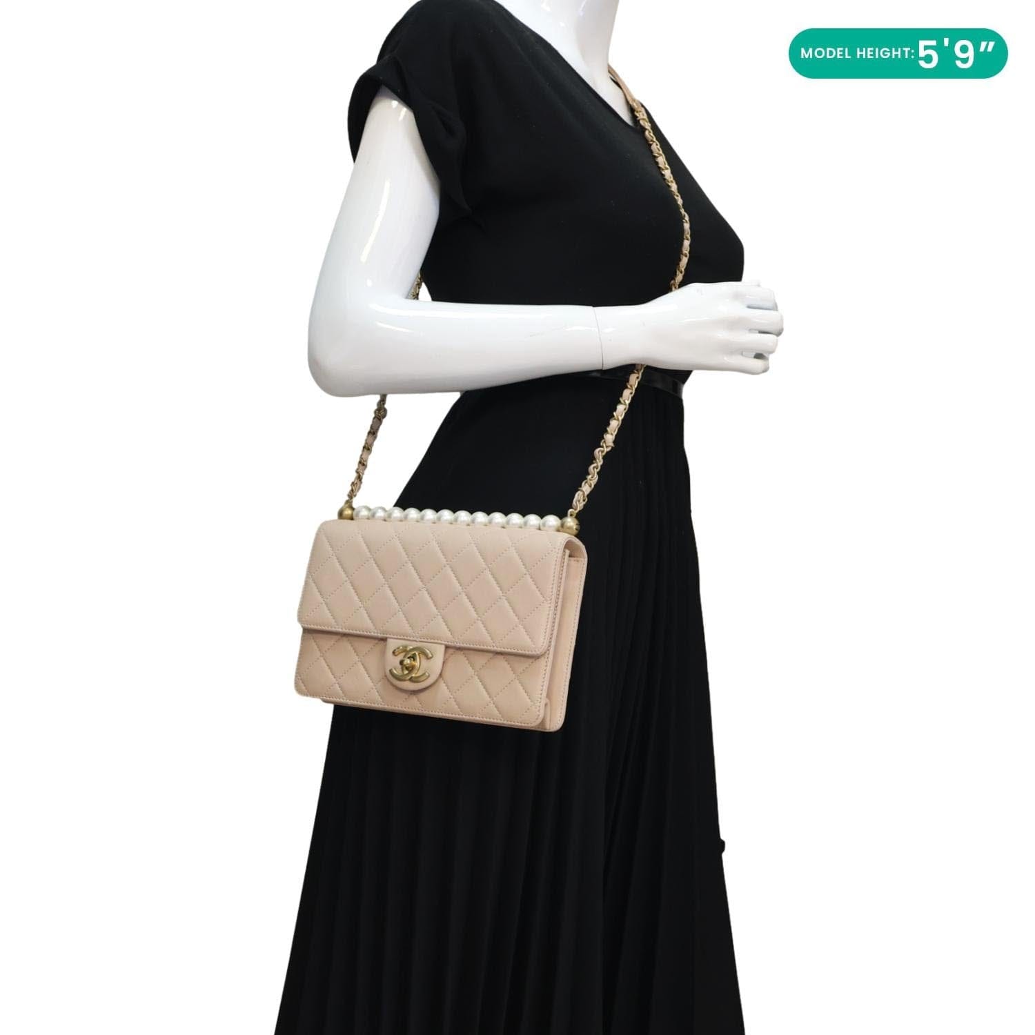 CHANEL Chic Pearls Flap Small Shoulder Bag in quilted beige leather with signature pearl accents. A refined and feminine piece, perfect for adding elegance to any look.