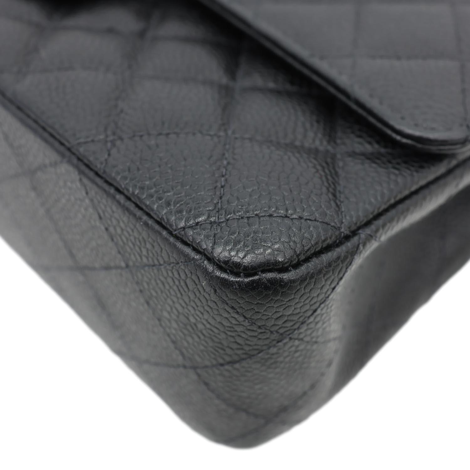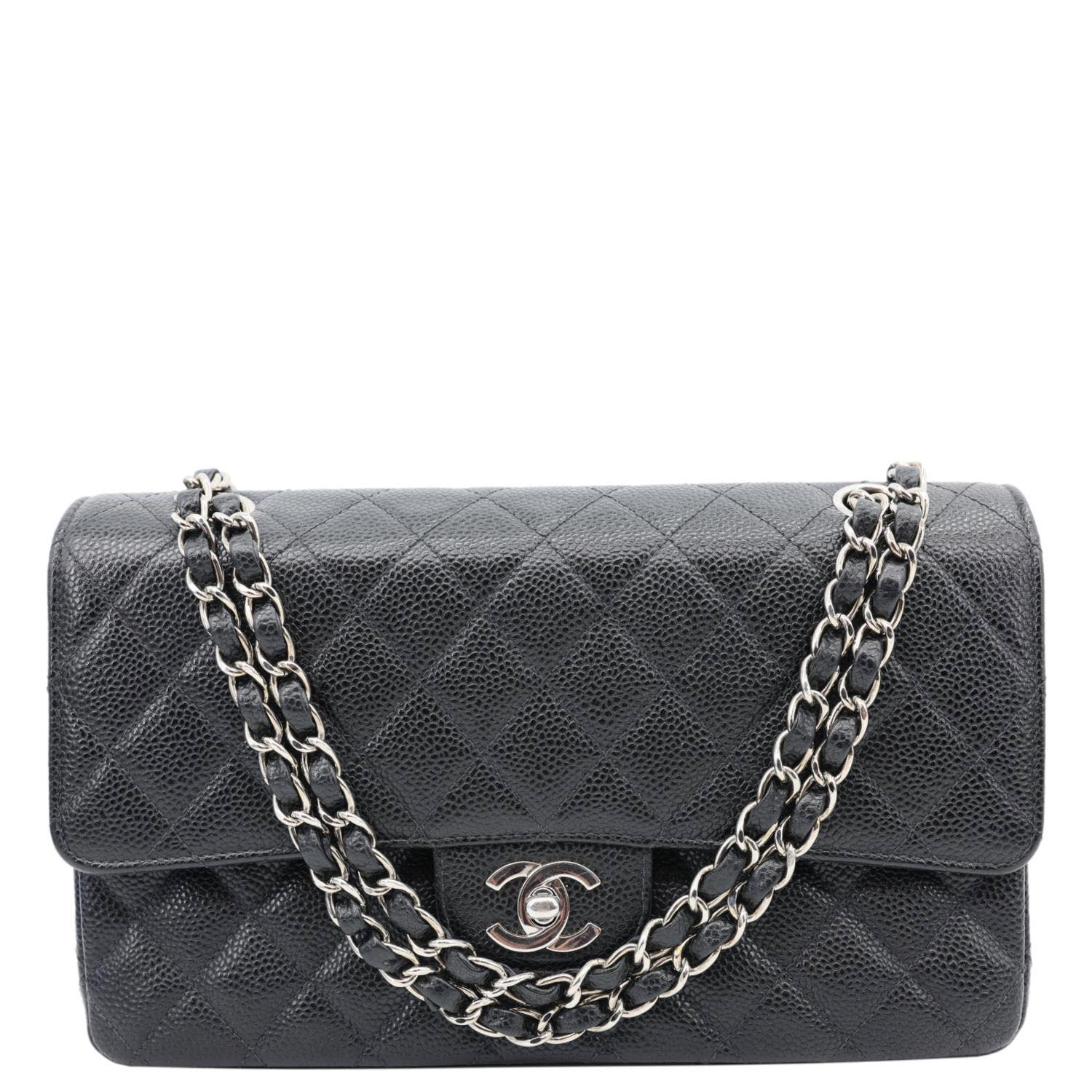 CHANEL Small Classic Flap Quilted Caviar Leather Shoulder Bag Black