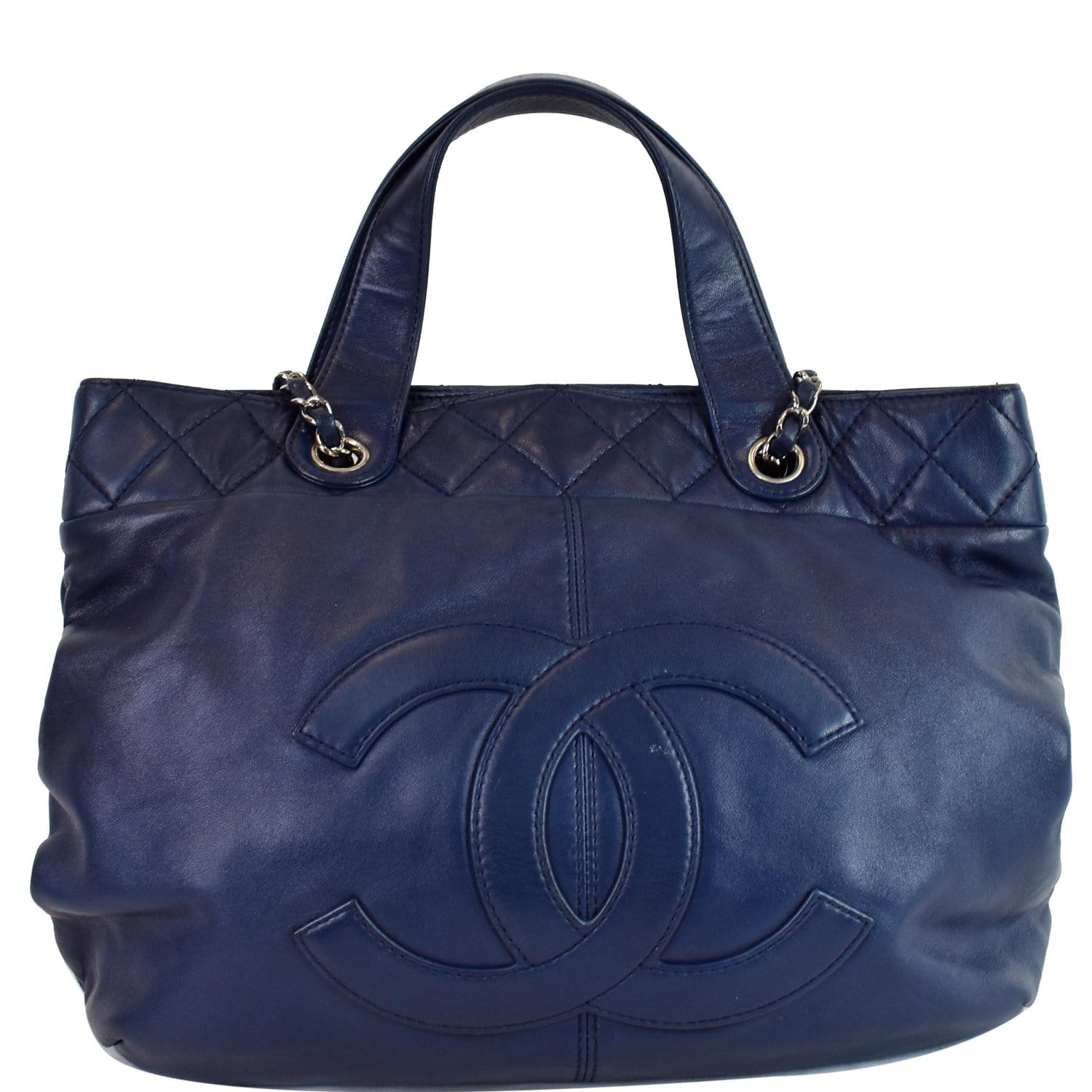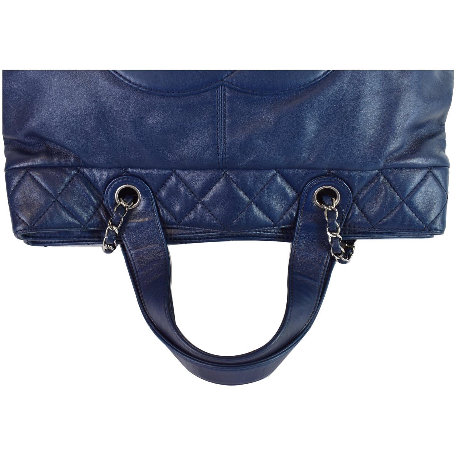 CHANEL Soft CC Shopping Leather Tote Shoulder Bag Blue