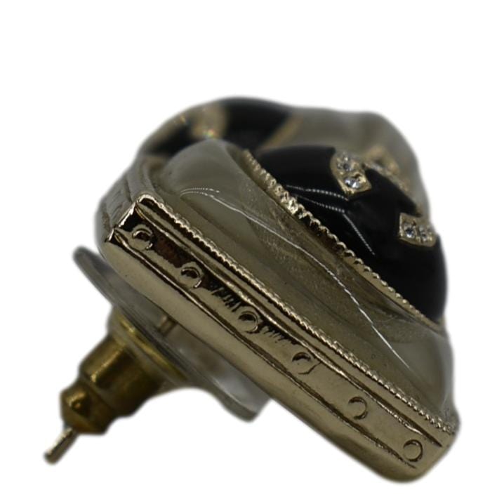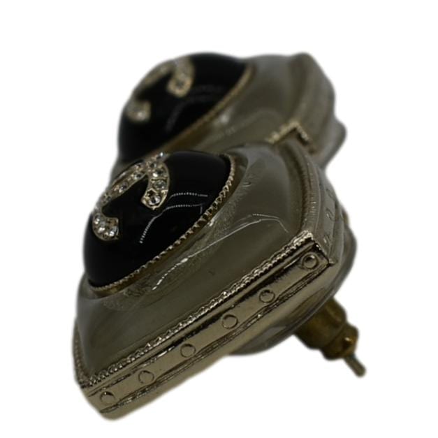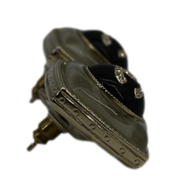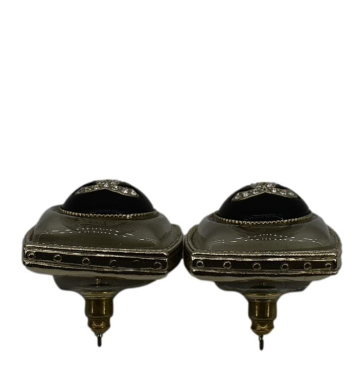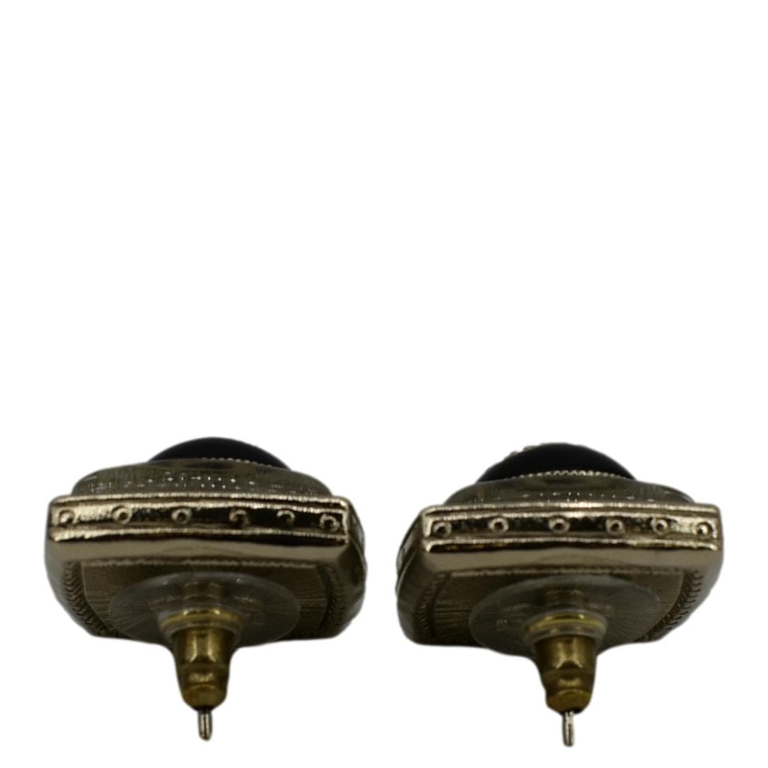 CHANEL Square Clip-on Metal Glass Pearl Strass Earrings Black