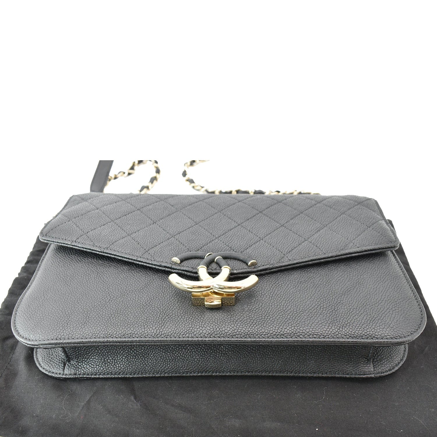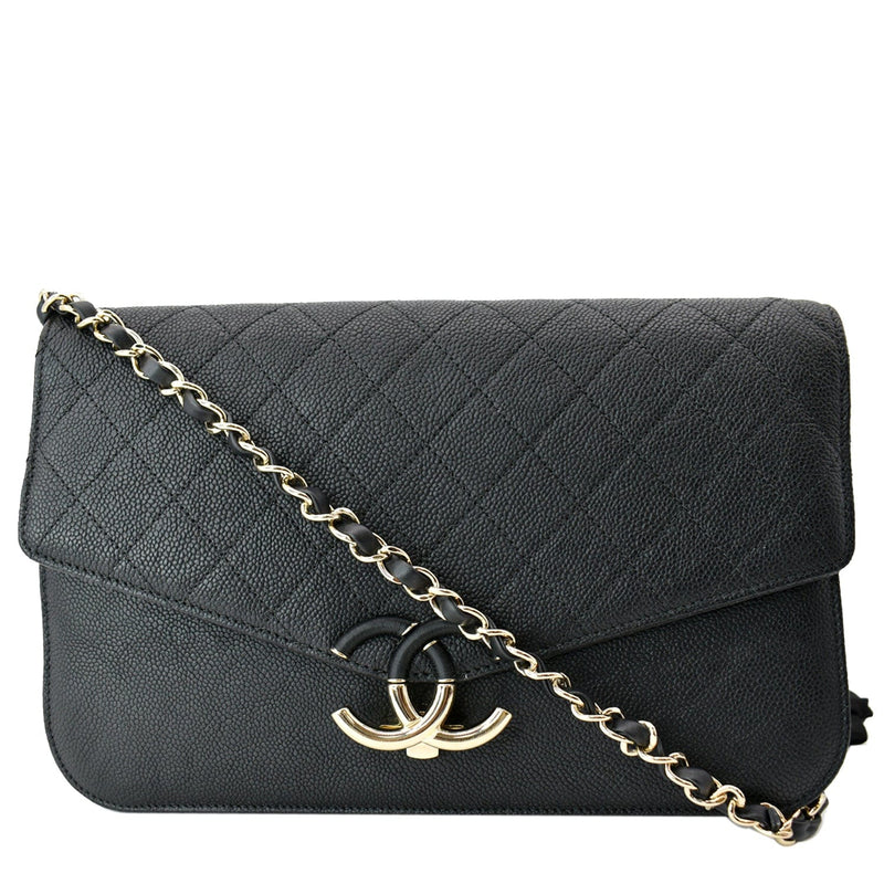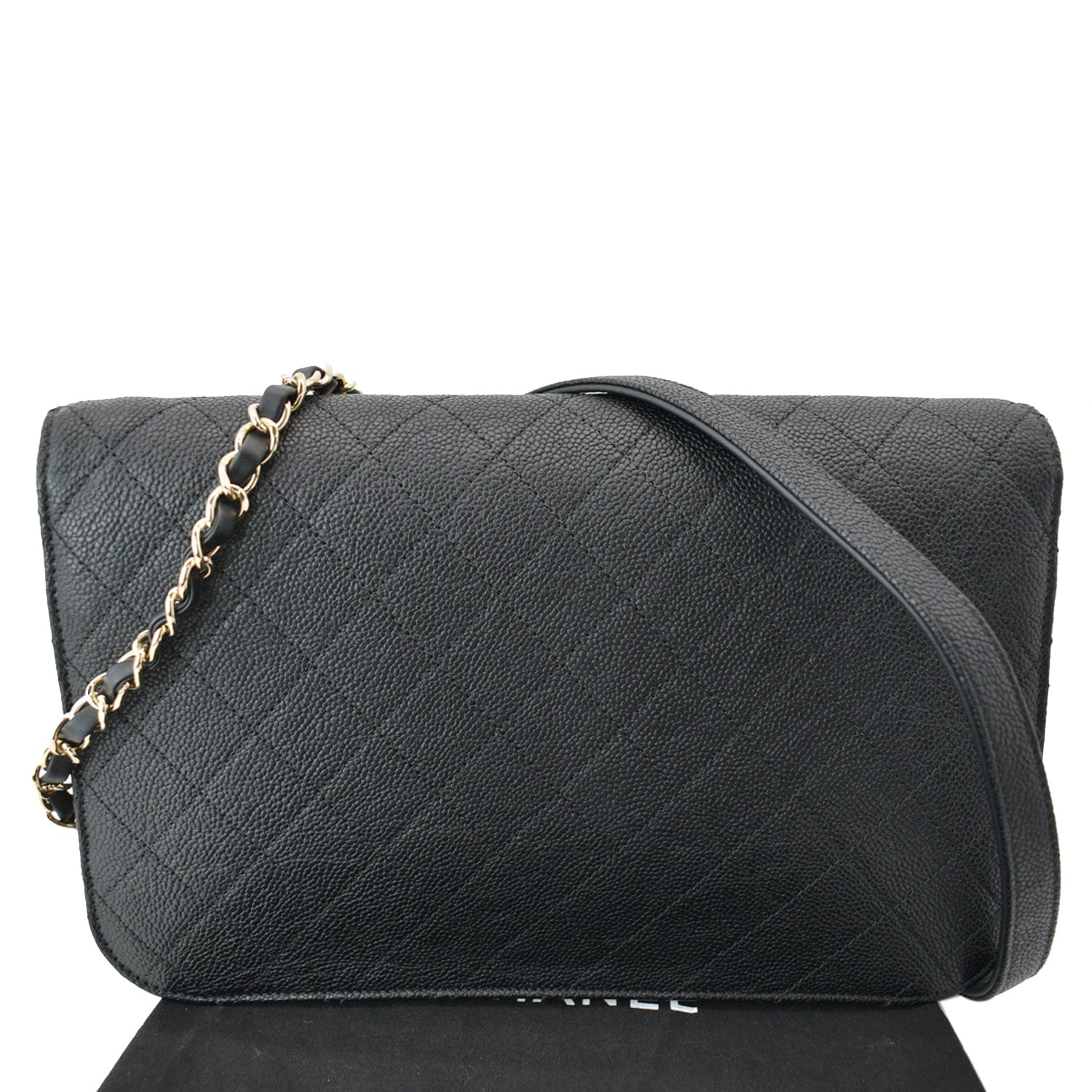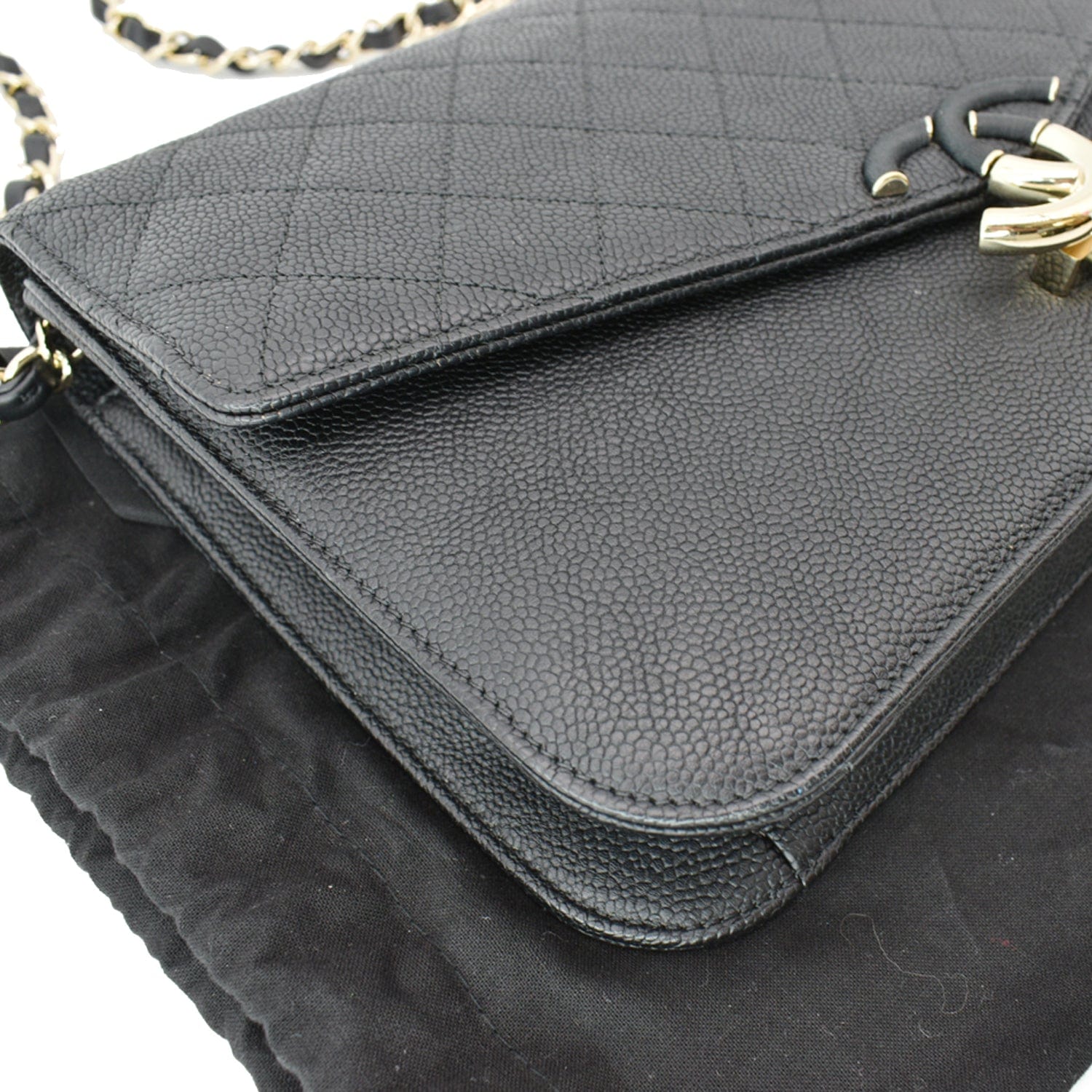 CHANEL Thread Around Caviar Leather Chain Flap Crossbody Bag Black