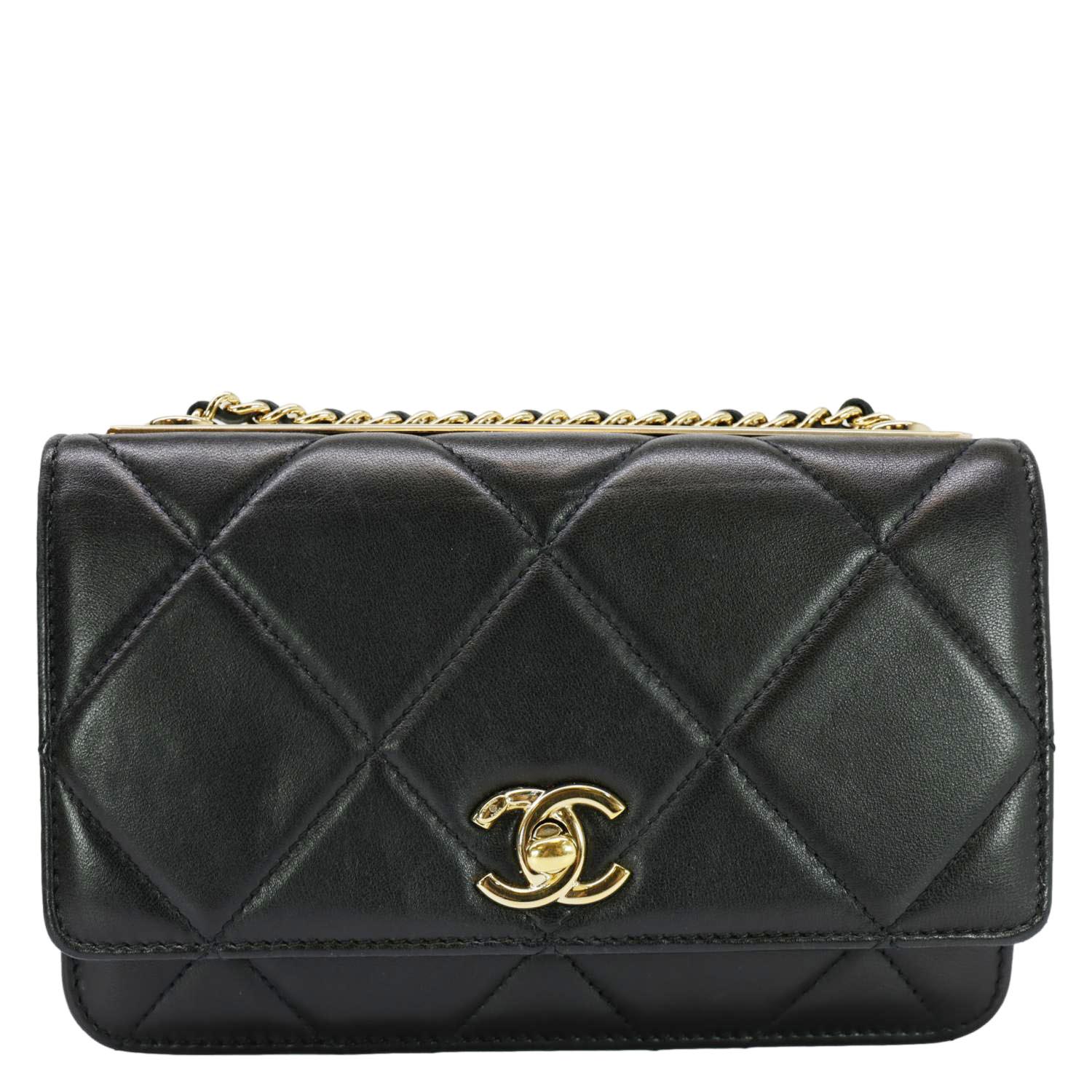 CHANEL Trendy CC Quilted Leather Wallet On Chain Crossbody Bag Black