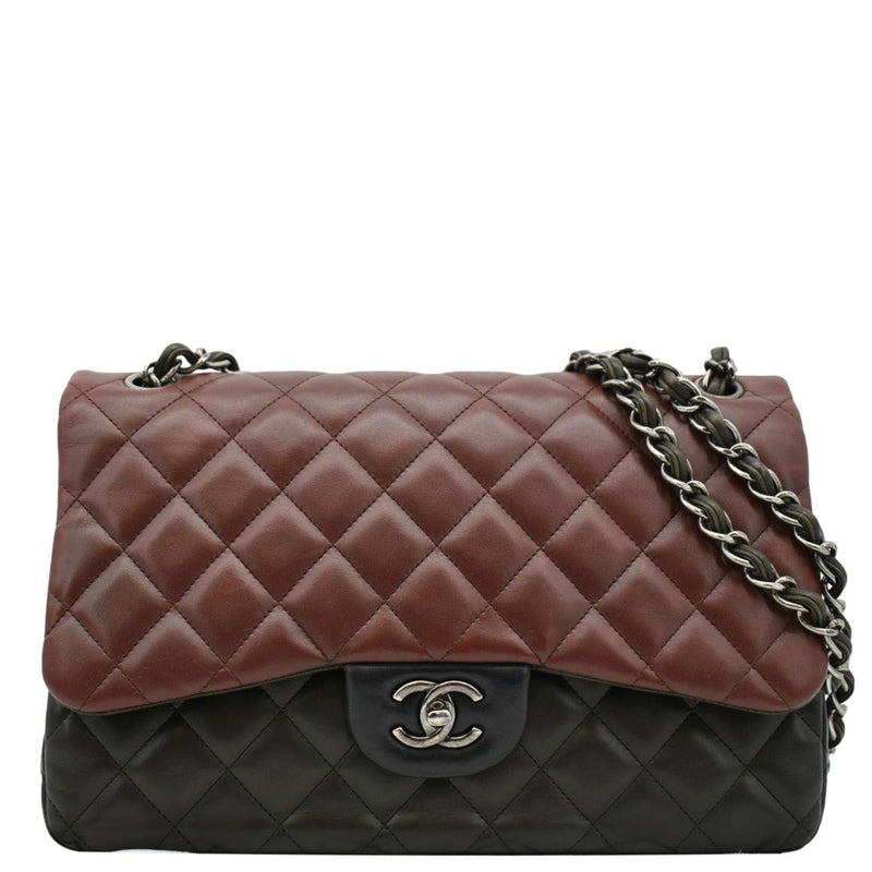 CHANEL Classic Double Flap Medium Quilted Leather Crossbody Tricolor