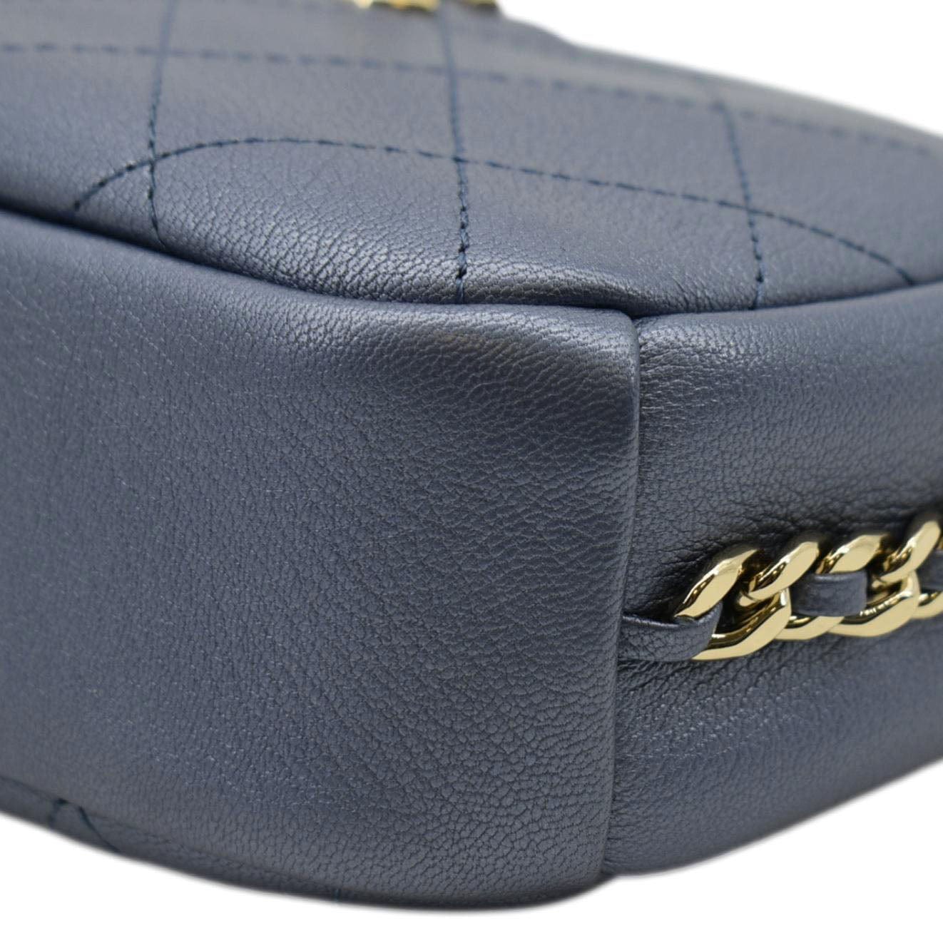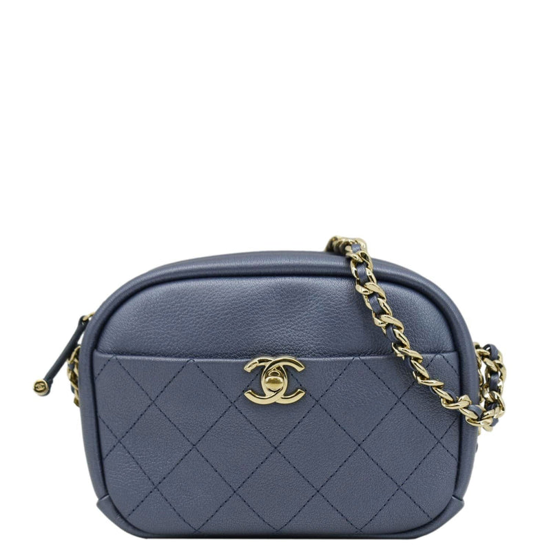 CHANEL Casual Trip Camera Small Metallic Leather Crossbody Bag Blue