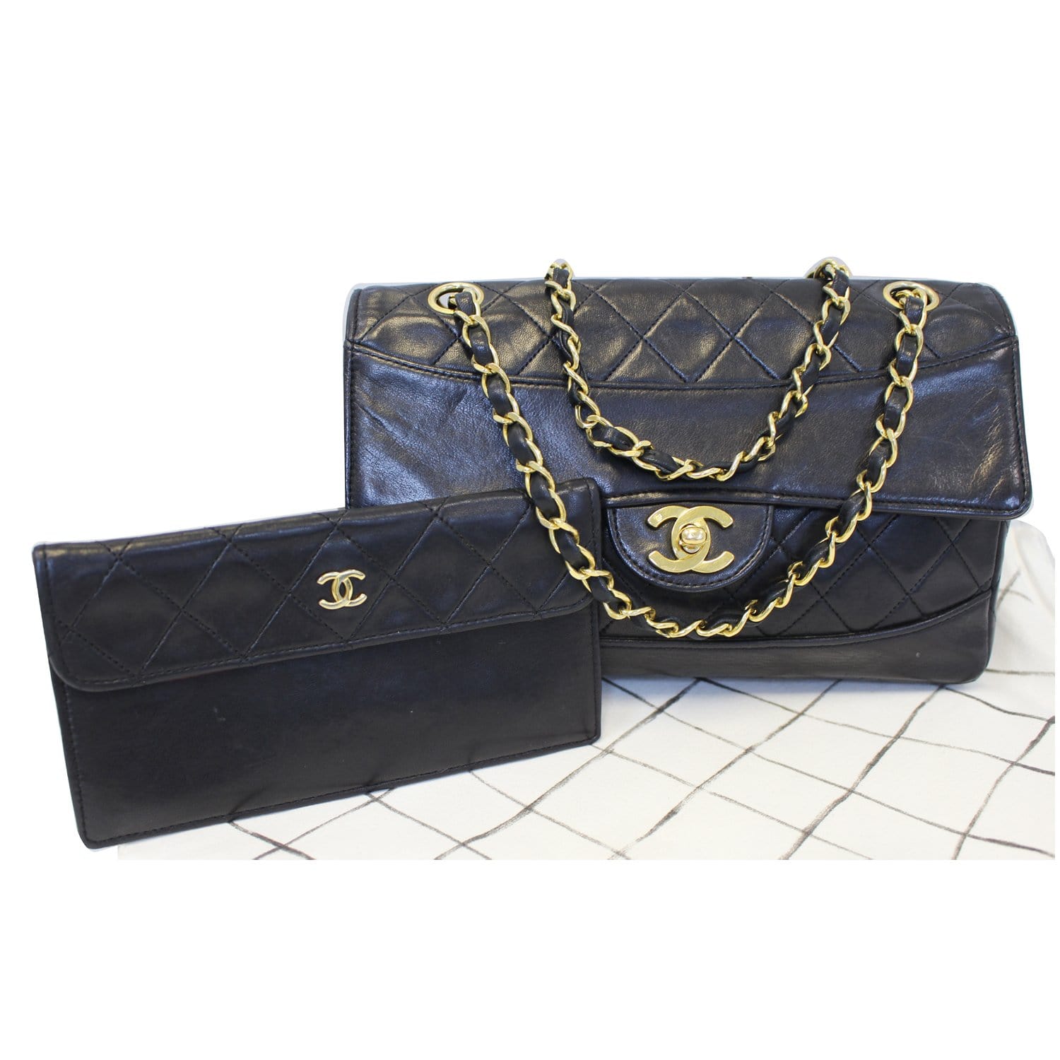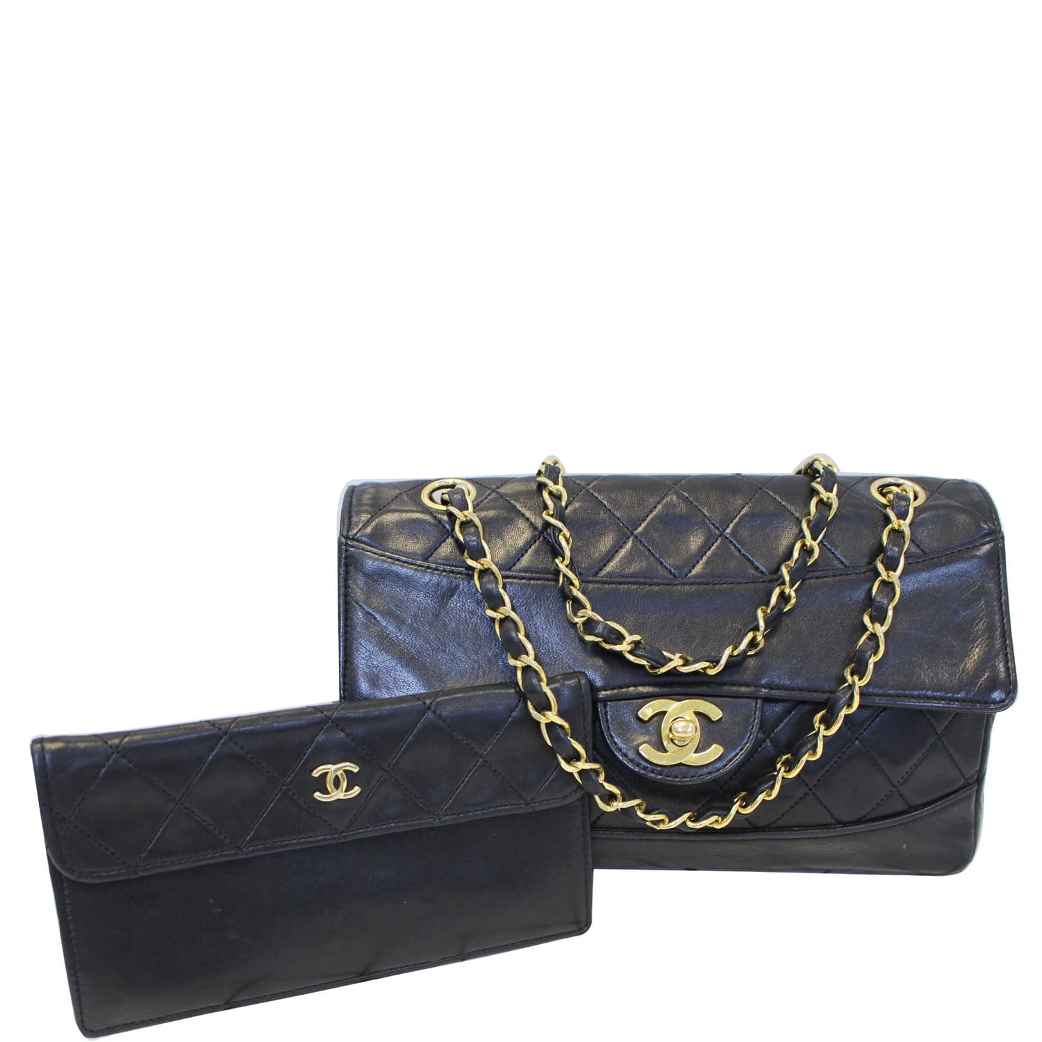 CHANEL Vintage Quilted Lambskin Leather Line Flap Bag Black