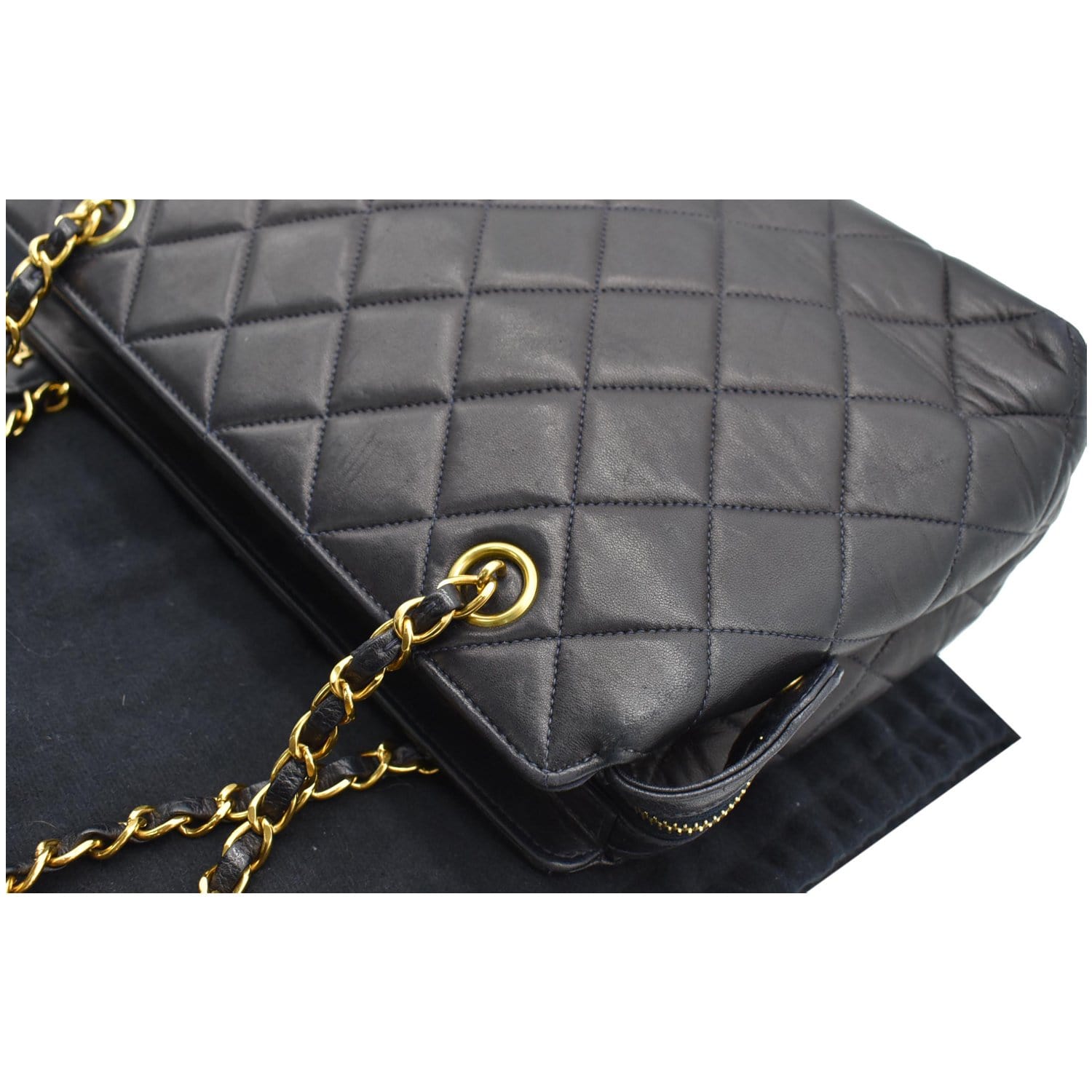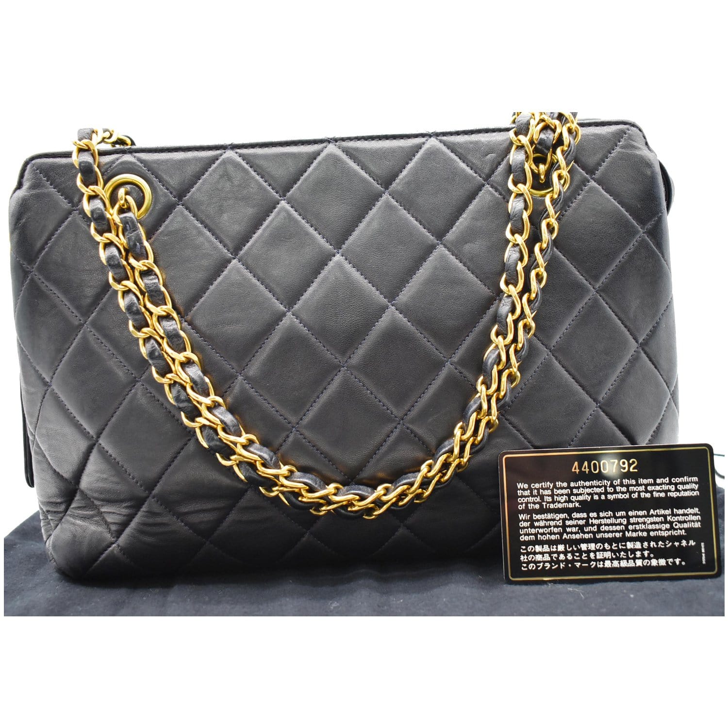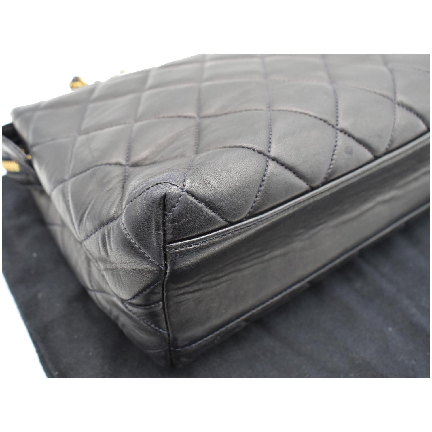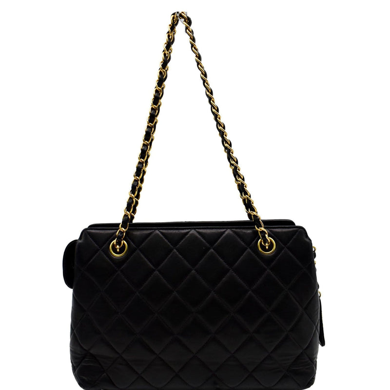 CHANEL Vintage Quilted Leather Chain Handle Tote Bag Black