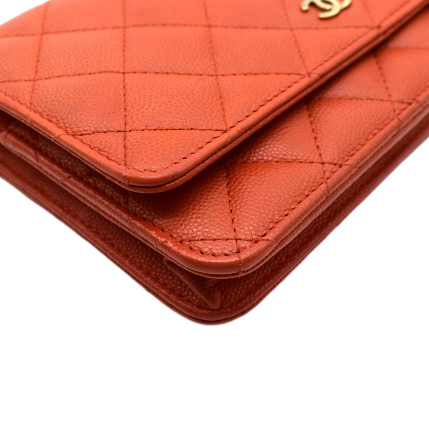 WOC Quilted Caviar Leather Crossbody Wallet Red Orange