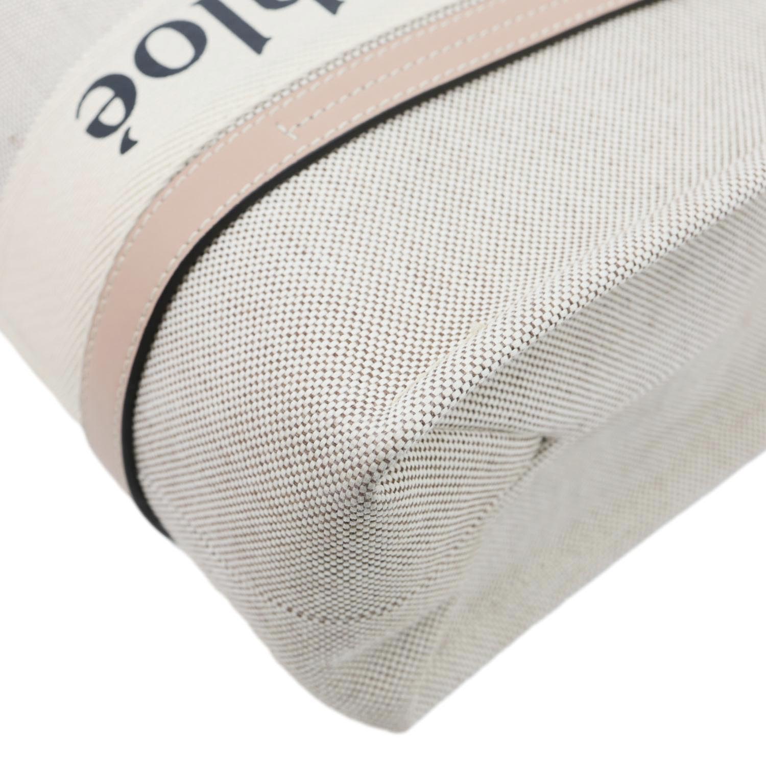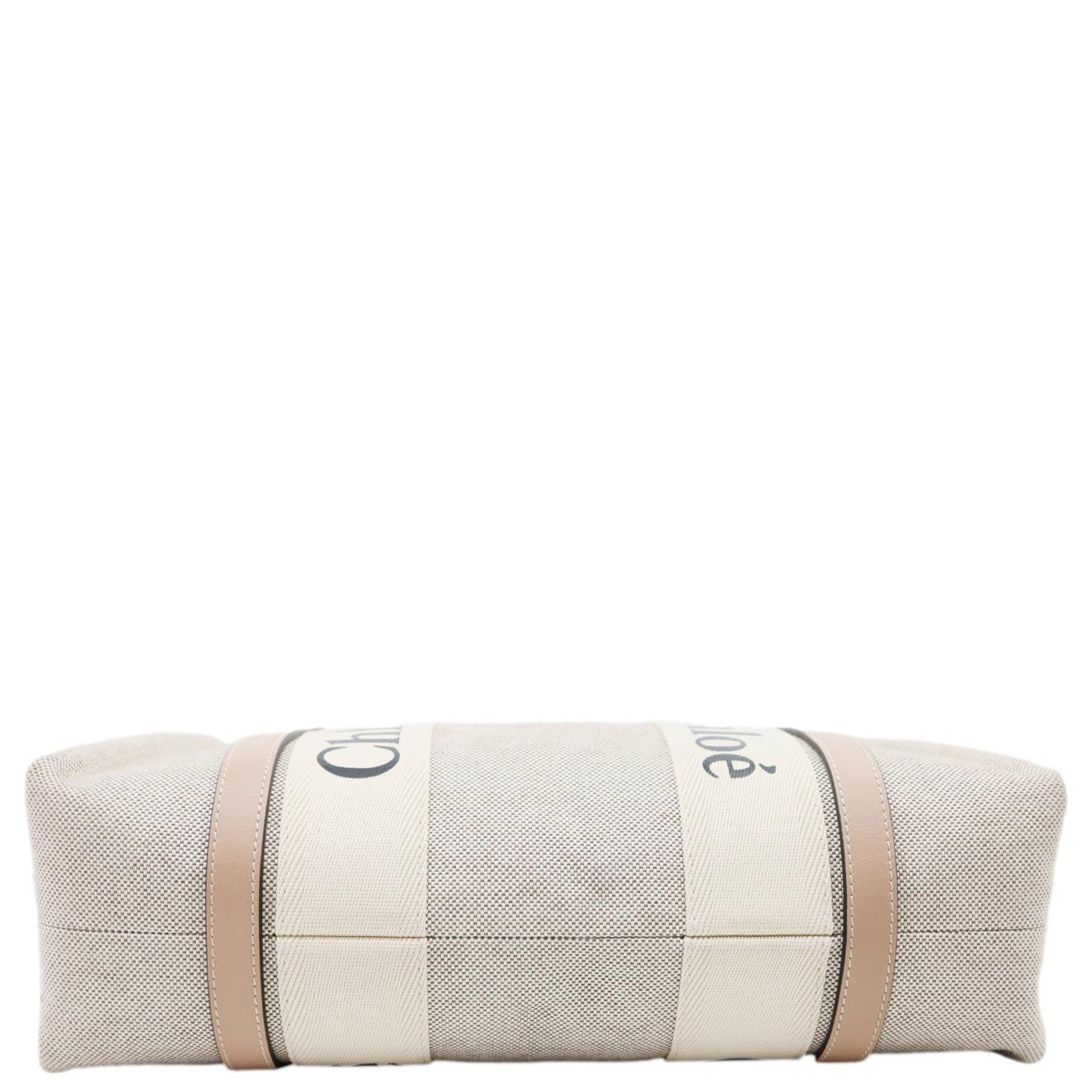 CHLOE Woody Linen Canvas Tote Bag Beige
