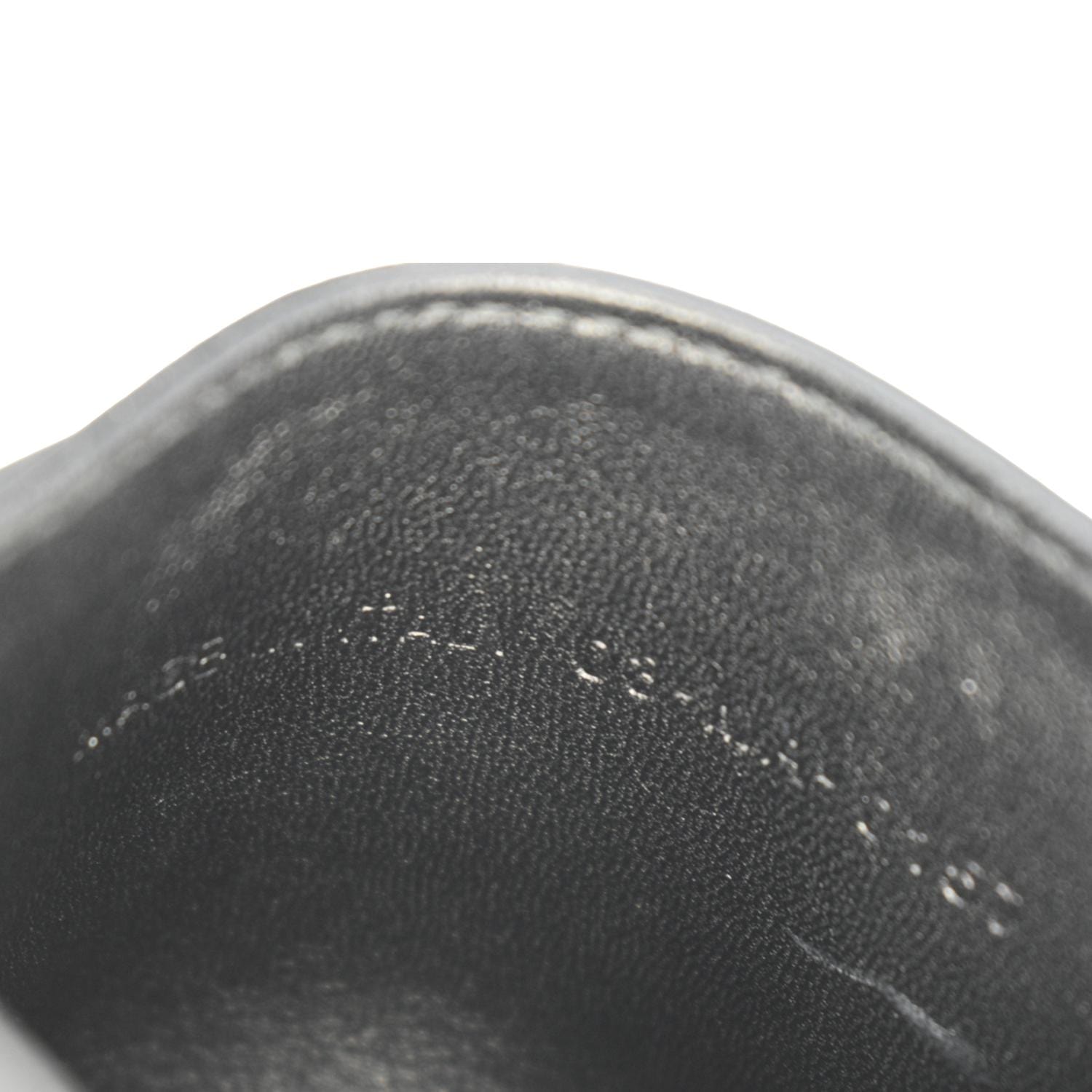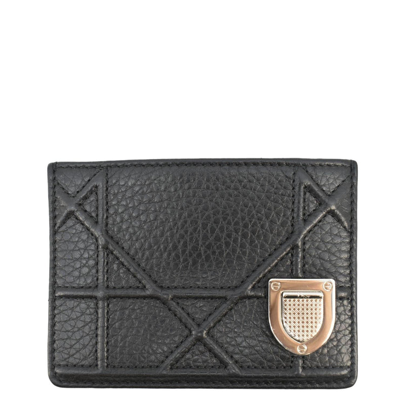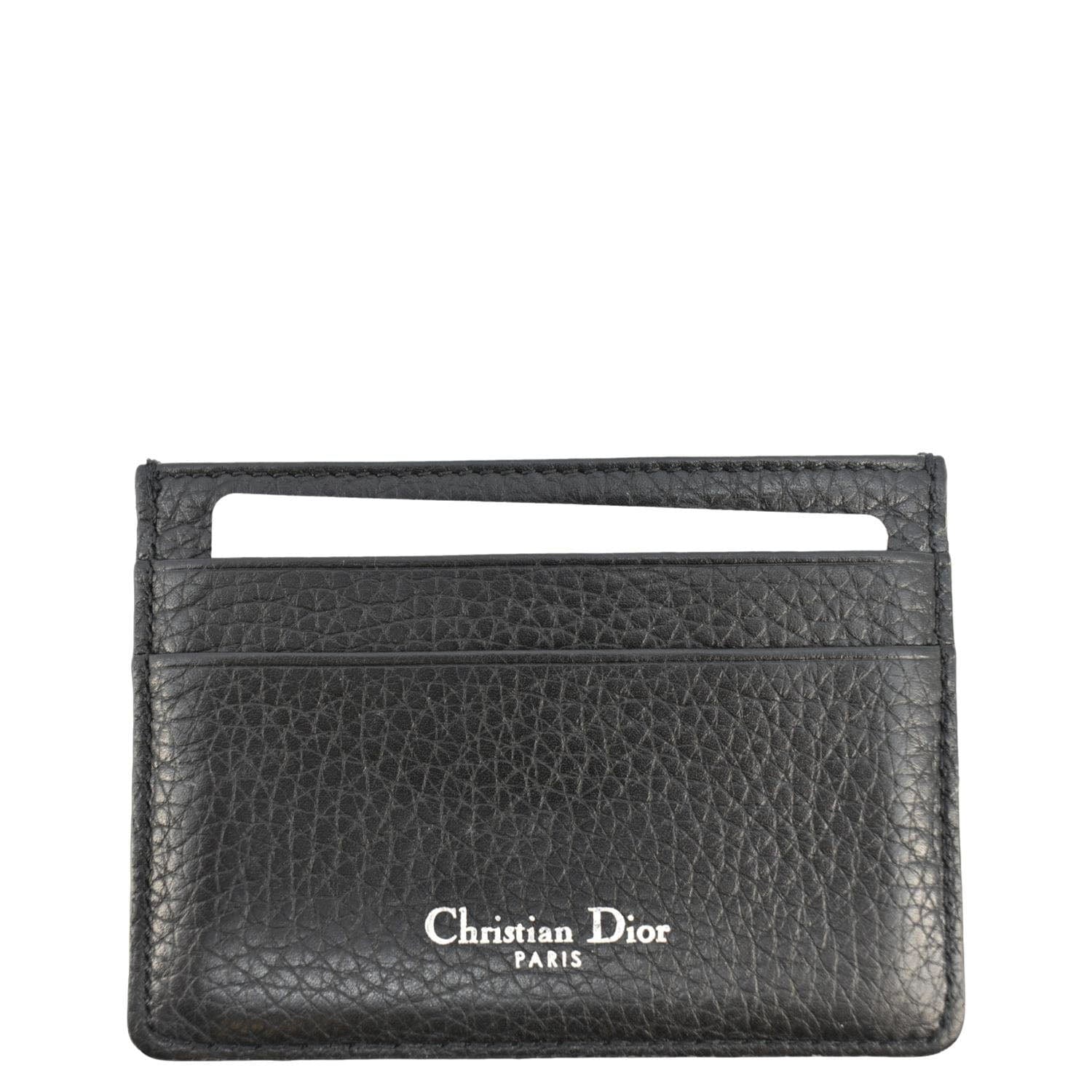 The Christian Dior Diorama Card Holder in black leather features the signature Diorama pattern with sleek metallic details. Compact and elegant, it's ideal for carrying essential cards with a touch of sophistication.