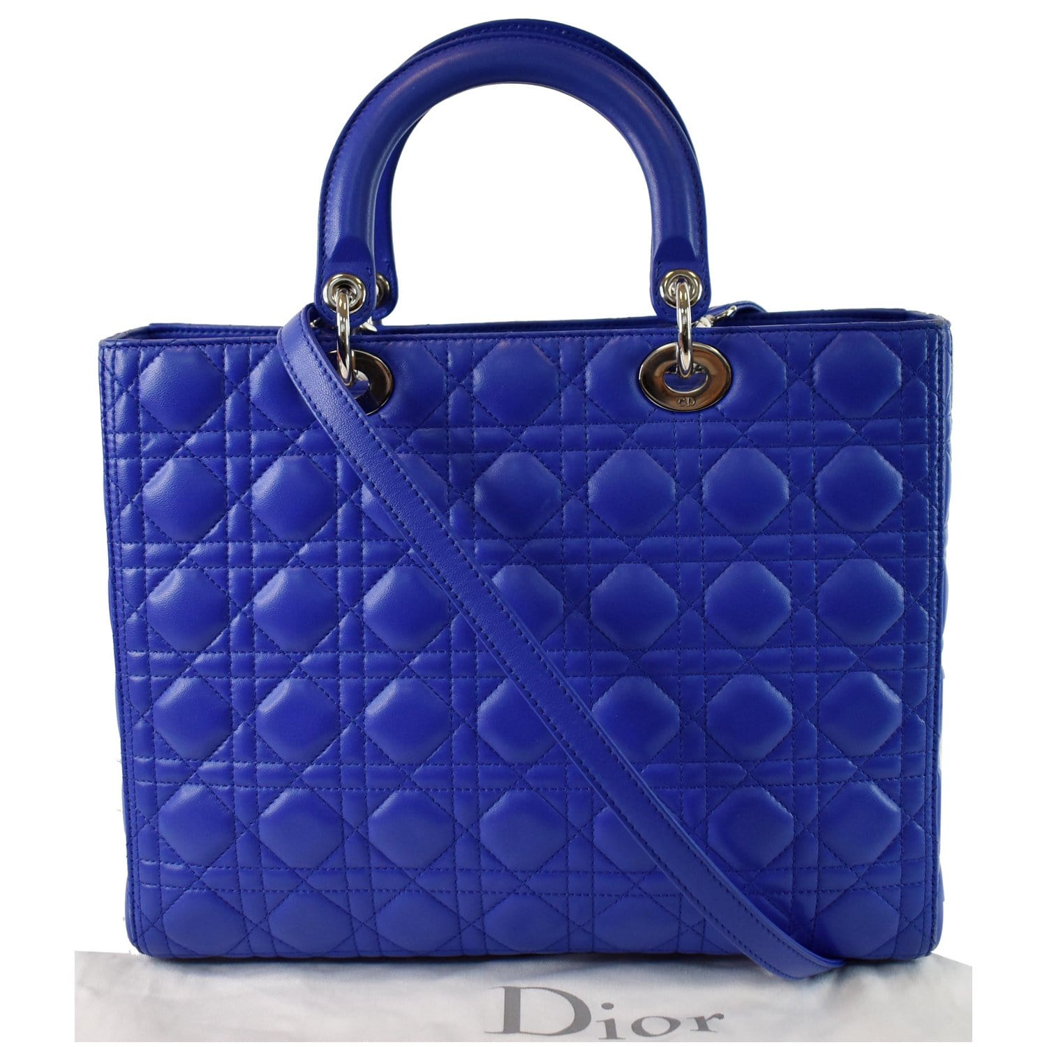 Large Lady Dior Lambskin Leather Shoulder Bag Blue