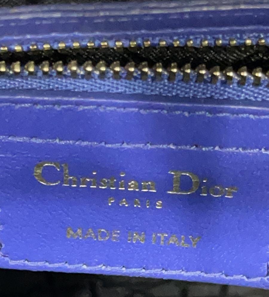 CHRISTIAN DIOR Large Lady Dior Lambskin Leather Shoulder Bag Blue