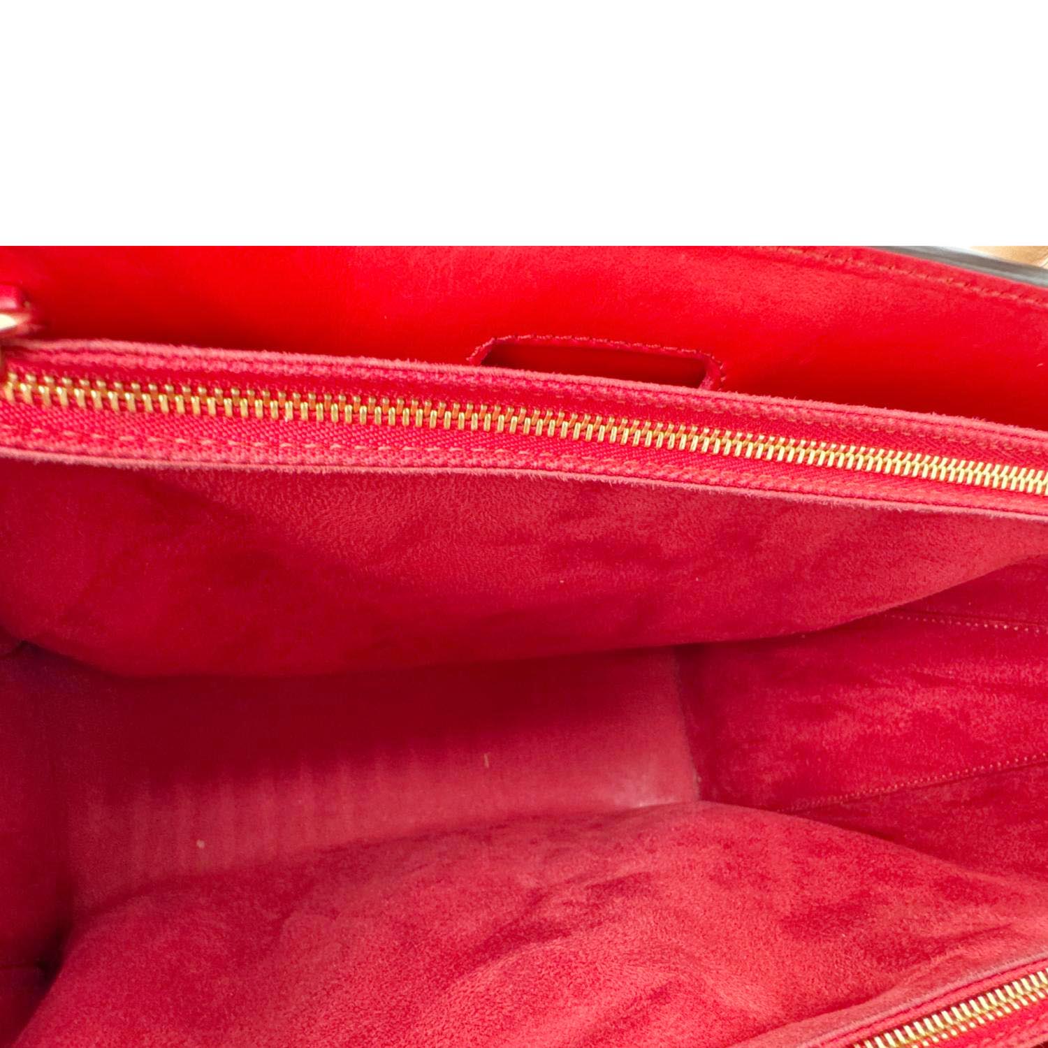 Good - The Item shows signs of use, including rubbed and tanned handles, and has some dirt marks on the interior. Its gold color hardware has light scratches. There is no unpleasant smell within the item.