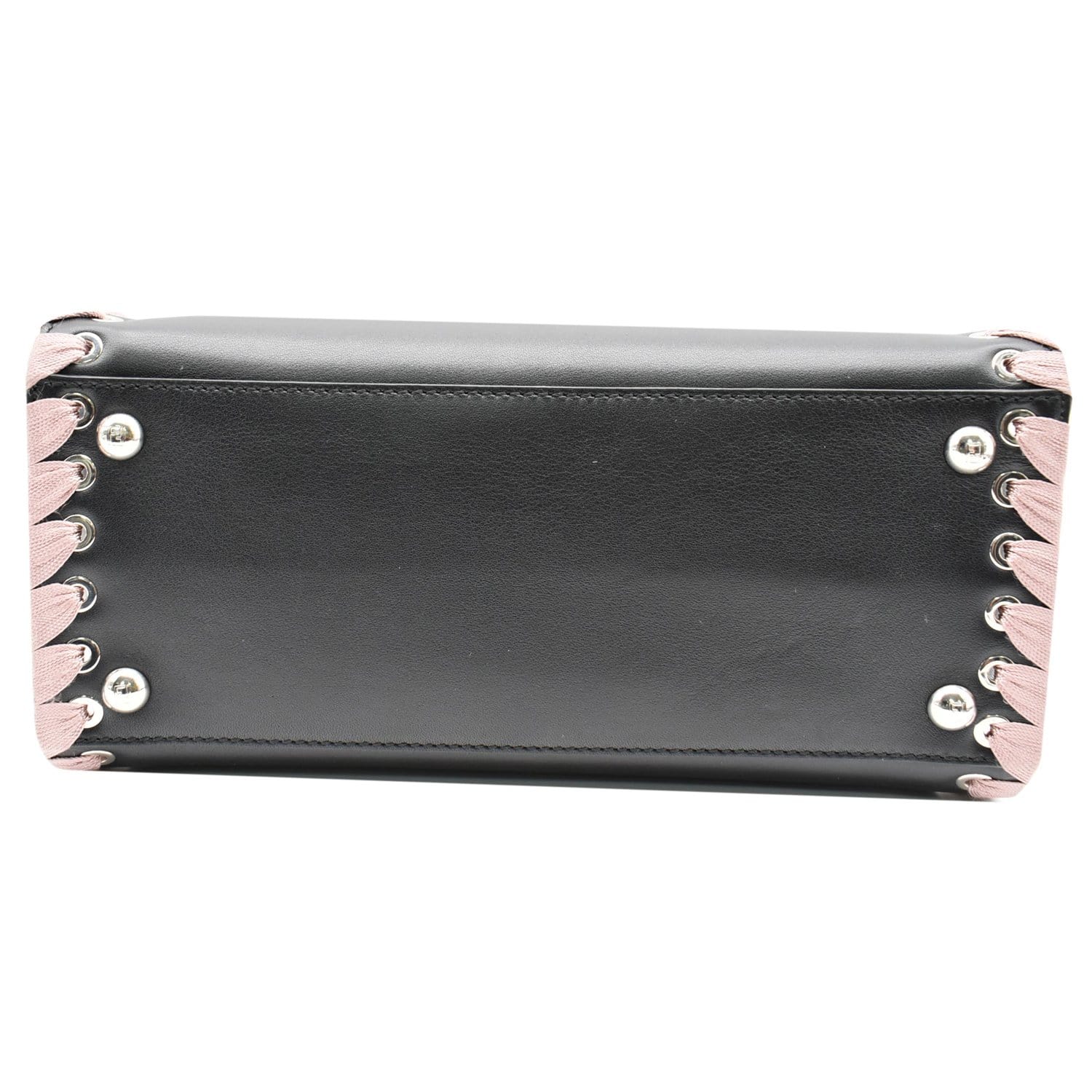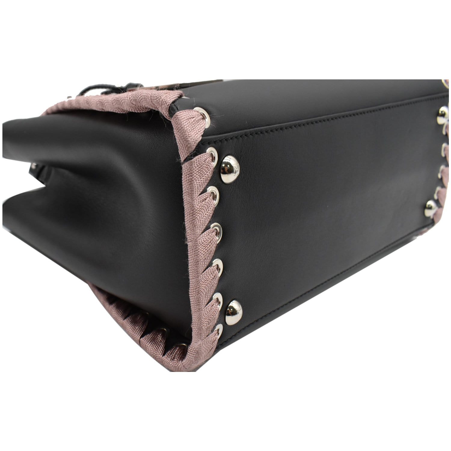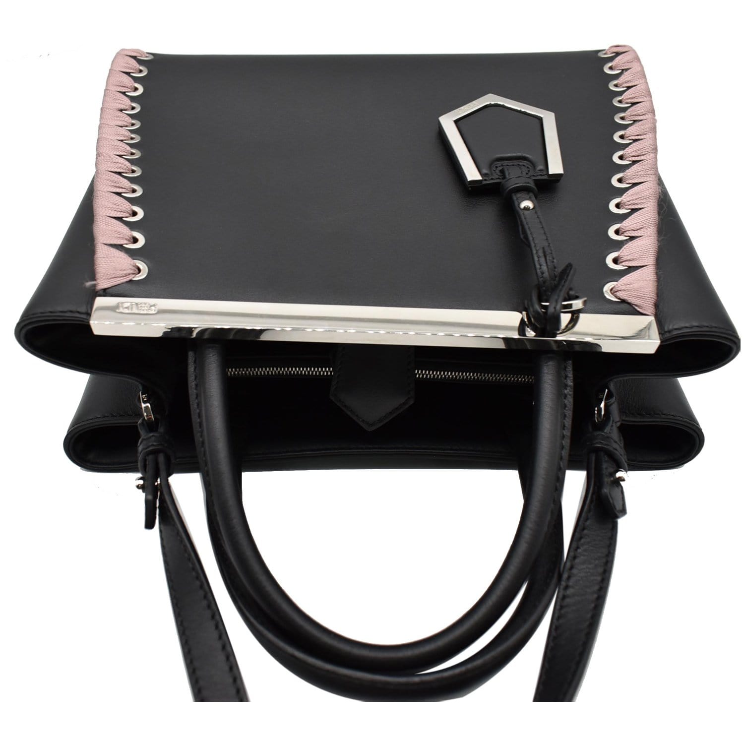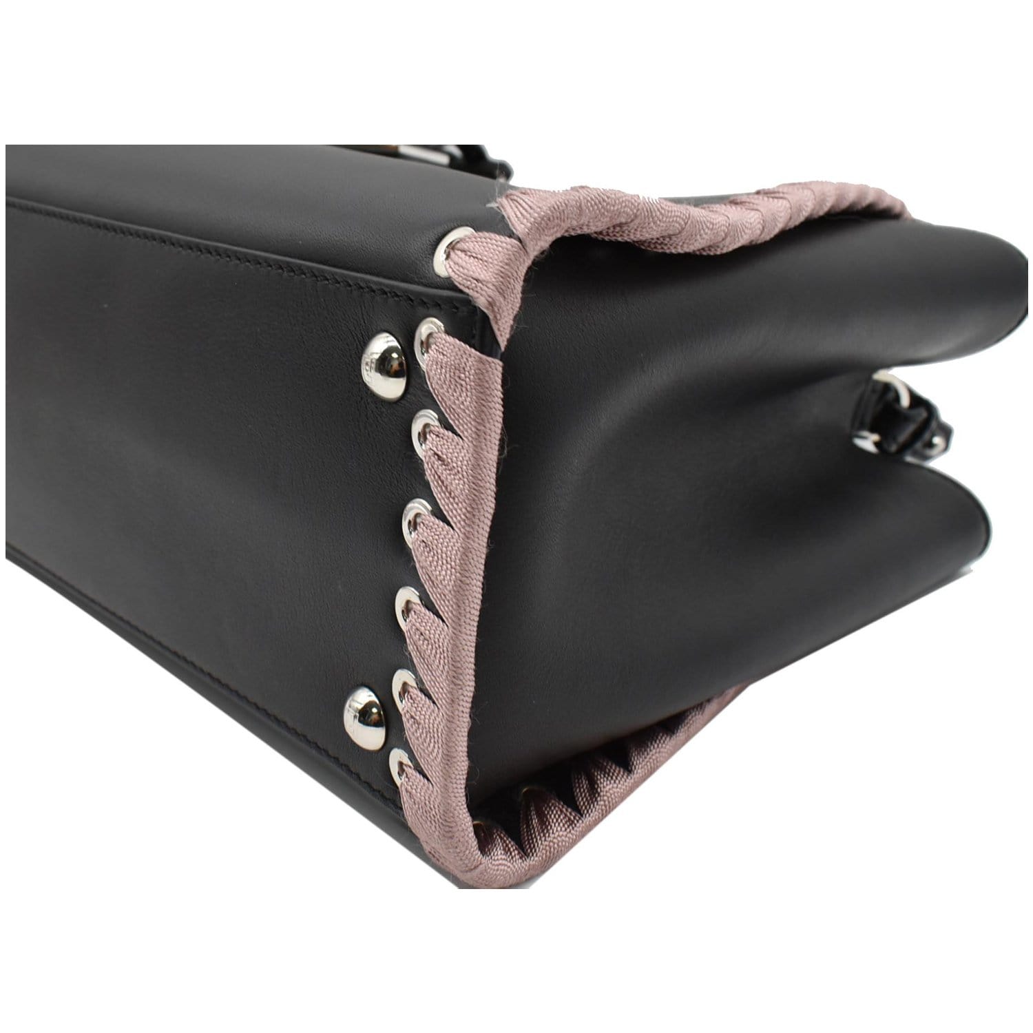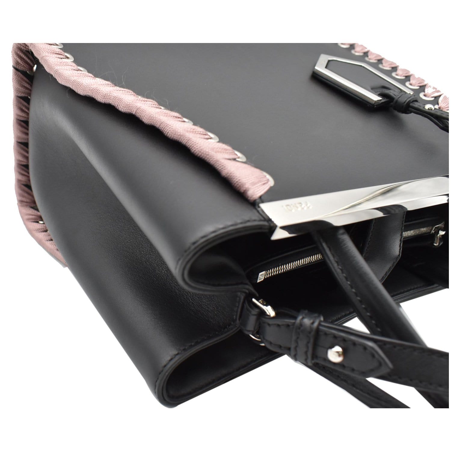 FENDI Petite 2Jours Whipstitch Leather Tote Shoulder Bag Black